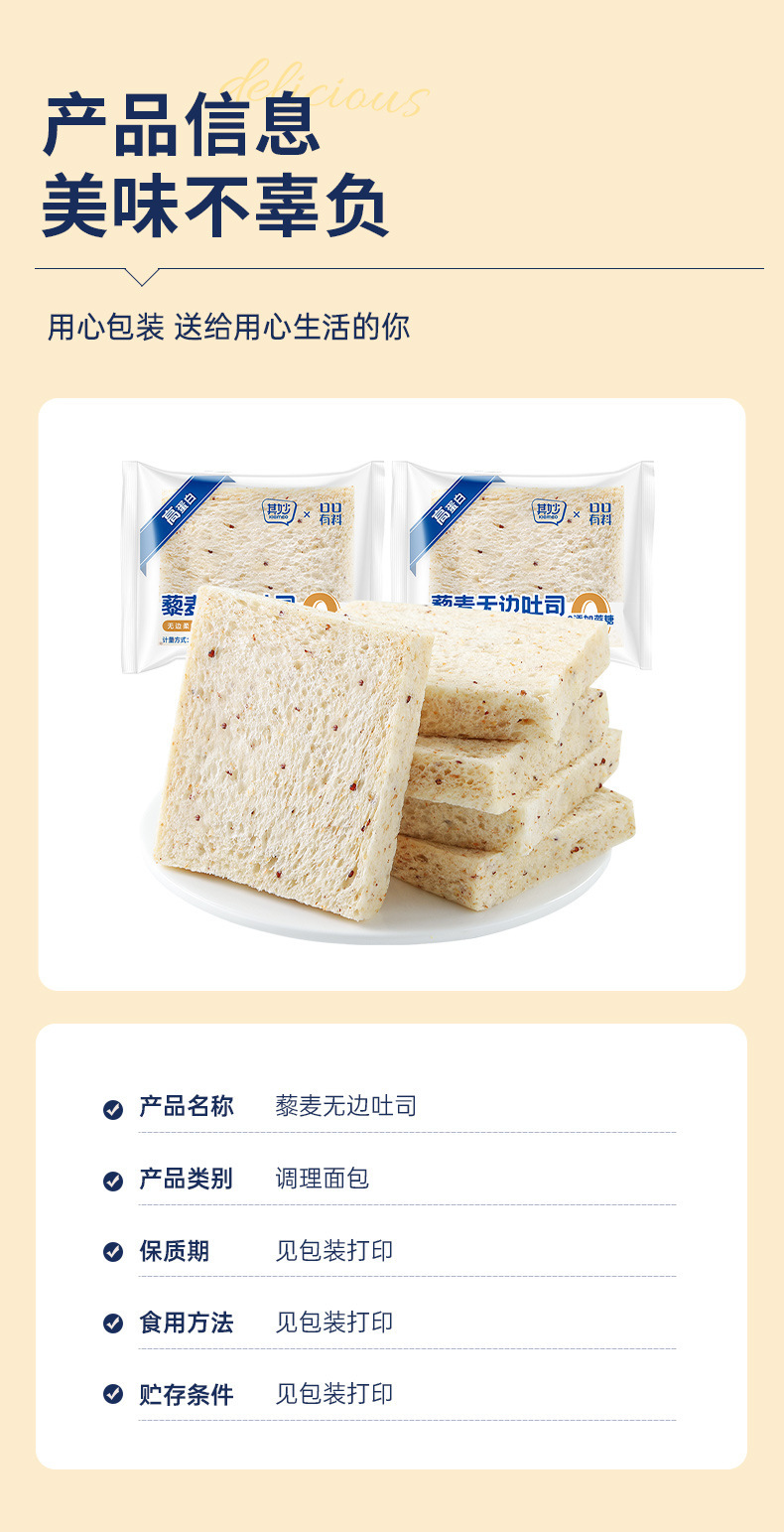 【柔软细腻!轻负担】高蛋白藜麦吐司全麦面包无边吐司早餐健身代餐饱腹零食。xb