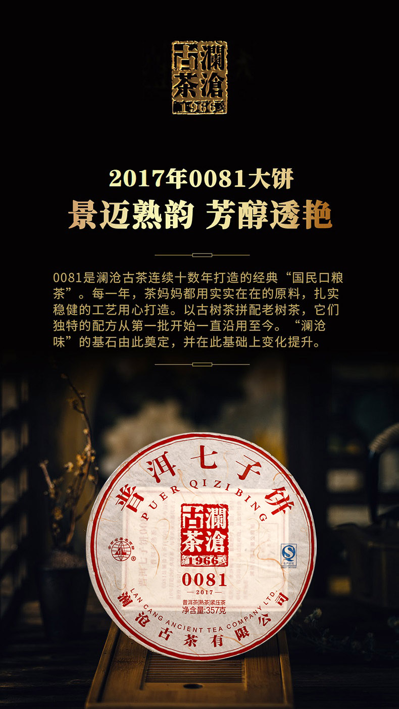 澜沧古茶2021年0081大饼云南七子饼普洱茶原产地干仓储存熟茶357g