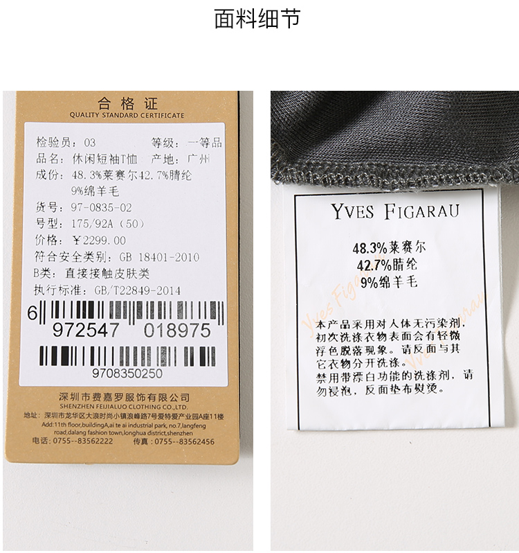 YvesFigarau伊夫·费嘉罗新款休闲短袖T恤970835