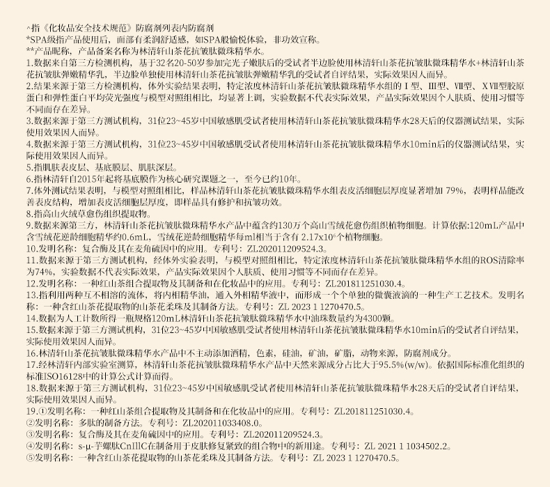 林清轩山茶花抗皱肽微珠精华水120ml/瓶
