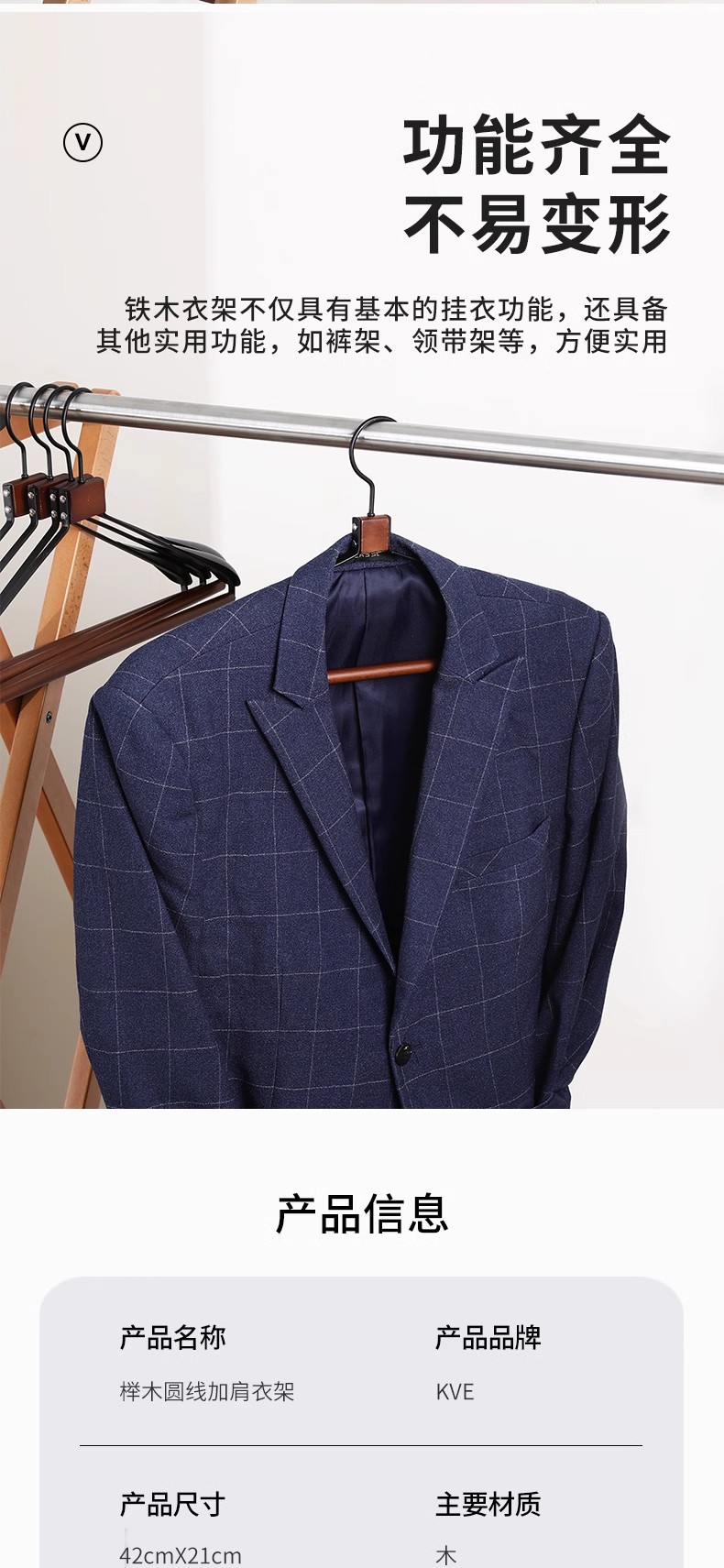 利快KVE榉木圆线加肩衣架