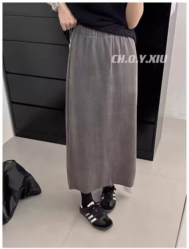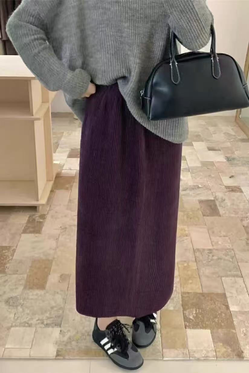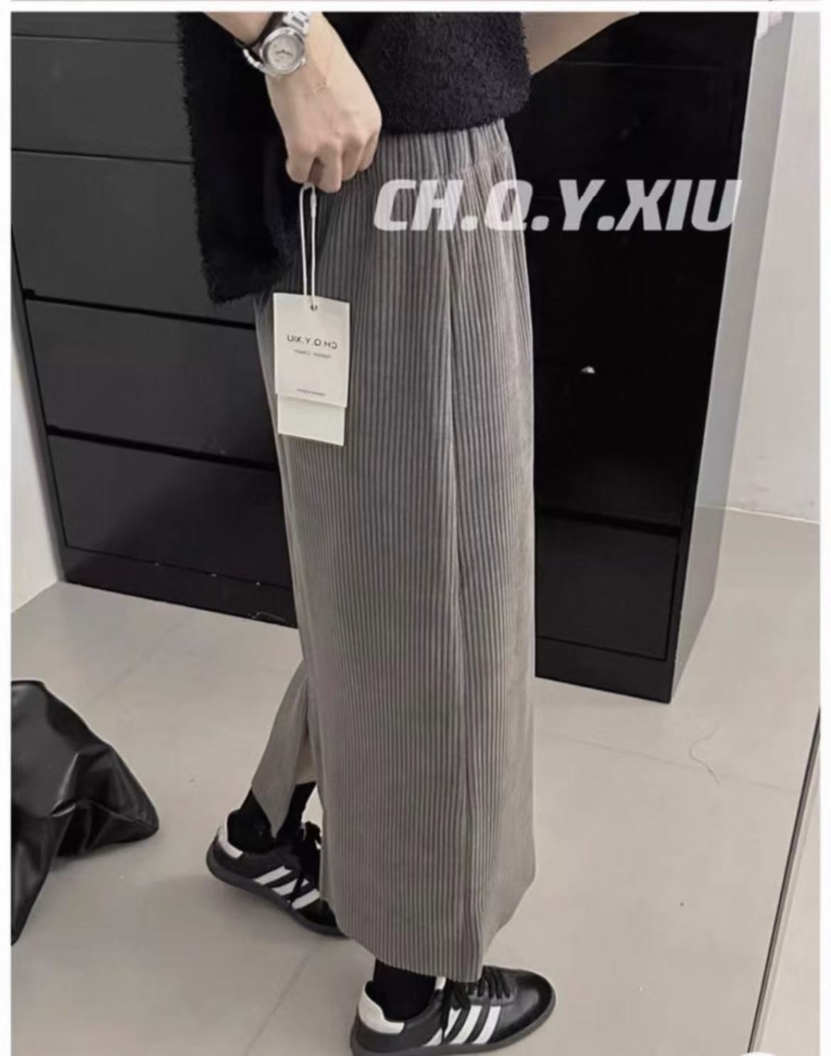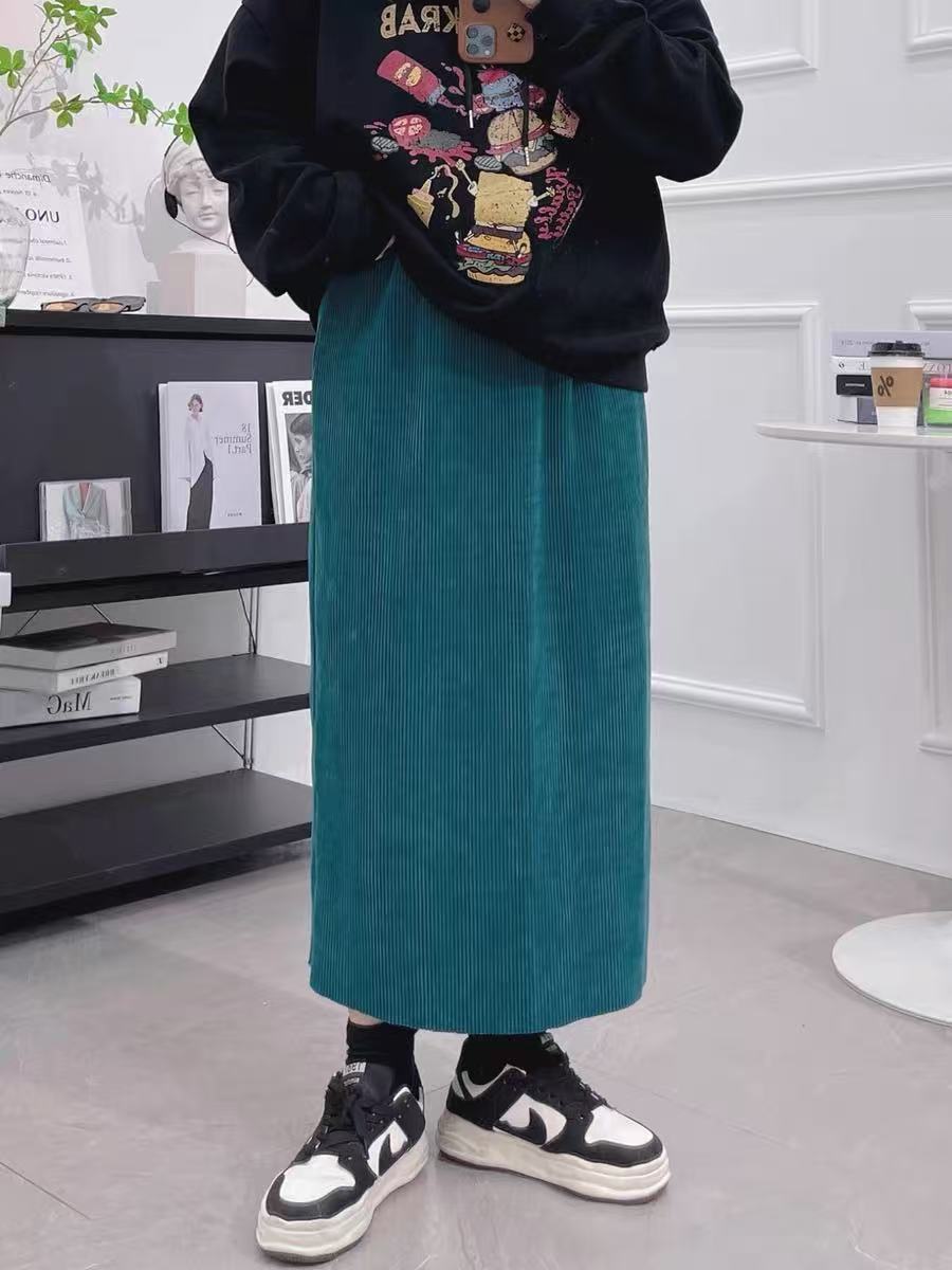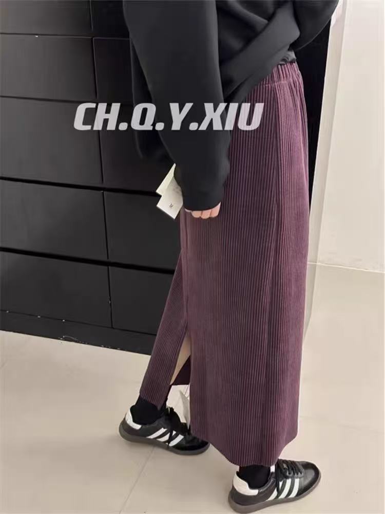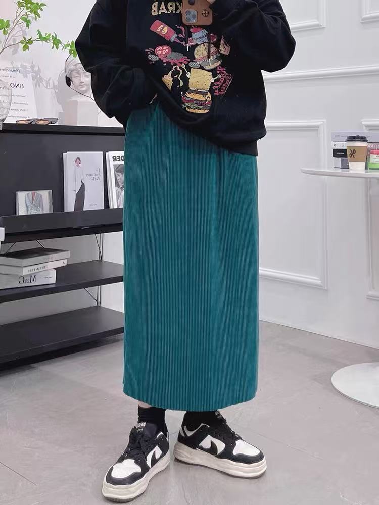 双十一特卖!!31850灯芯绒中长直筒A字后开叉半身裙-喜出