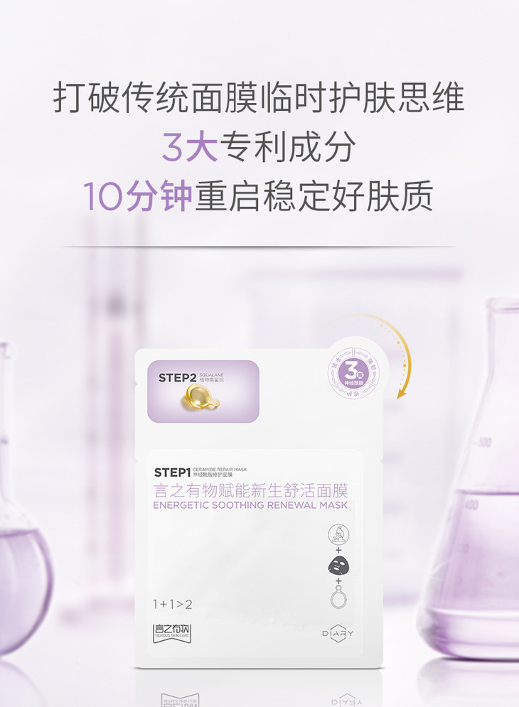 【言之有物专区】diary言之有物 赋能新生舒活面膜 自愈膜 (含角鲨烷) 5片/盒