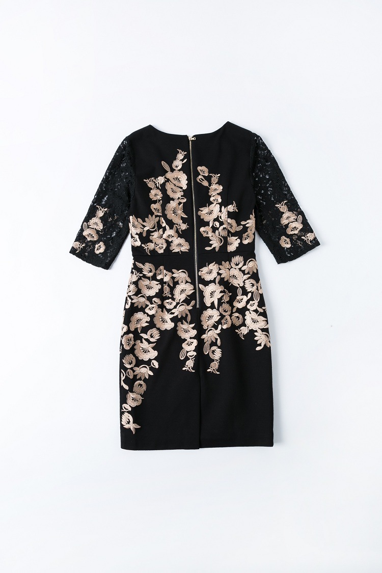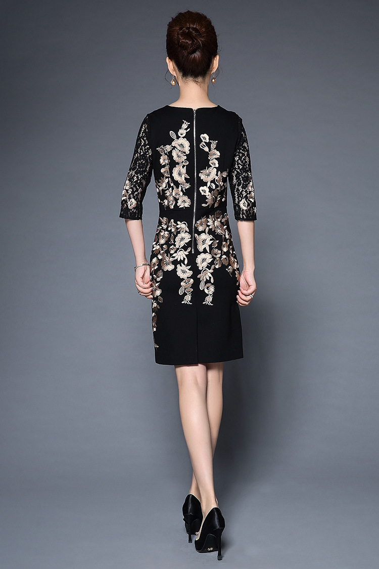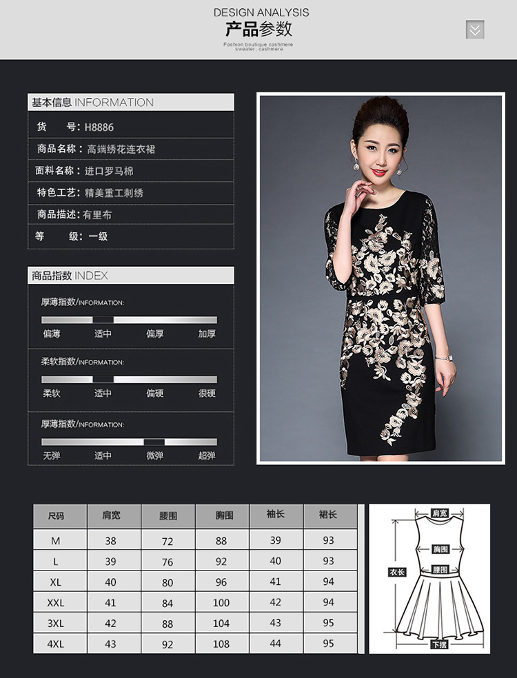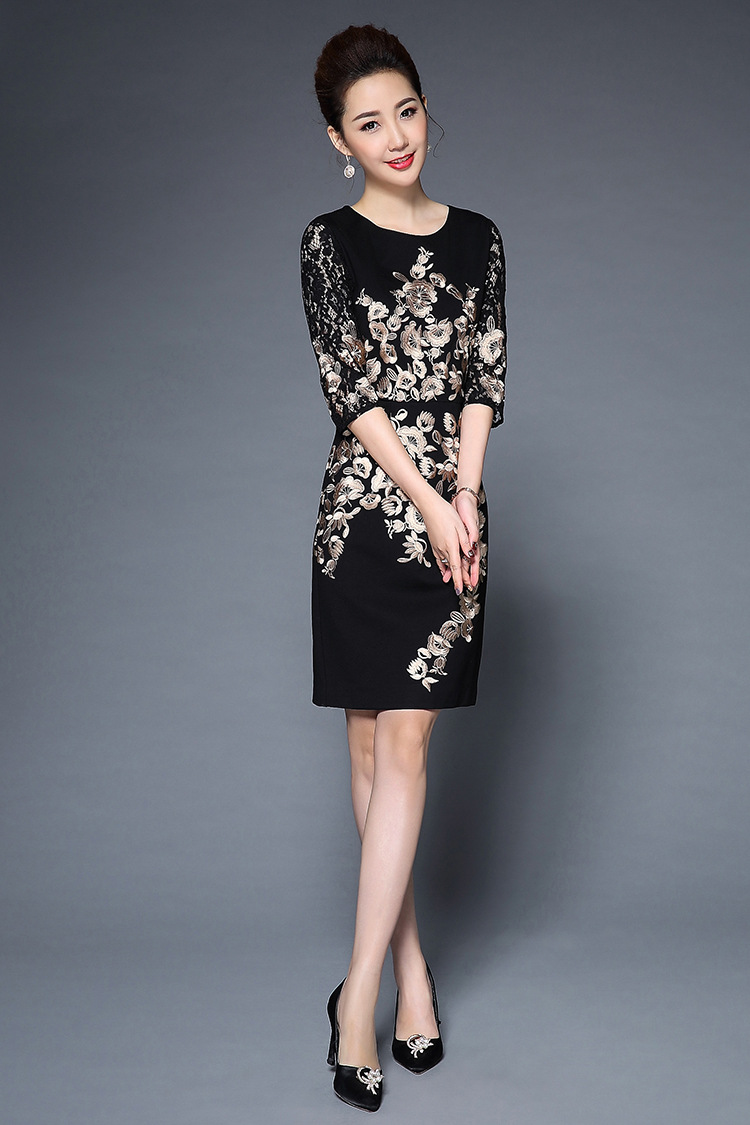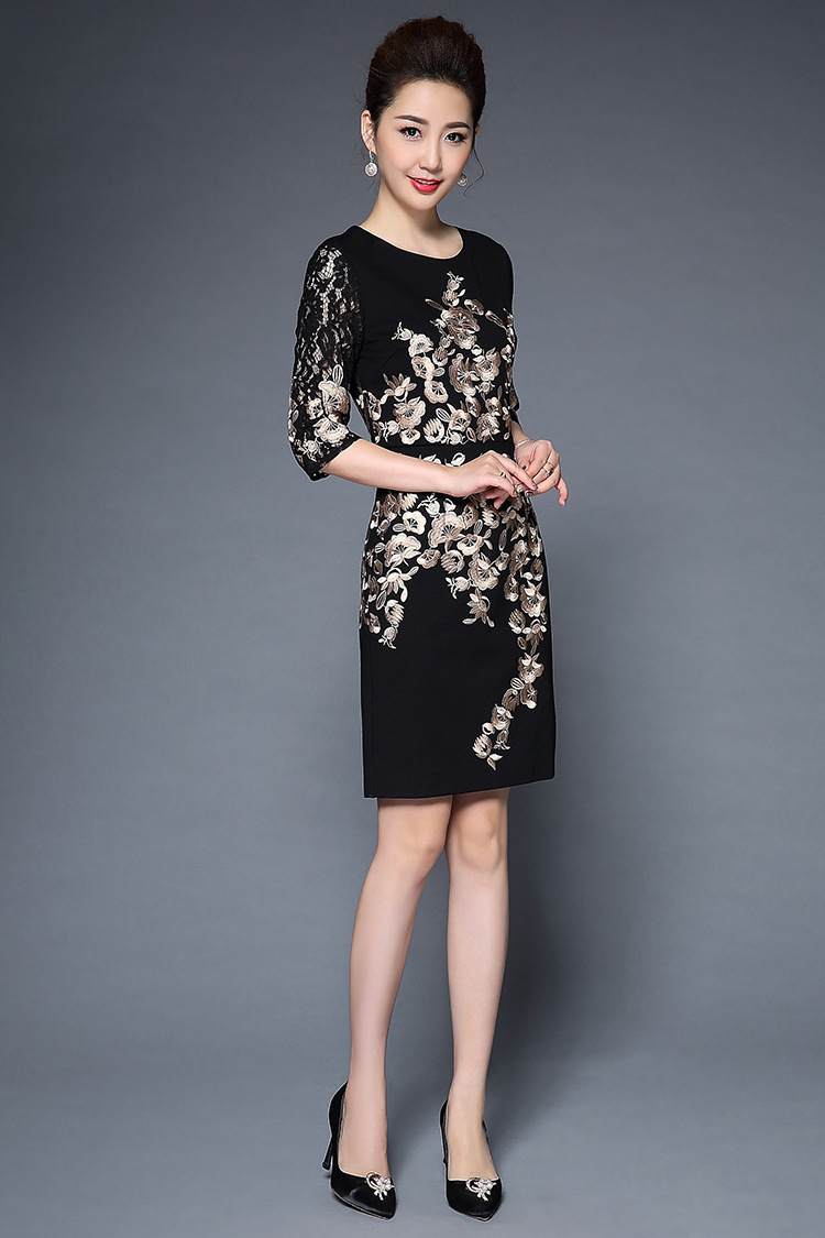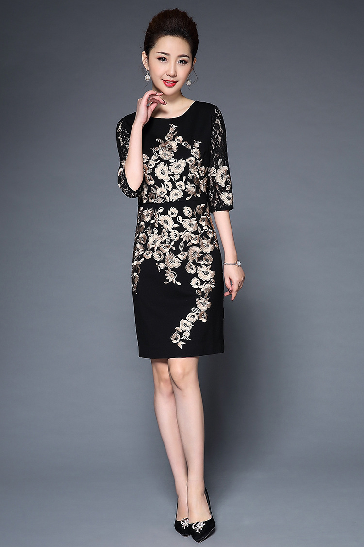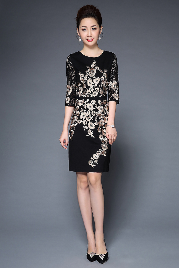 TQ-H8886新款时尚高端气质显瘦刺绣妈妈装连衣裙