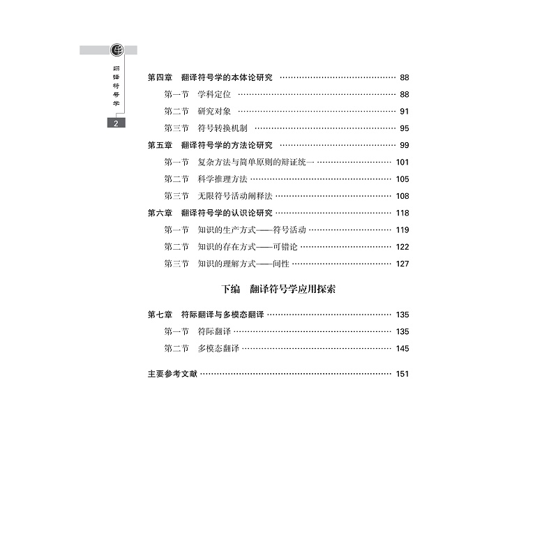 本书是教育部人文社会科学研究规划基金项目“翻译符号学研究”(23YJA740027)的最终成果。本书分上编、中编和下编三部分,共九章。上编“翻译符号学发展简史”厘清翻译符号学发展脉络,具体从国外翻译符号学发展简史、国内翻译符号学发展简史两个维度展开探究,为翻译符号学寻根溯源。中编“翻译符号学理论建构”集中讨论了翻译符号学的合法性基础、翻译符号学的本体论研究、翻译符号学的方法论研究、翻译符号学的认识论研究。作者主要从(但不限于)学科史的角度,从翻译学、符号学审视翻译符号学的理论基础和底层逻辑出发,基于学科学,深入讨论翻译符号学如何从符号学翻译研究发展为一门独立学科的可能性与合法性。下编“翻译符号学应用探索”从符际翻译与多模态翻译、语言符号转换、有形符号与无形符号转换三个维度探究翻译符号学理论的可能实践应用领域。