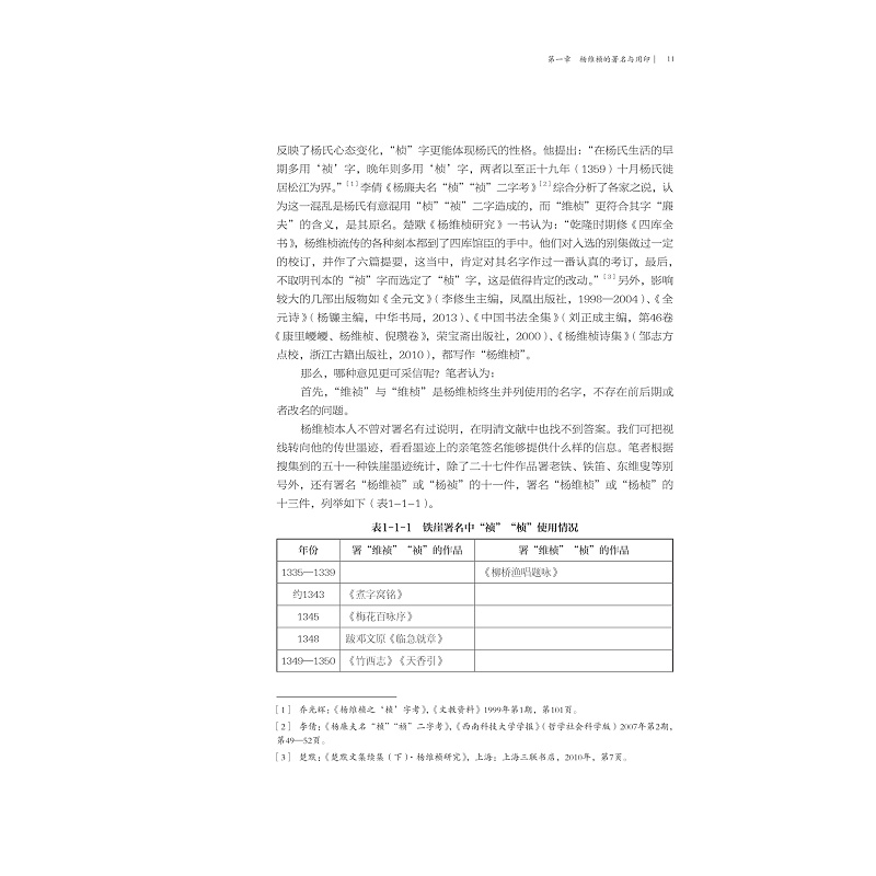 除此之外,还考证了杨维桢的署名与用印及其变化,确定“杨维桢”为标准名,逐一考释杨维桢的23组别号、斋名,统计杨维桢印章42方。