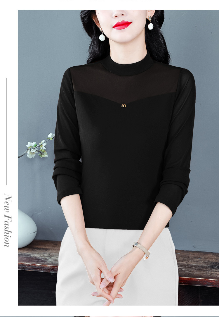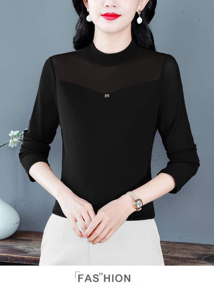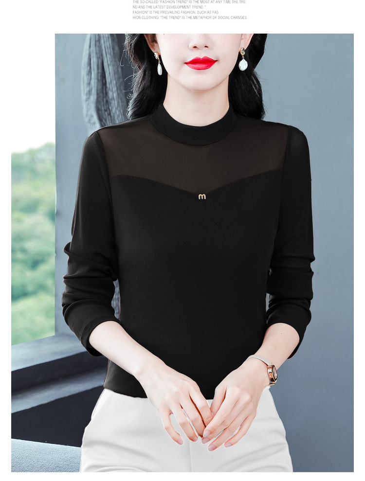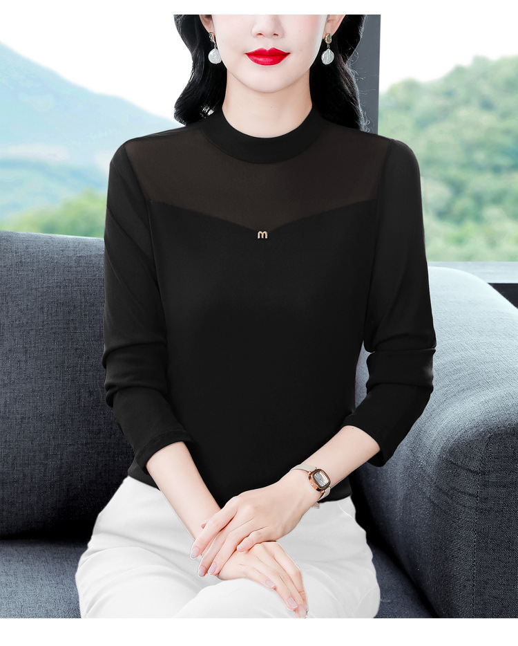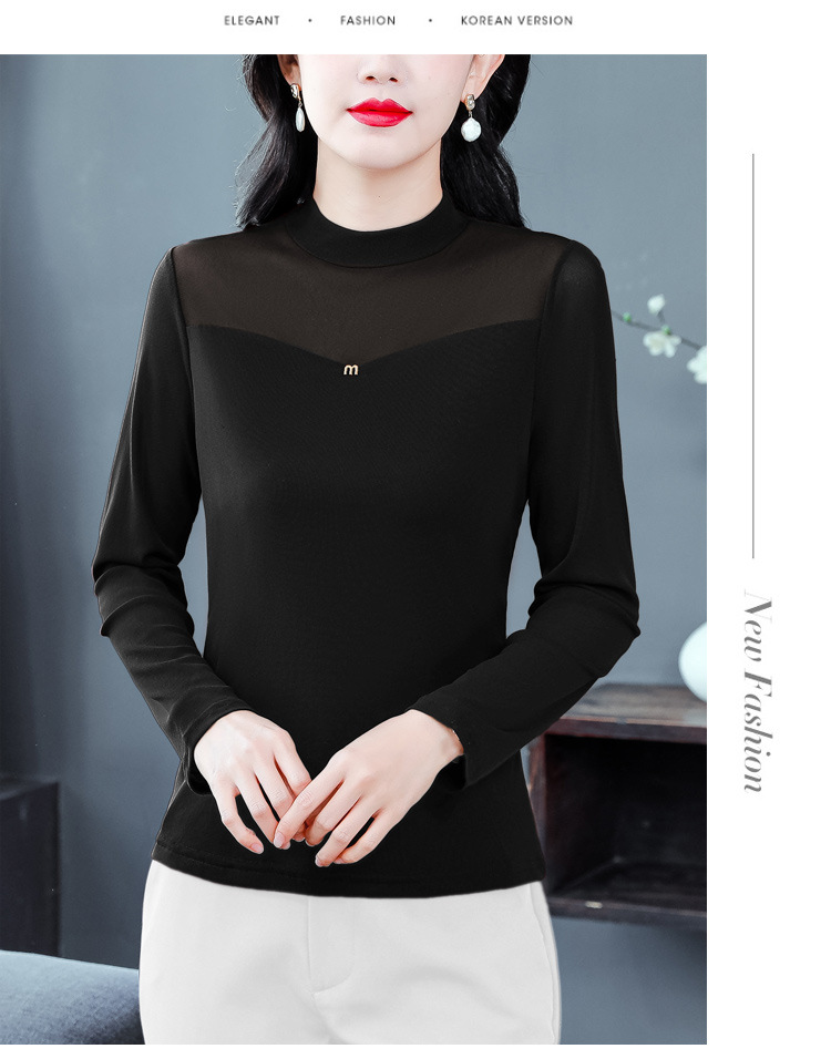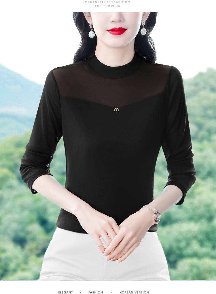 KQL 644G9248高弹网纱半高领打底衫显瘦洋气上衣小衫