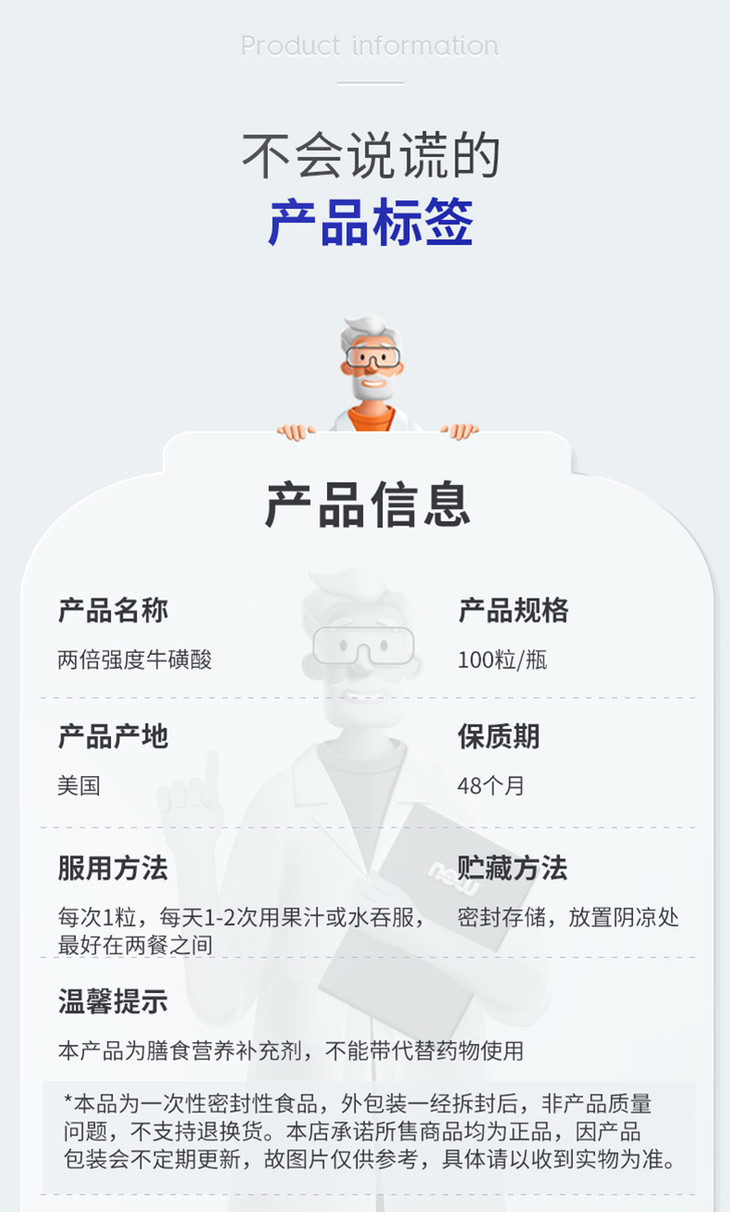 牛磺酸|两倍强度 1000mg 消除疲劳 护眼 NOW诺奥 牛磺酸 100粒胶囊/瓶
