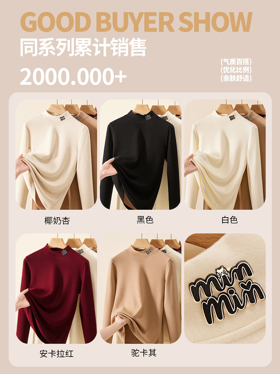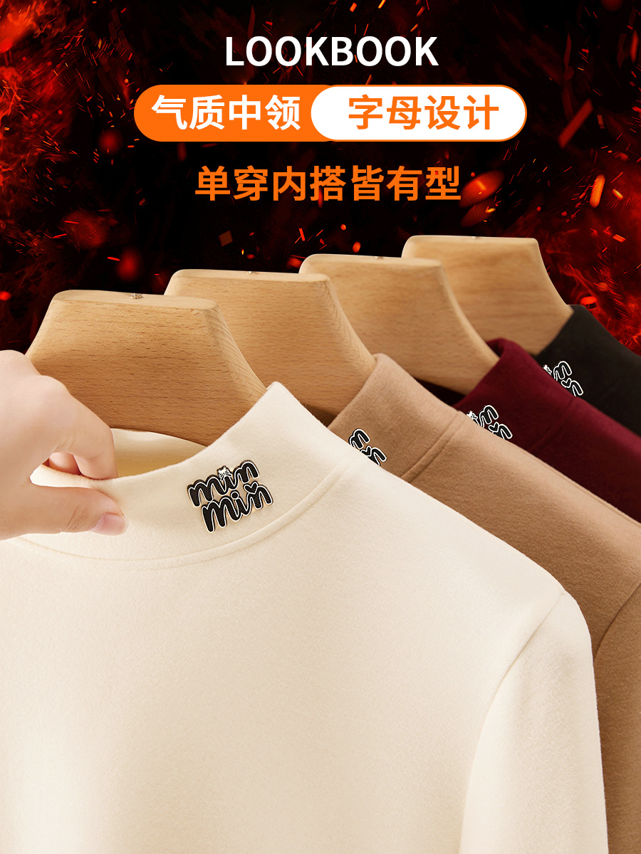 「自j」全新升级【铂金会员128/天猫169/差价41】(14213)洛诗琳新款半高领打底衫2025秋冬加绒加厚蚕丝羊毛保暖上衣
