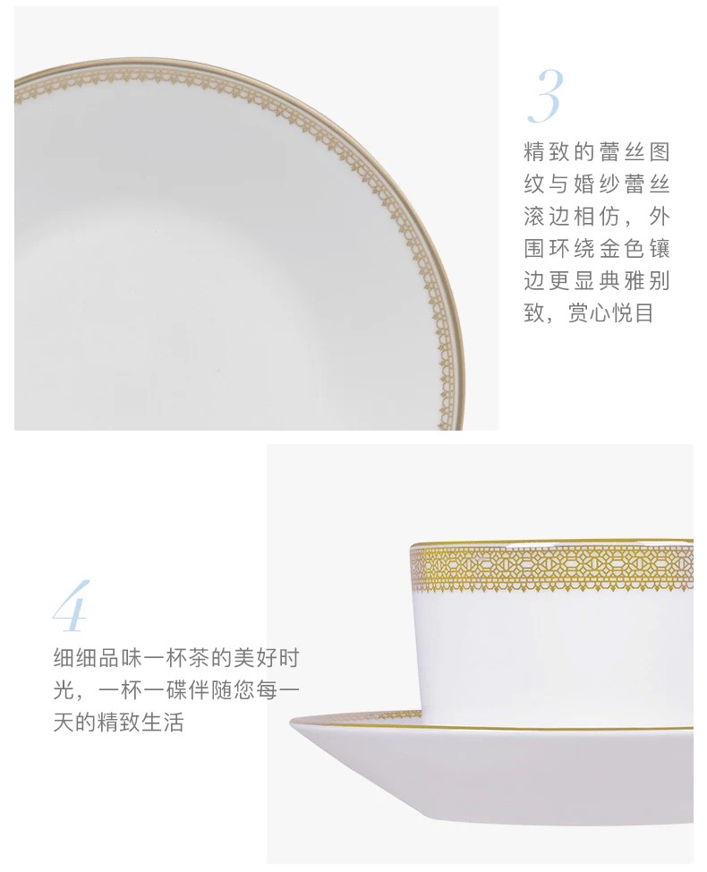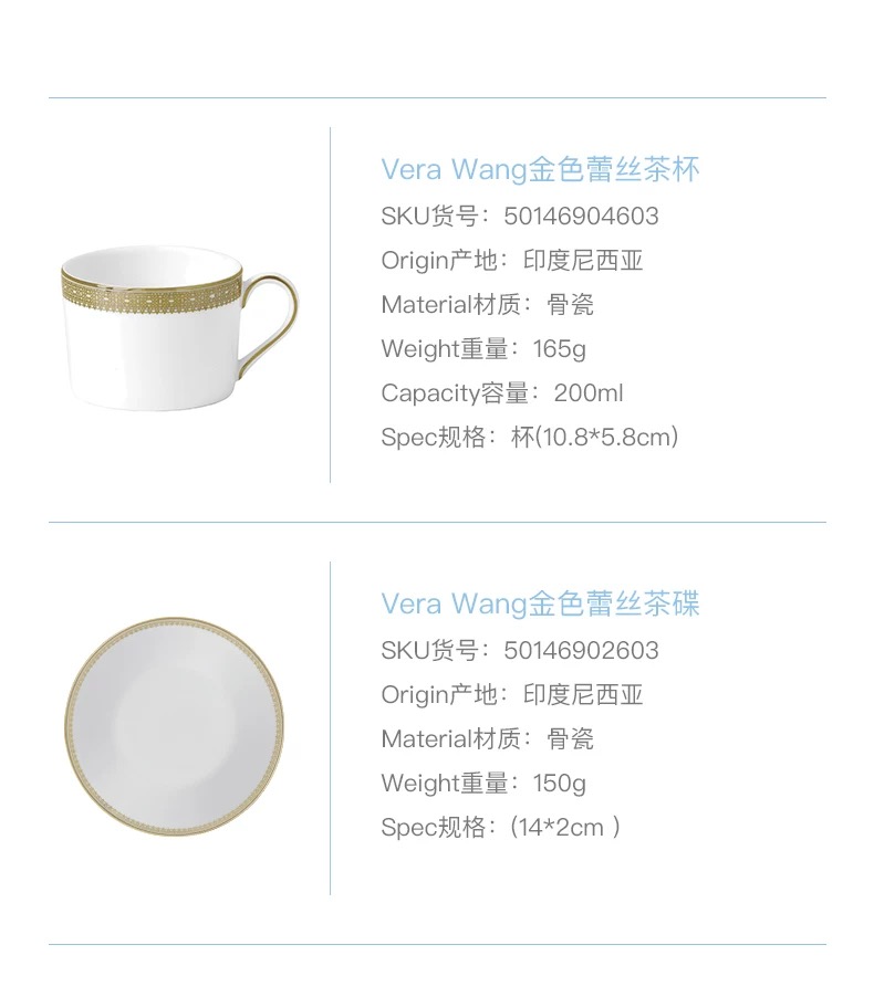 【WEDGWOOD】王薇薇VeraWang金色蕾丝骨瓷杯碟组咖啡杯碟