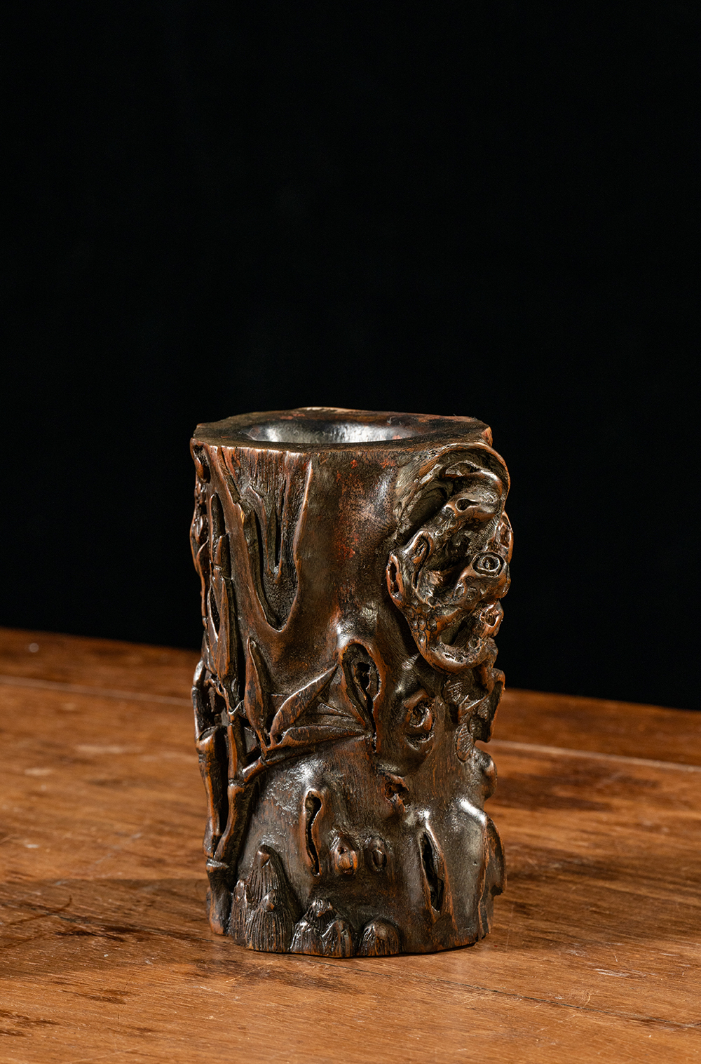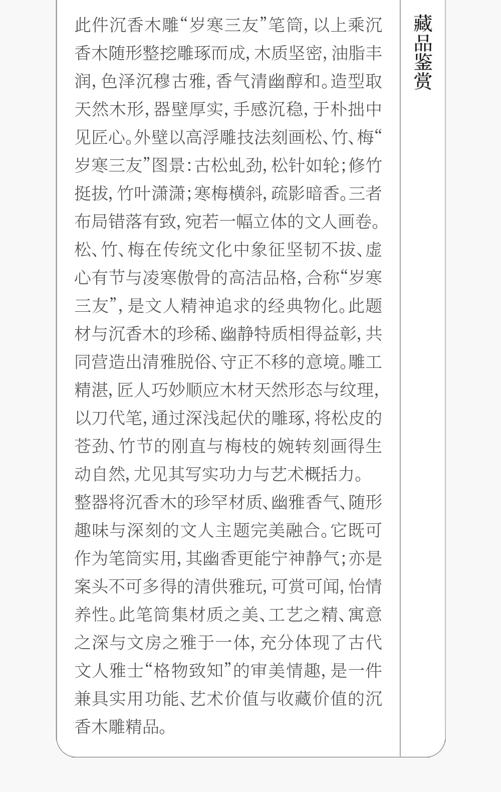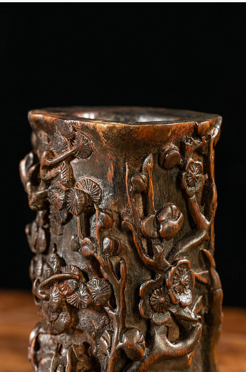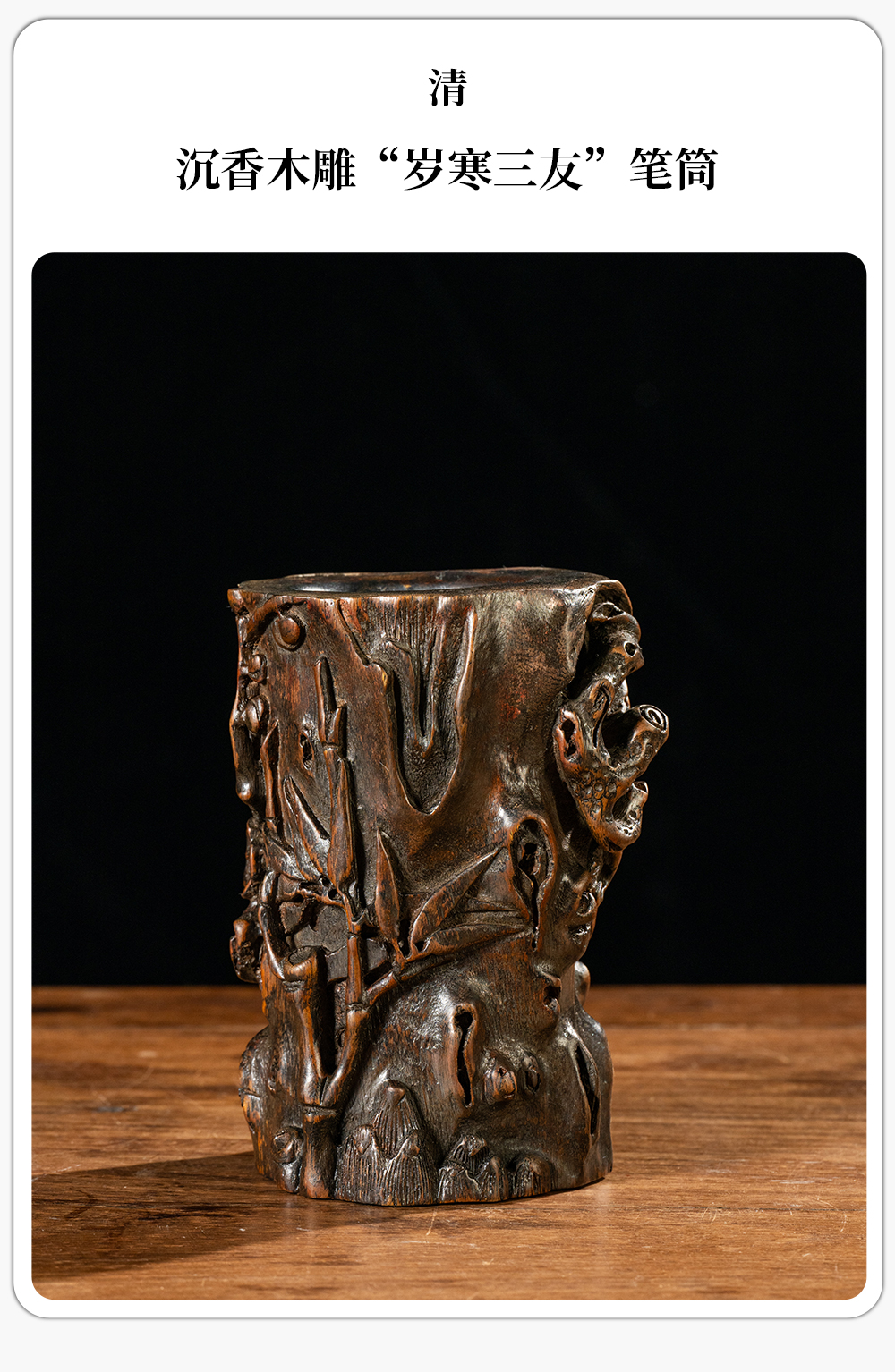 清 沉香木雕“岁寒三友”笔筒