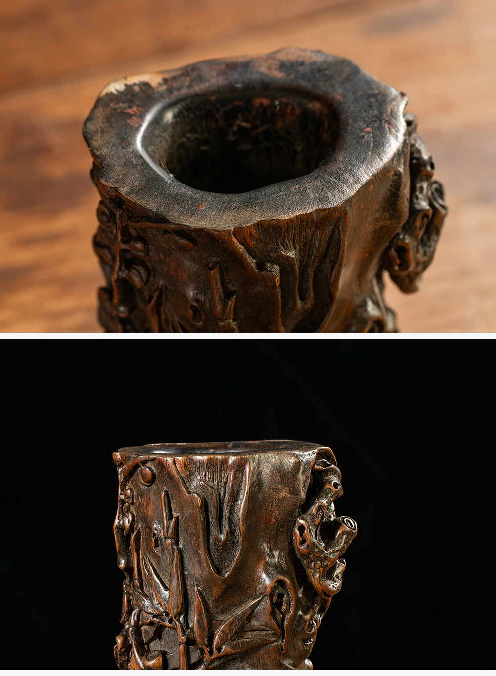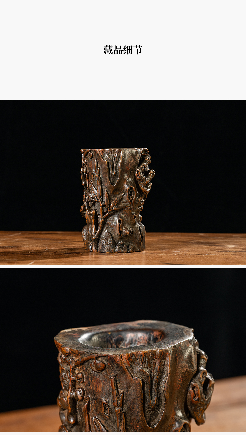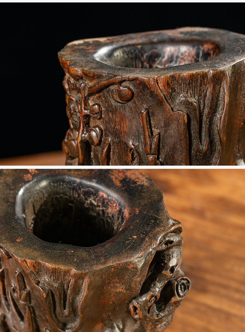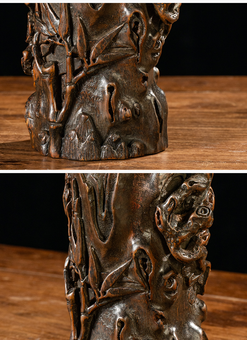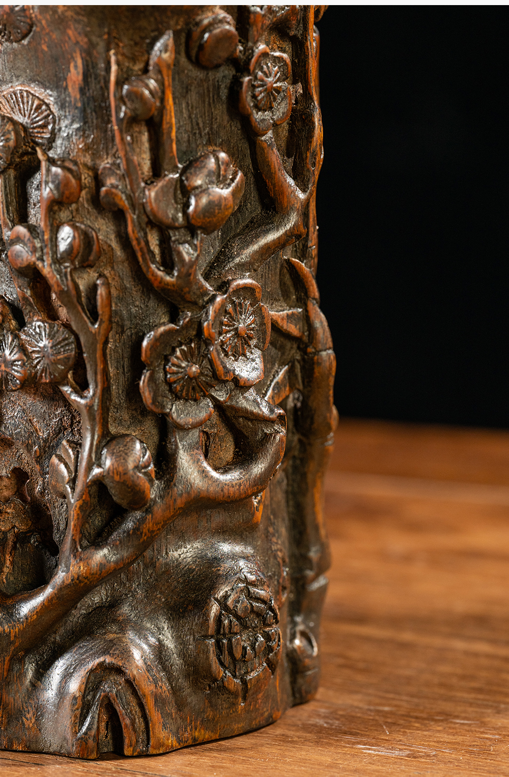 清 沉香木雕“岁寒三友”笔筒
