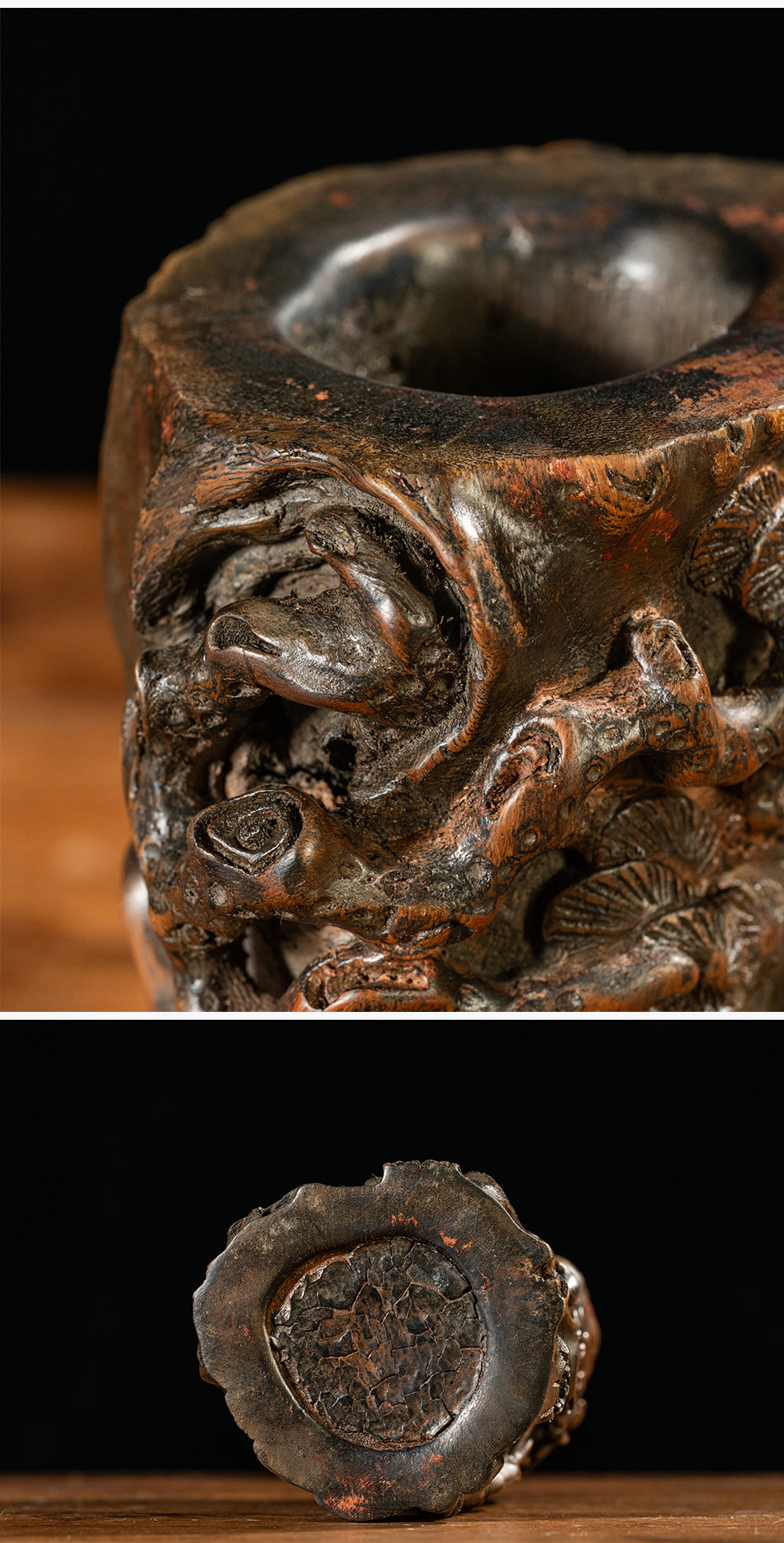清 黄花梨雕松下对弈山子摆件