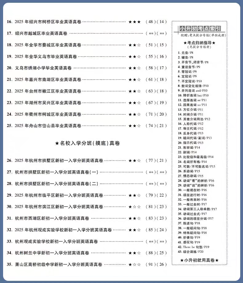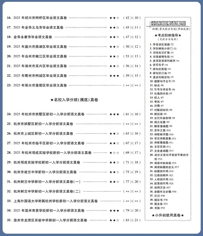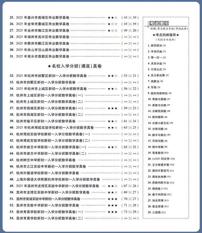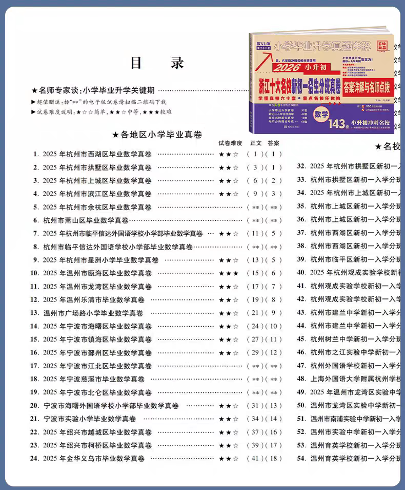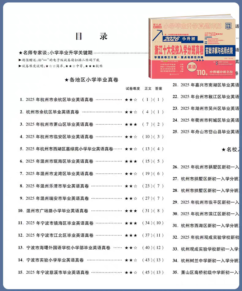 2026版小升初浙江十大名校新初一招生分班真卷百校联盟教版总复习