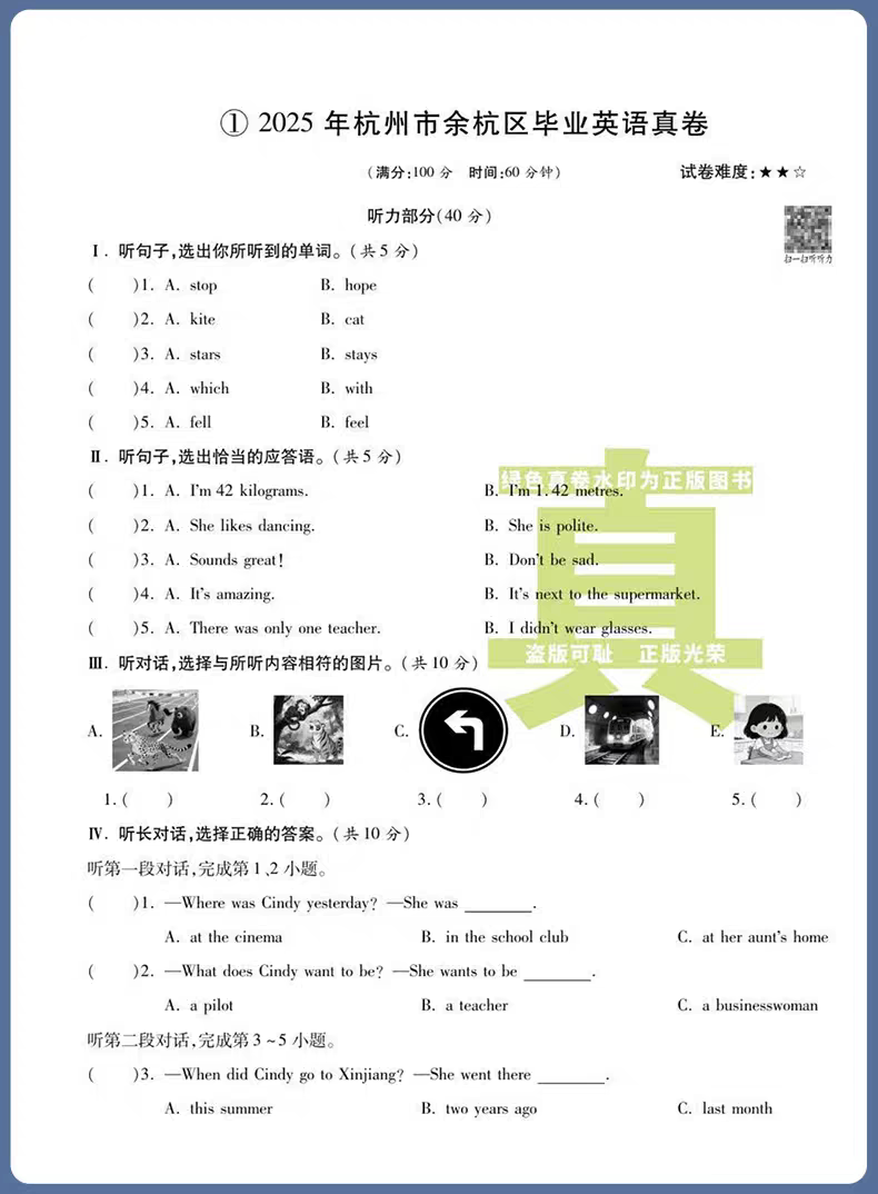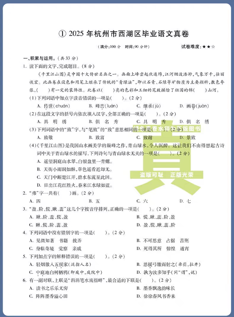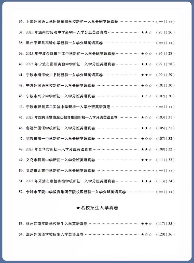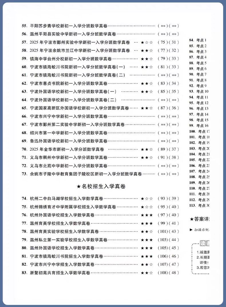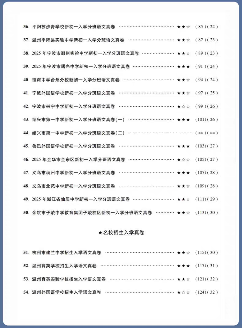 2026版小升初浙江十大名校新初一招生分班真卷百校联盟教版总复习