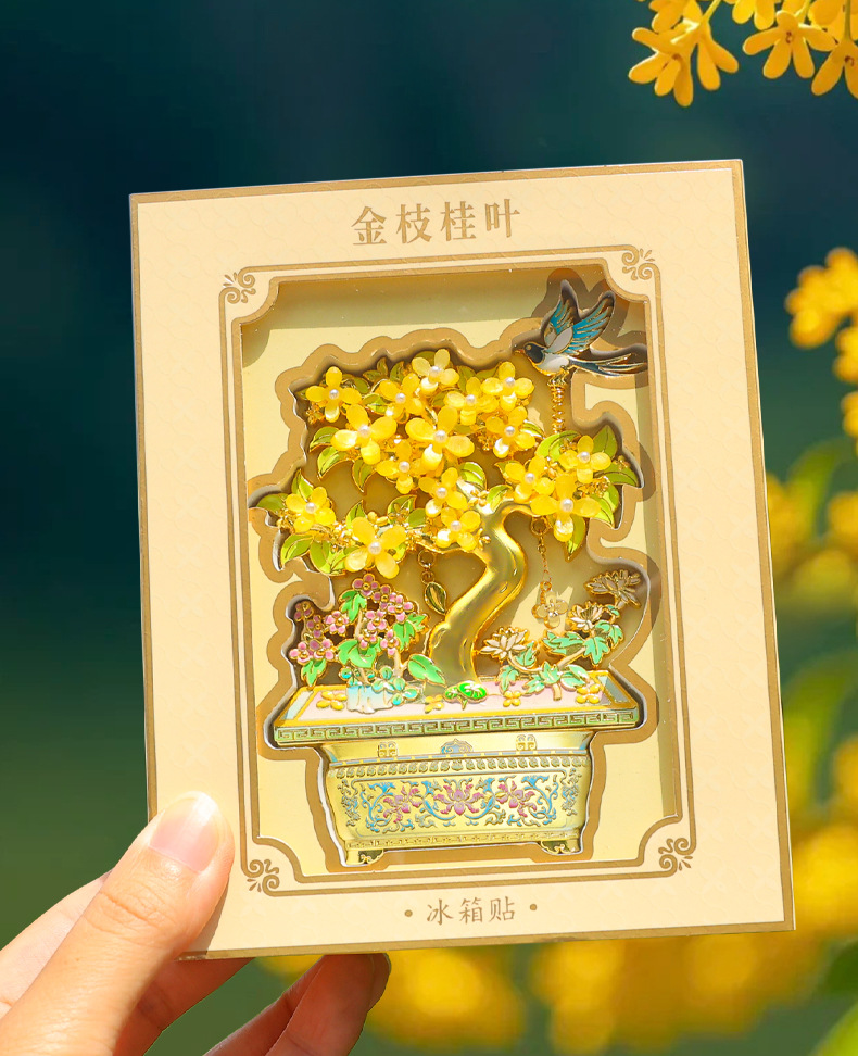 金枝桂叶金属冰箱贴 国潮创意磁吸宫廷风装饰贴