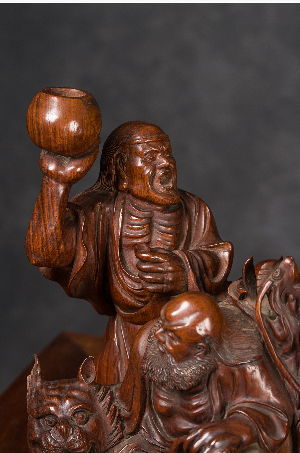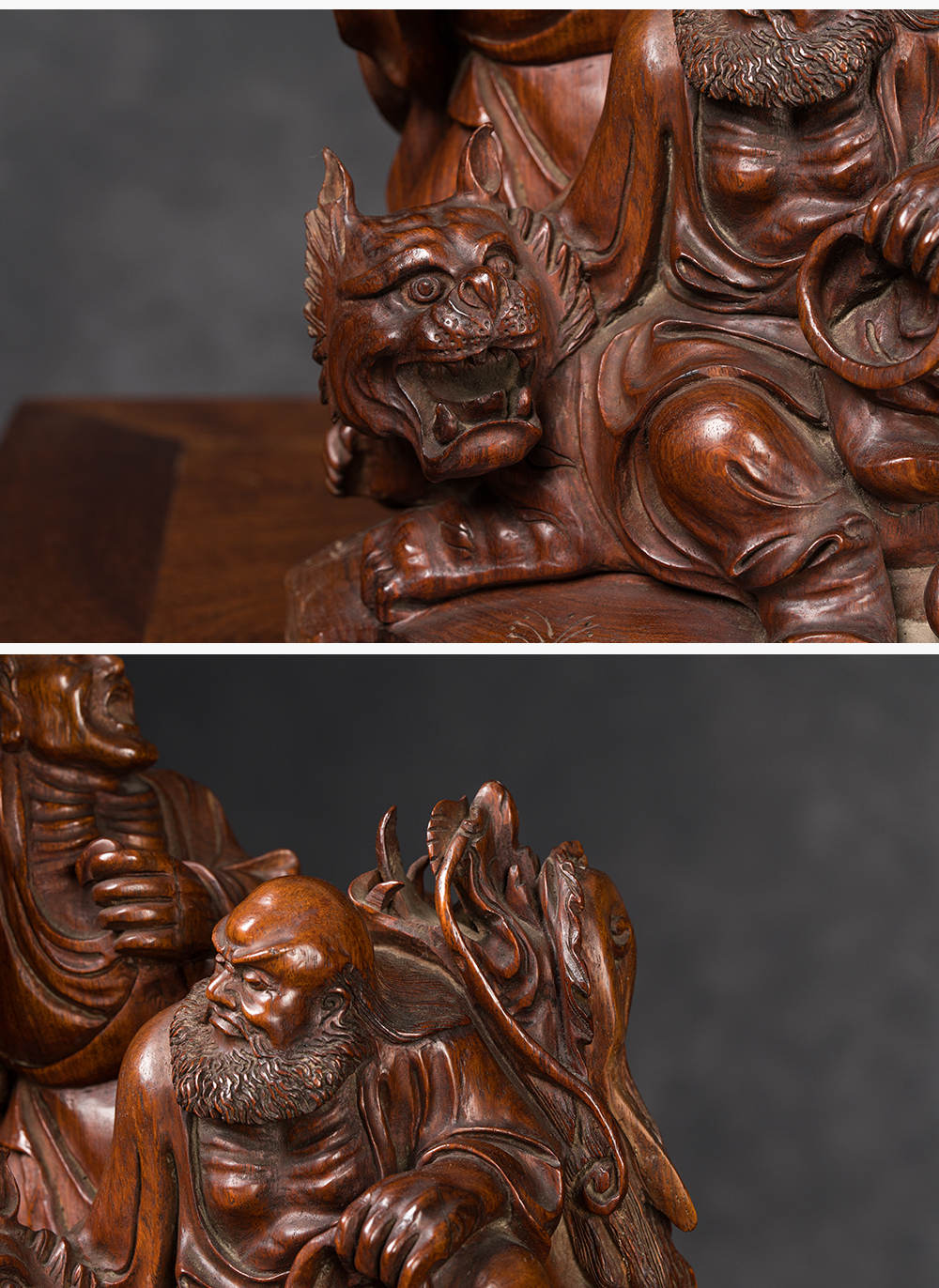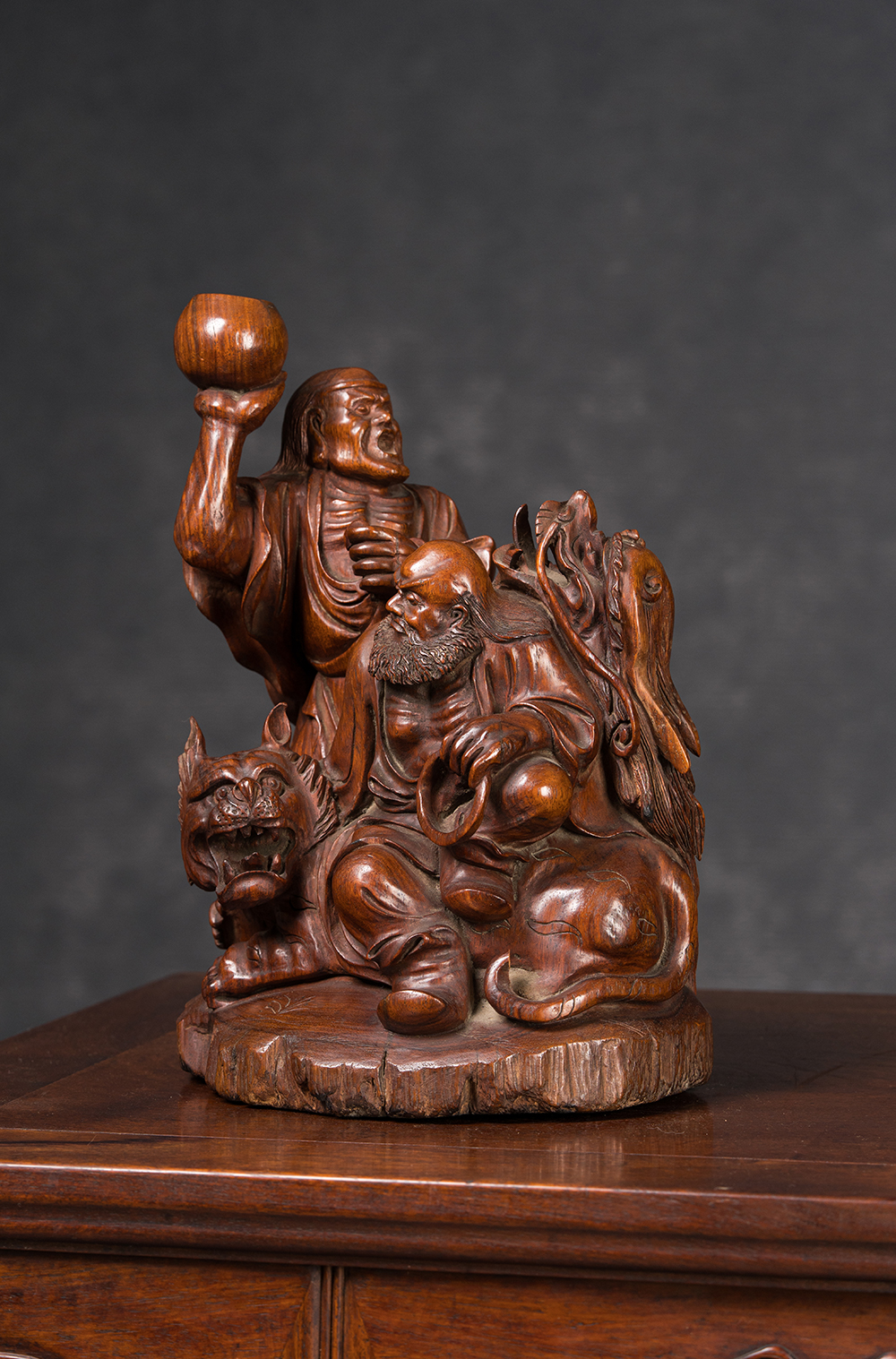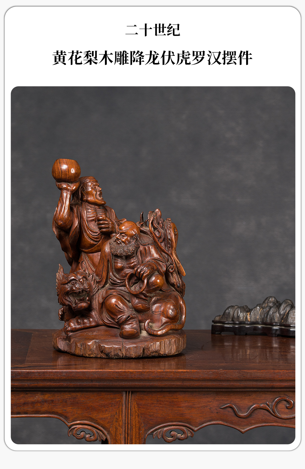 二十世纪 黄花梨木雕降龙伏虎罗汉摆件