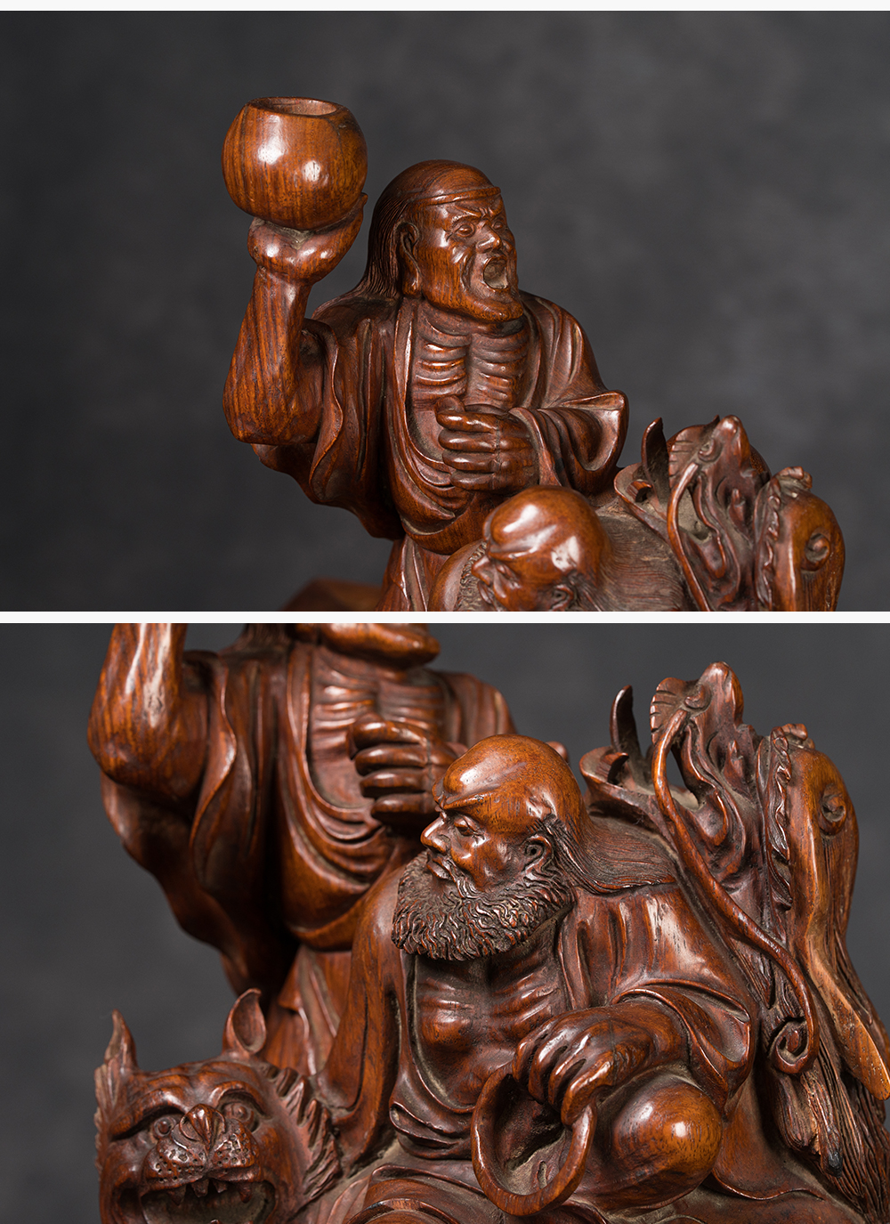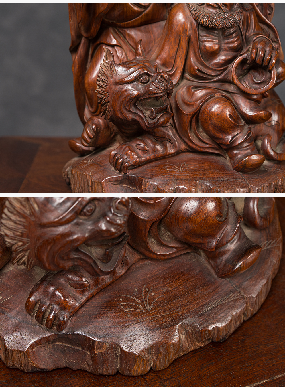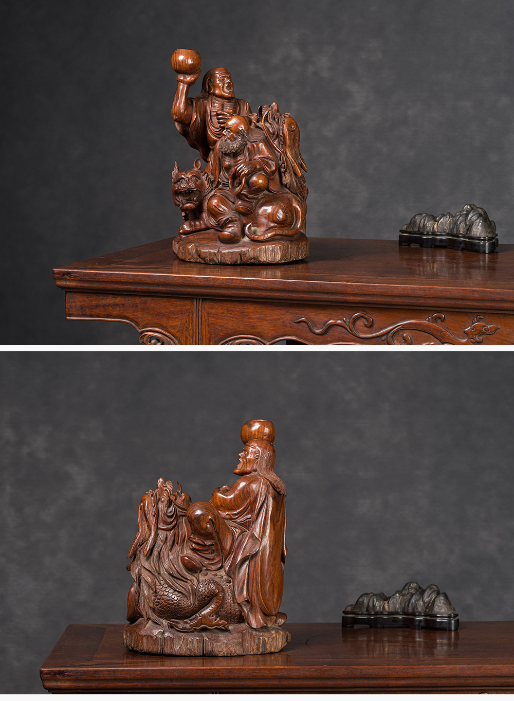 二十世纪 黄花梨木雕降龙伏虎罗汉摆件