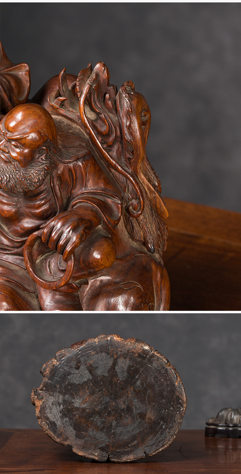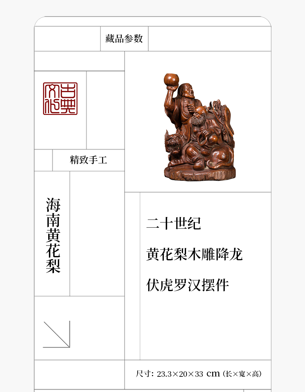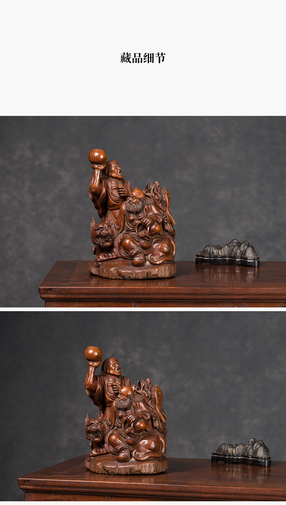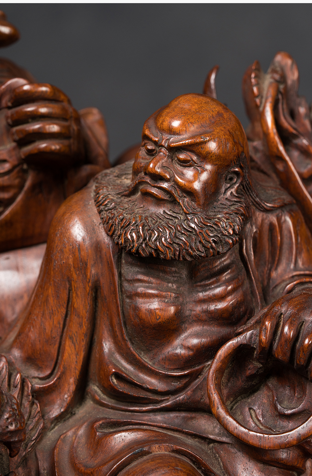 二十世纪 黄花梨木雕降龙伏虎罗汉摆件