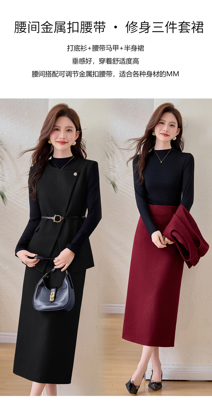 套装2026春季新款时尚洋气减龄气质马甲+半身裙+t恤三件套女ZQ603