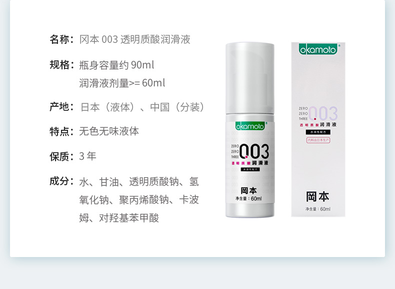 【官方直发】冈本003透明质酸润滑剂 水溶性人体私处保湿