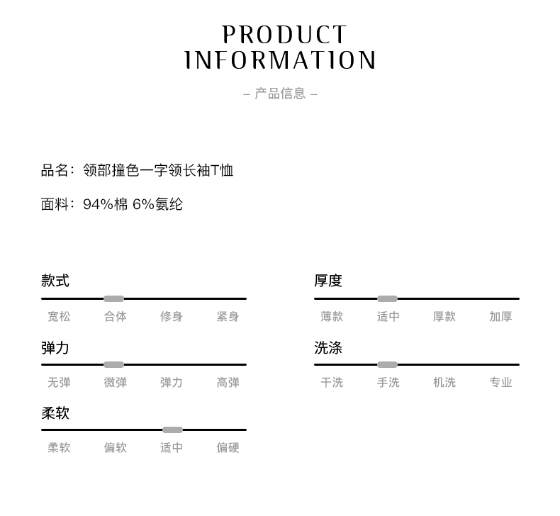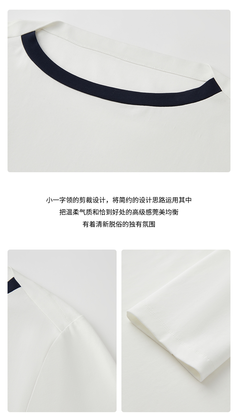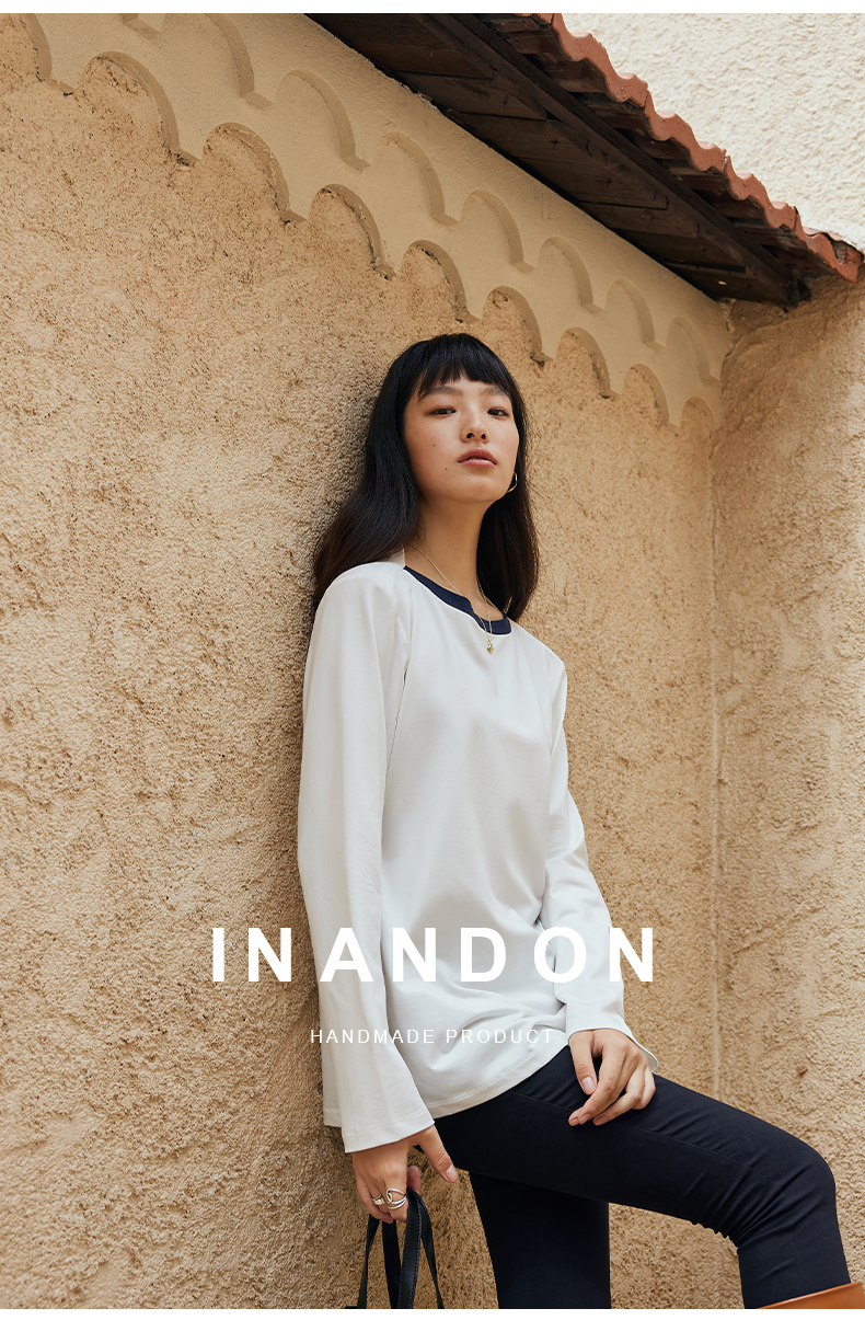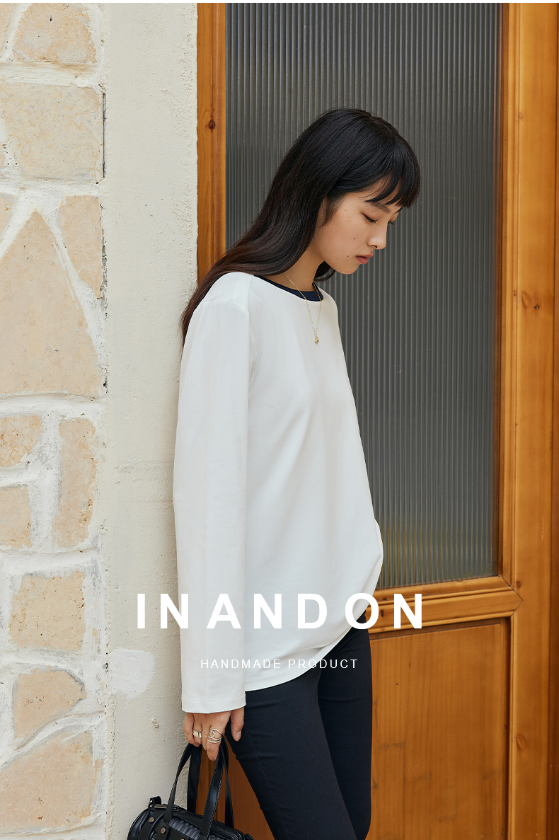 IN AND ON长绒棉撞色一字领长袖T恤女设计感百搭上衣53566