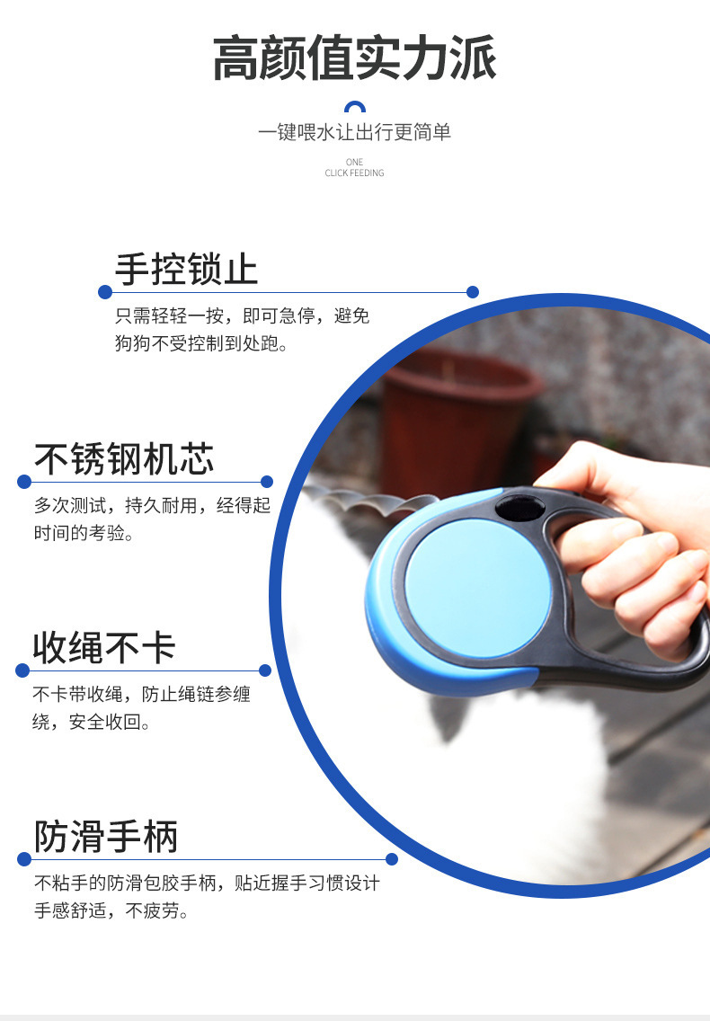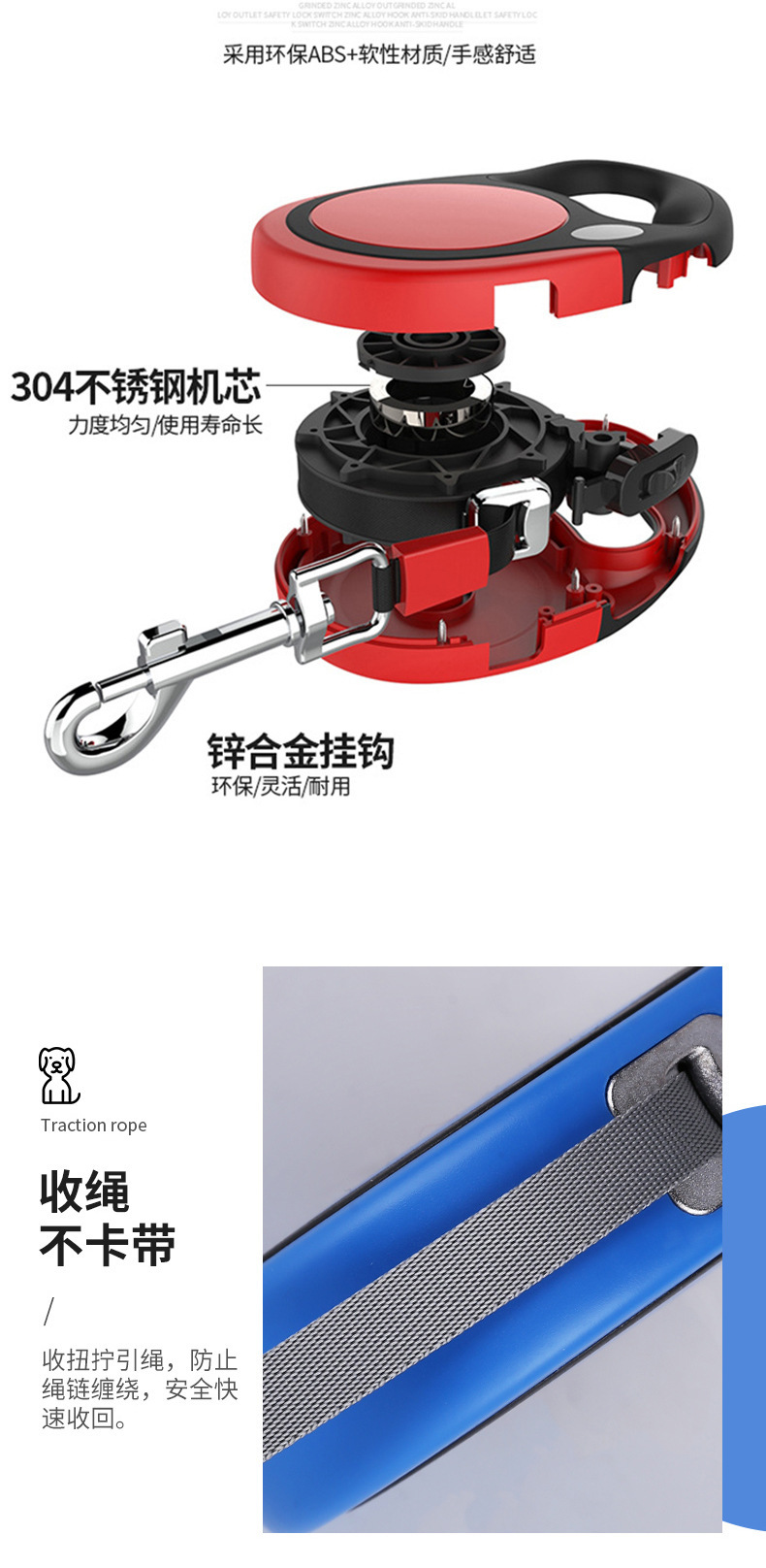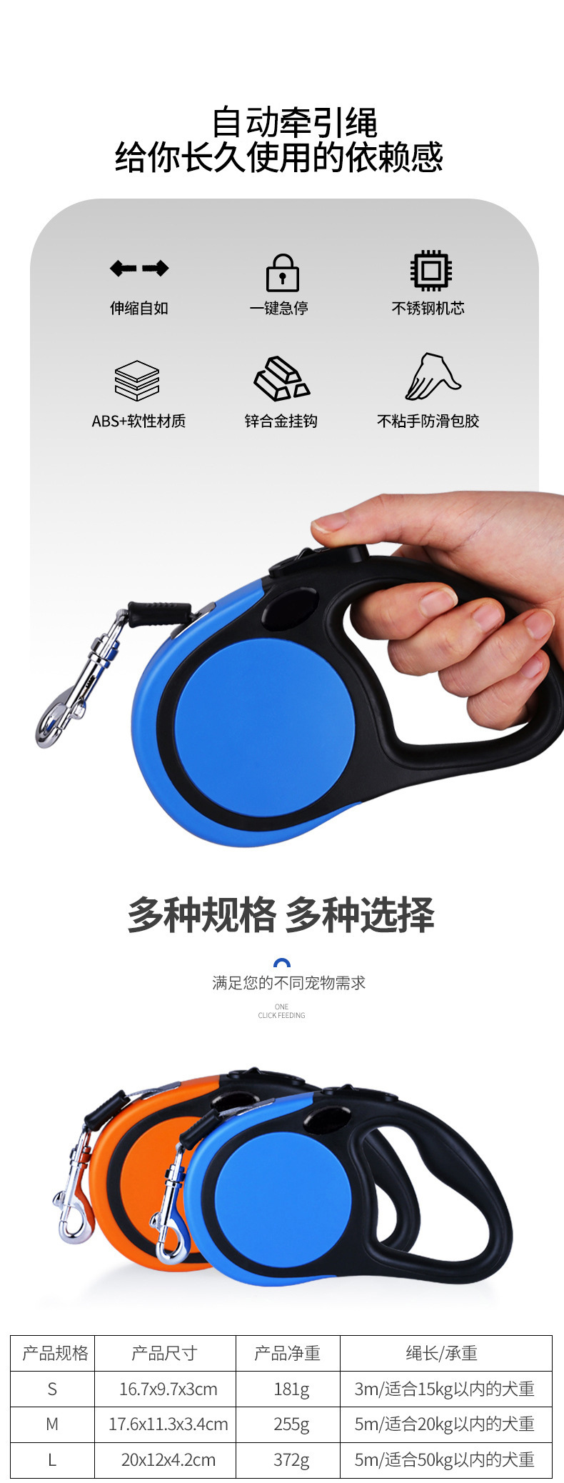 自动伸缩宠物猫狗牵引绳尼龙防滑包胶手柄便携伸缩宠物牵引器 优选好物-W仓