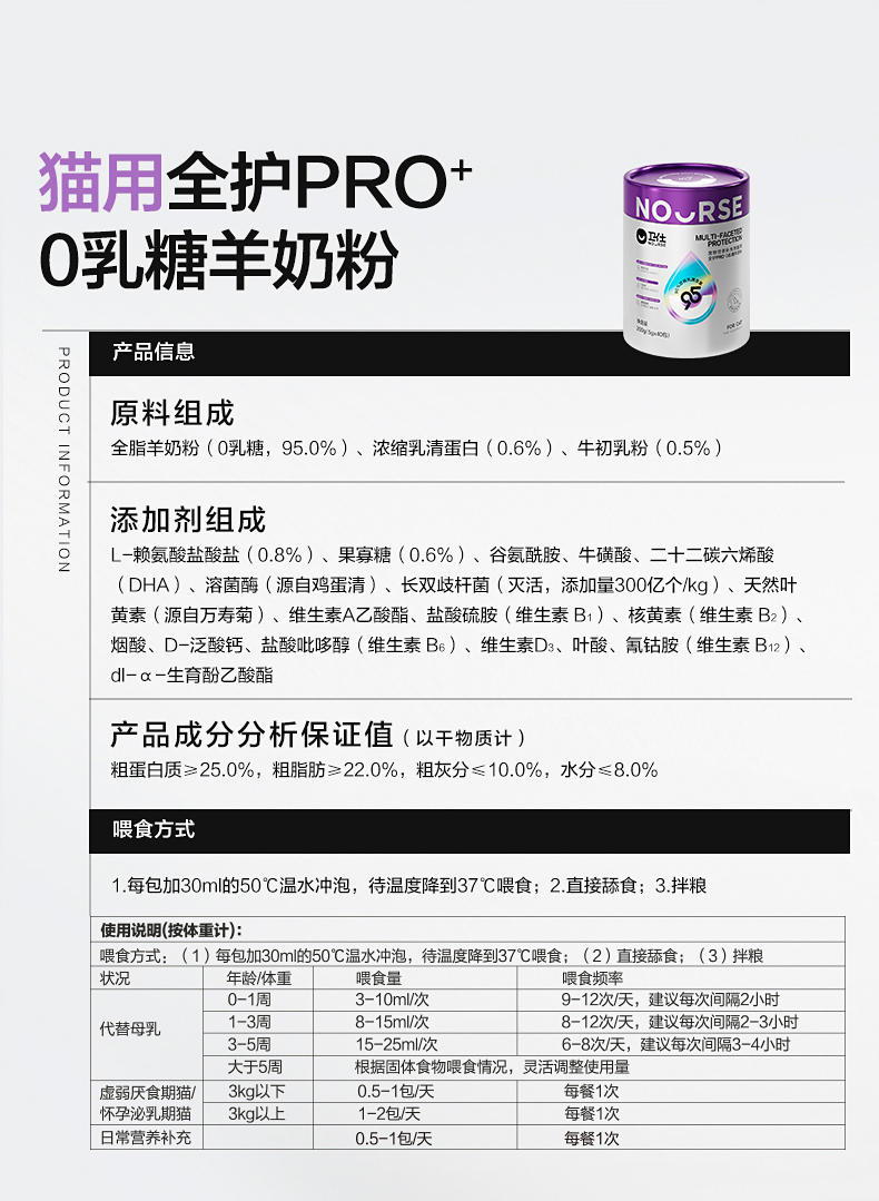 猫用营养补充剂 全护PRO+0乳糖羊奶粉(95%羊奶配方)
