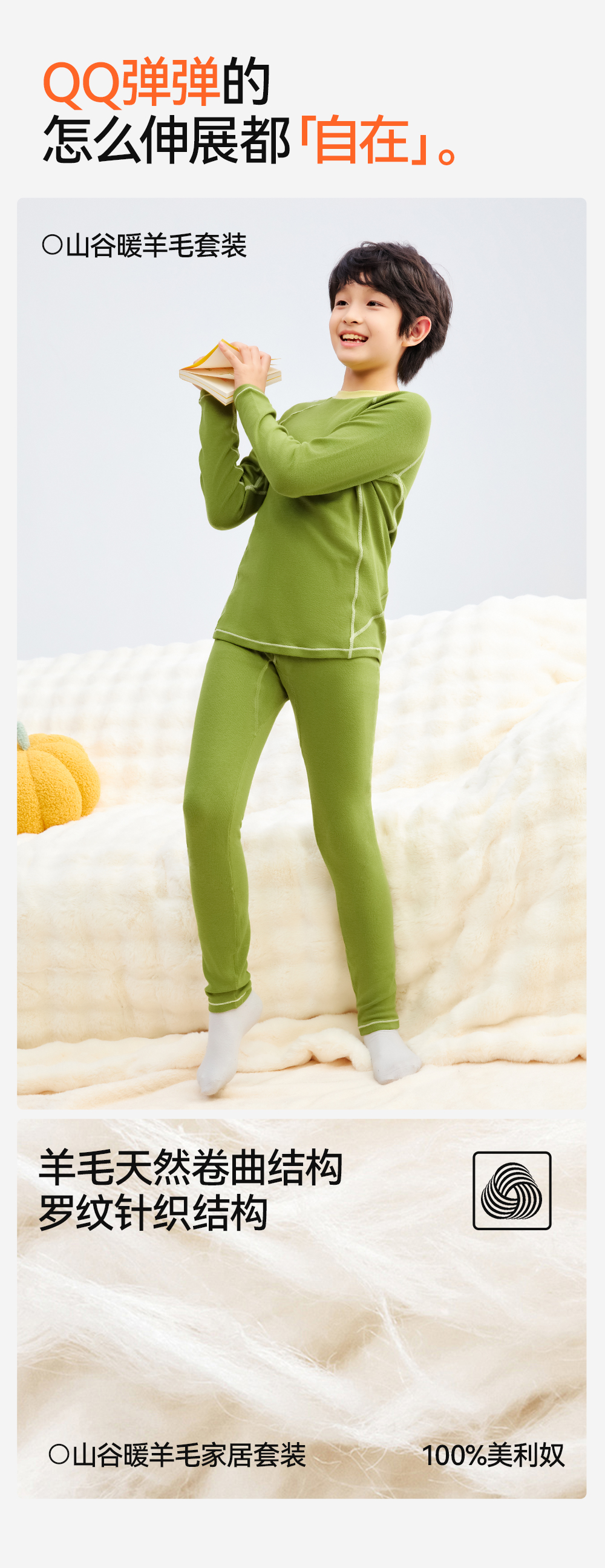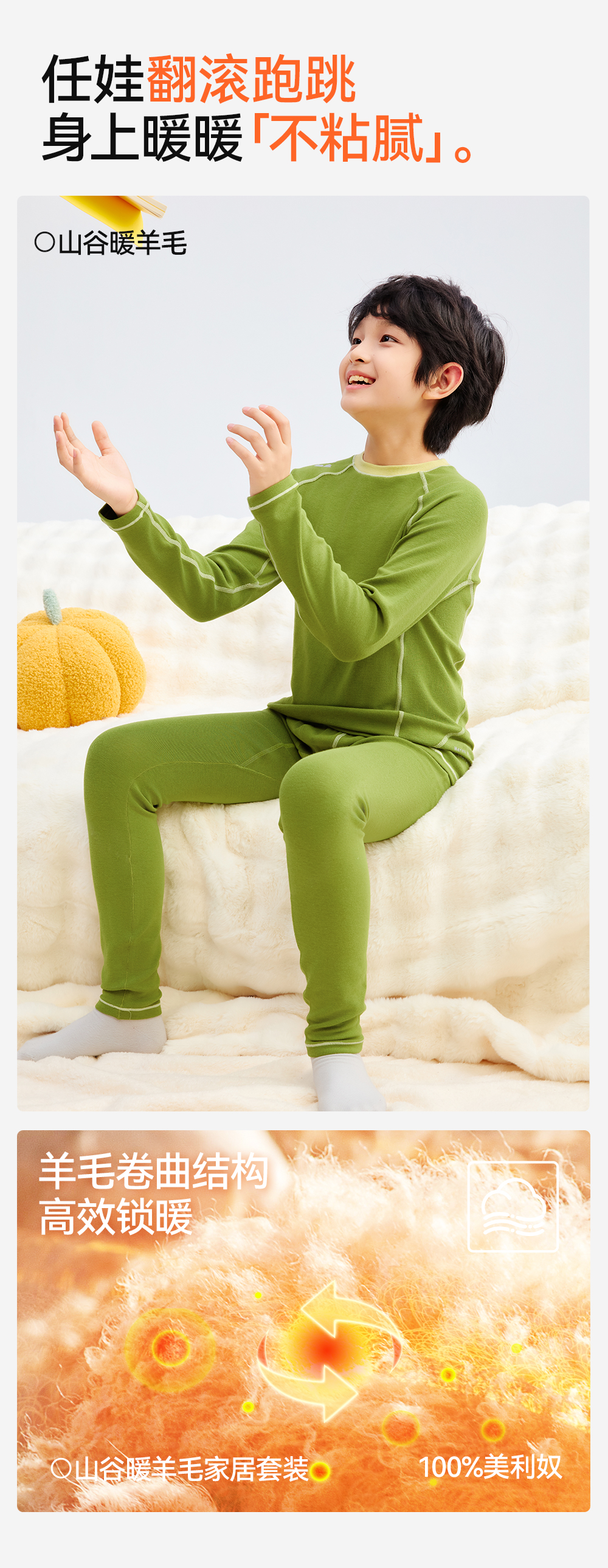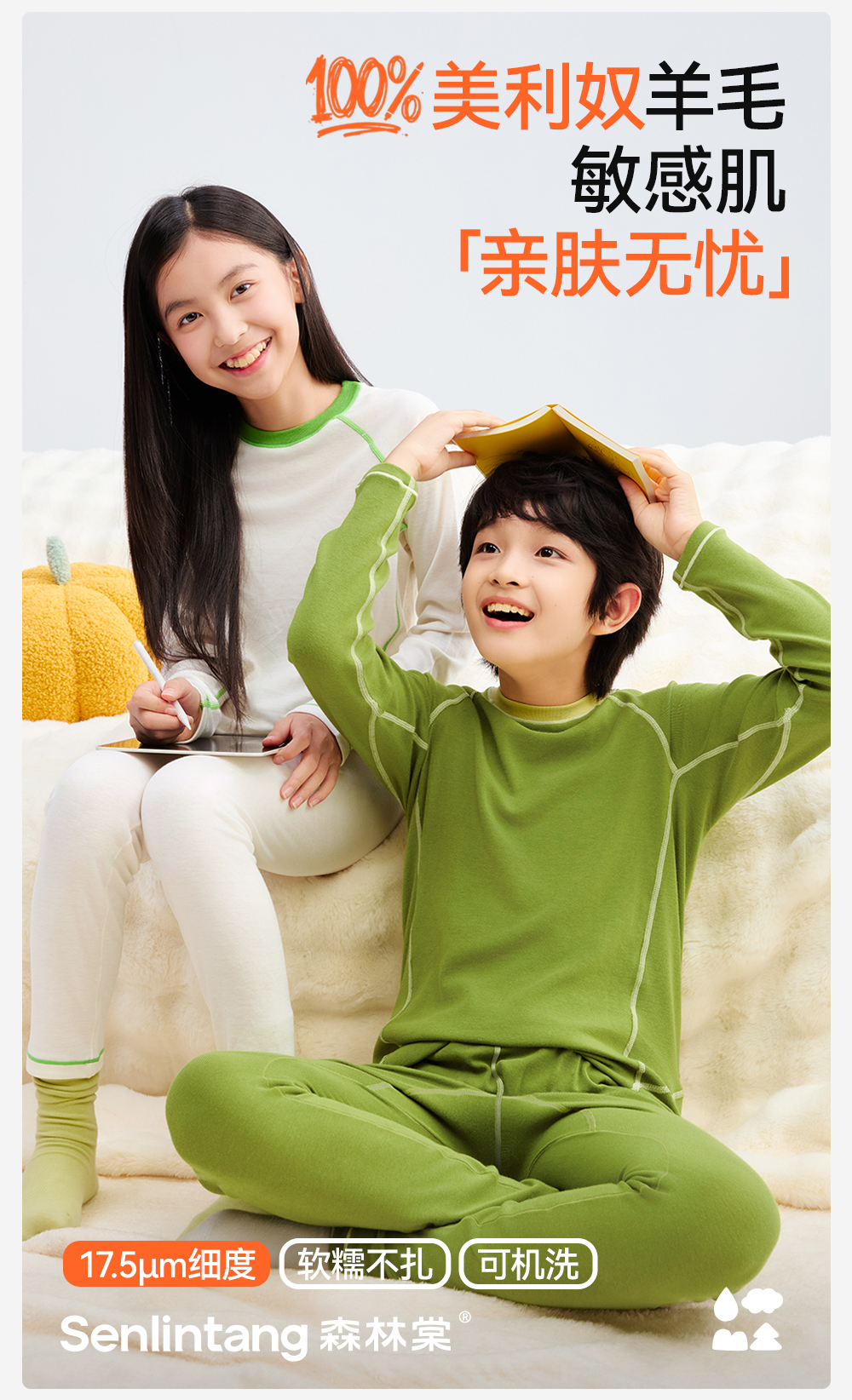 【儿童羊毛内衣套装】森林棠25冬季新款男童女童软糯亲肤美利奴羊毛家居服套装63353120