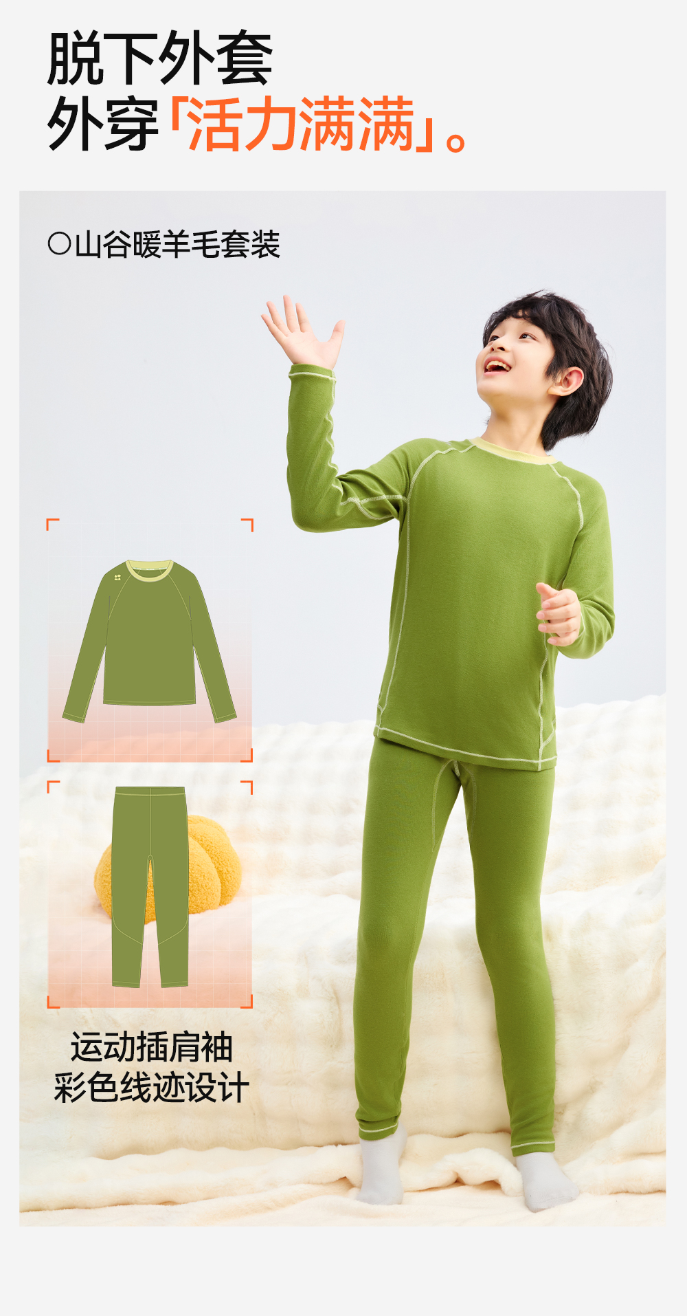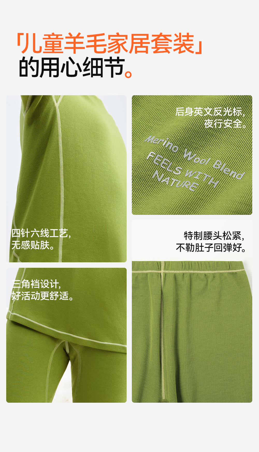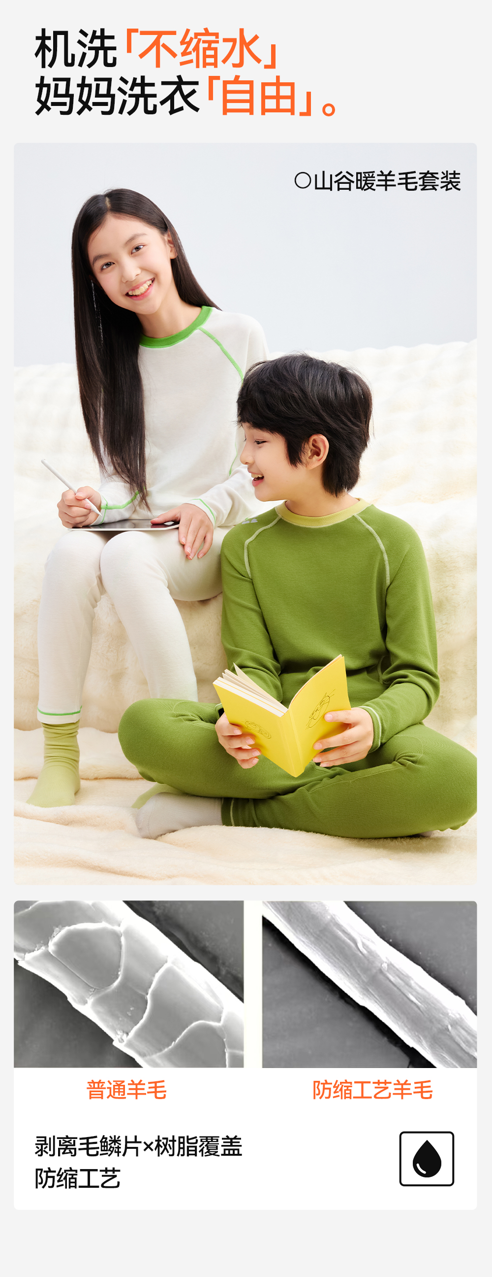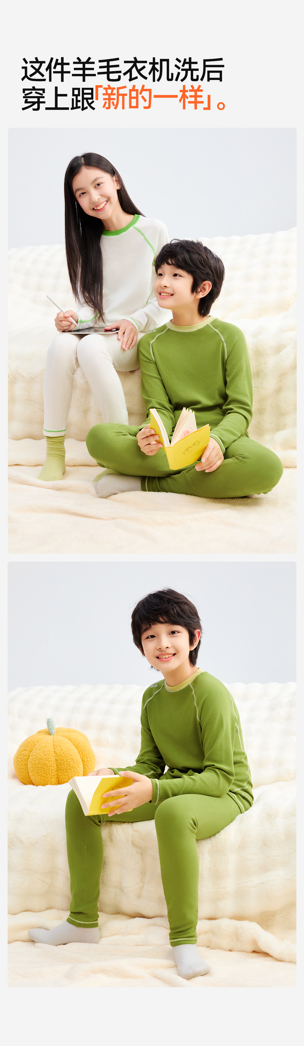 【儿童羊毛内衣套装】森林棠25冬季新款男童女童软糯亲肤美利奴羊毛家居服套装63353120