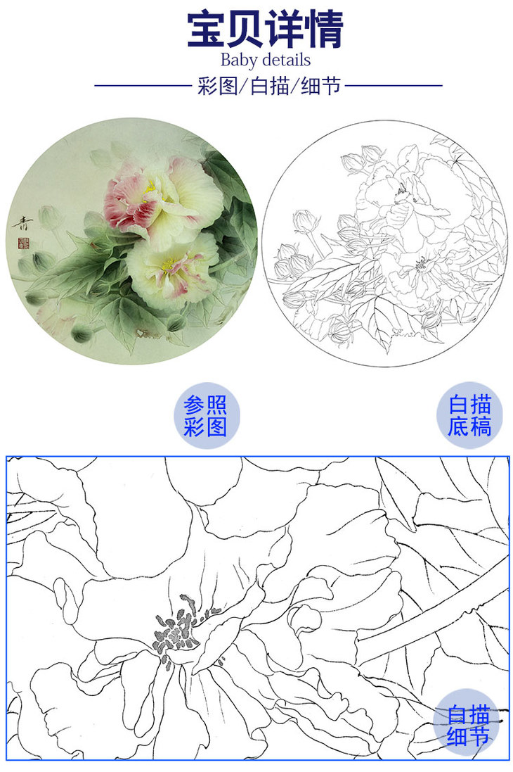龚雪青工笔花鸟白描底稿-芙蓉花小品-多种白描尺寸可选-XQ03