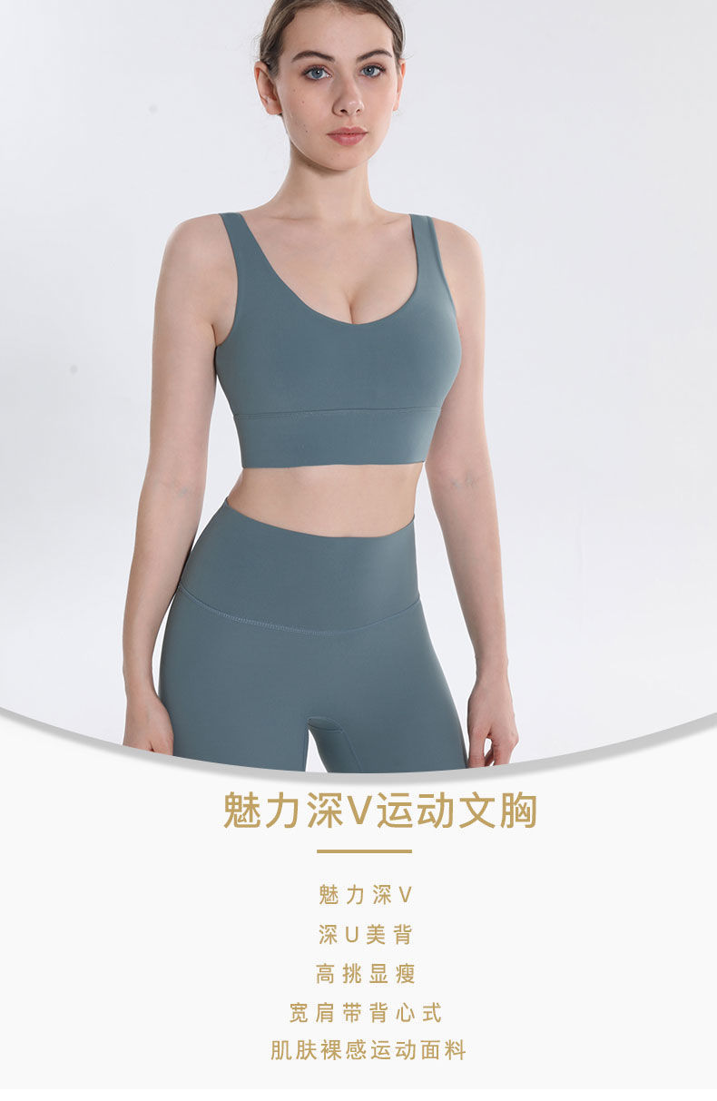 2022新款运动内衣聚拢深v美背女瑜伽防震跑步健身文胸背心式
