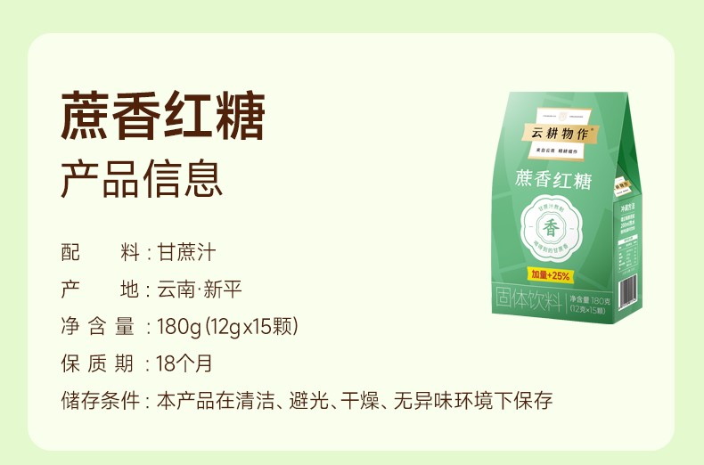 - 云耕物作是一个高品质无添加红糖的品牌,创新现代工艺和古法工艺相融合,给你无添加的爱。