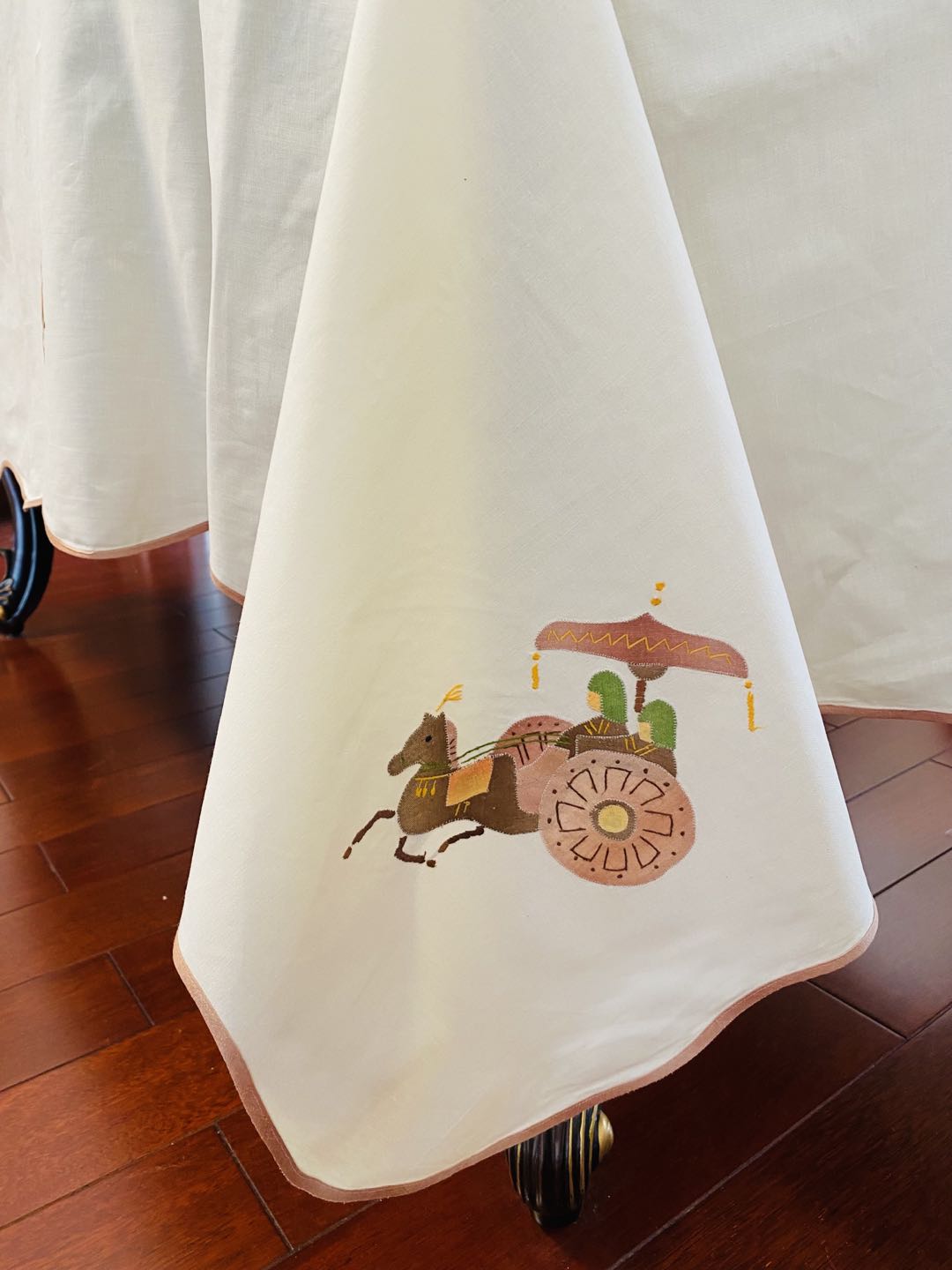 纯棉彩色手绣桌布 出口日韩的老外贸库存(共3款,规格170*260cm)