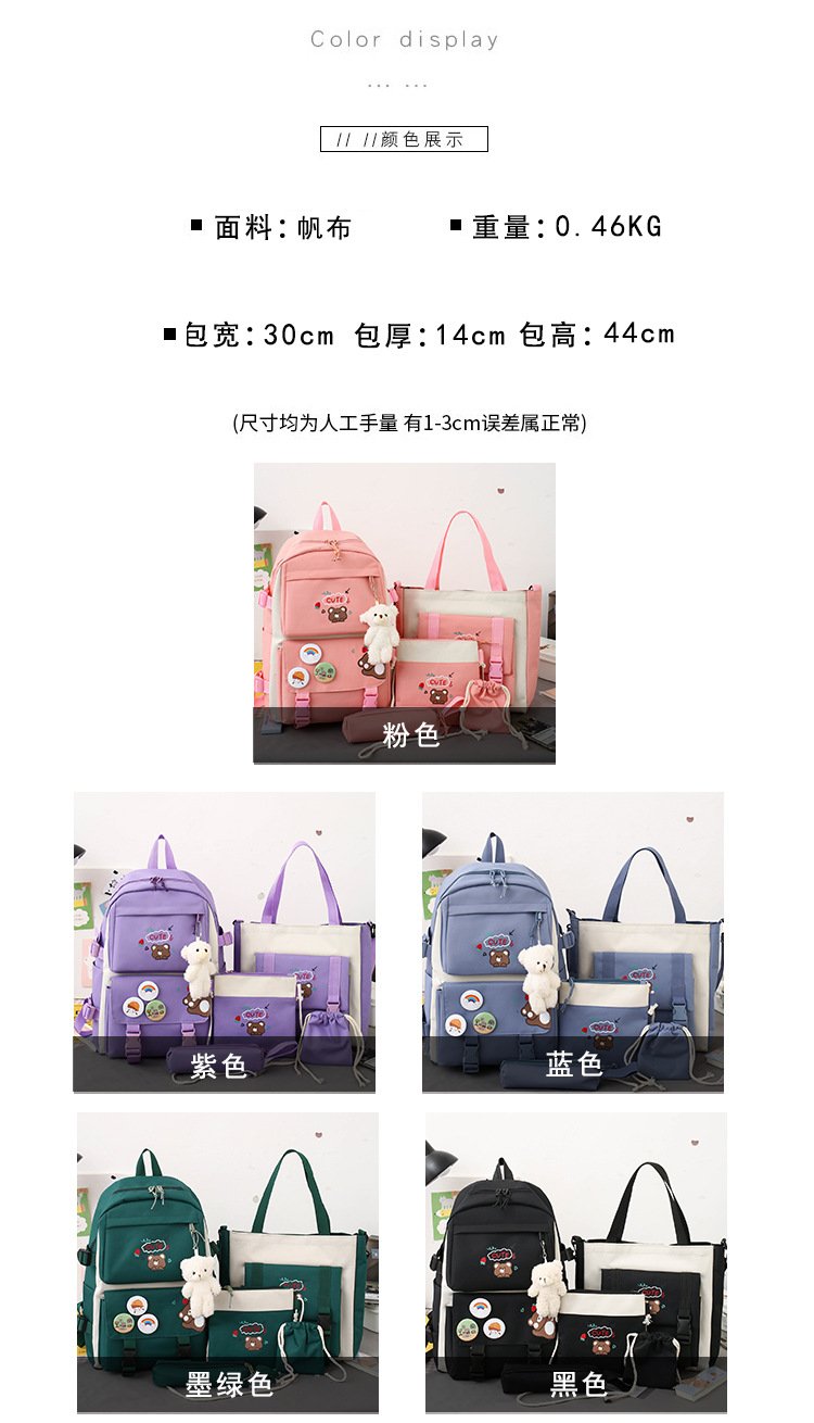 【开学季!】新款小学生书包 时尚背包五件套 轻便可爱包包 学生背包 女童男童双肩包书包。hb