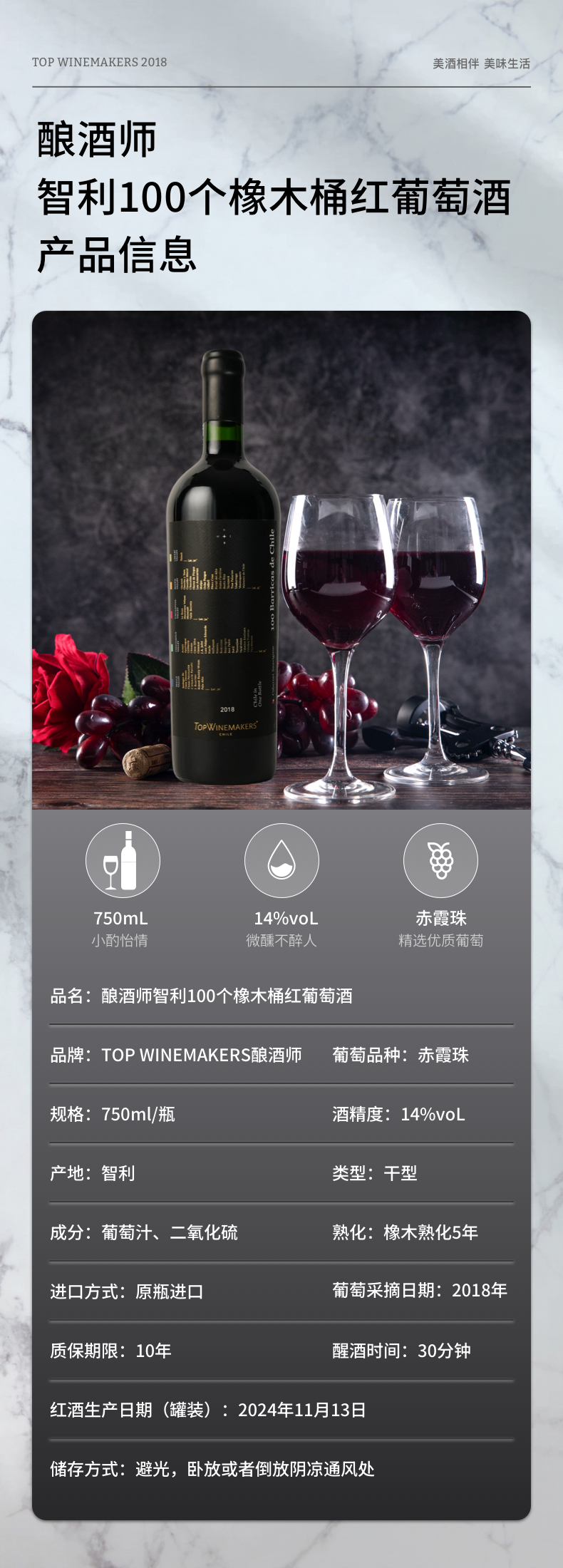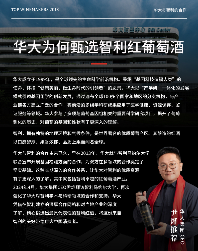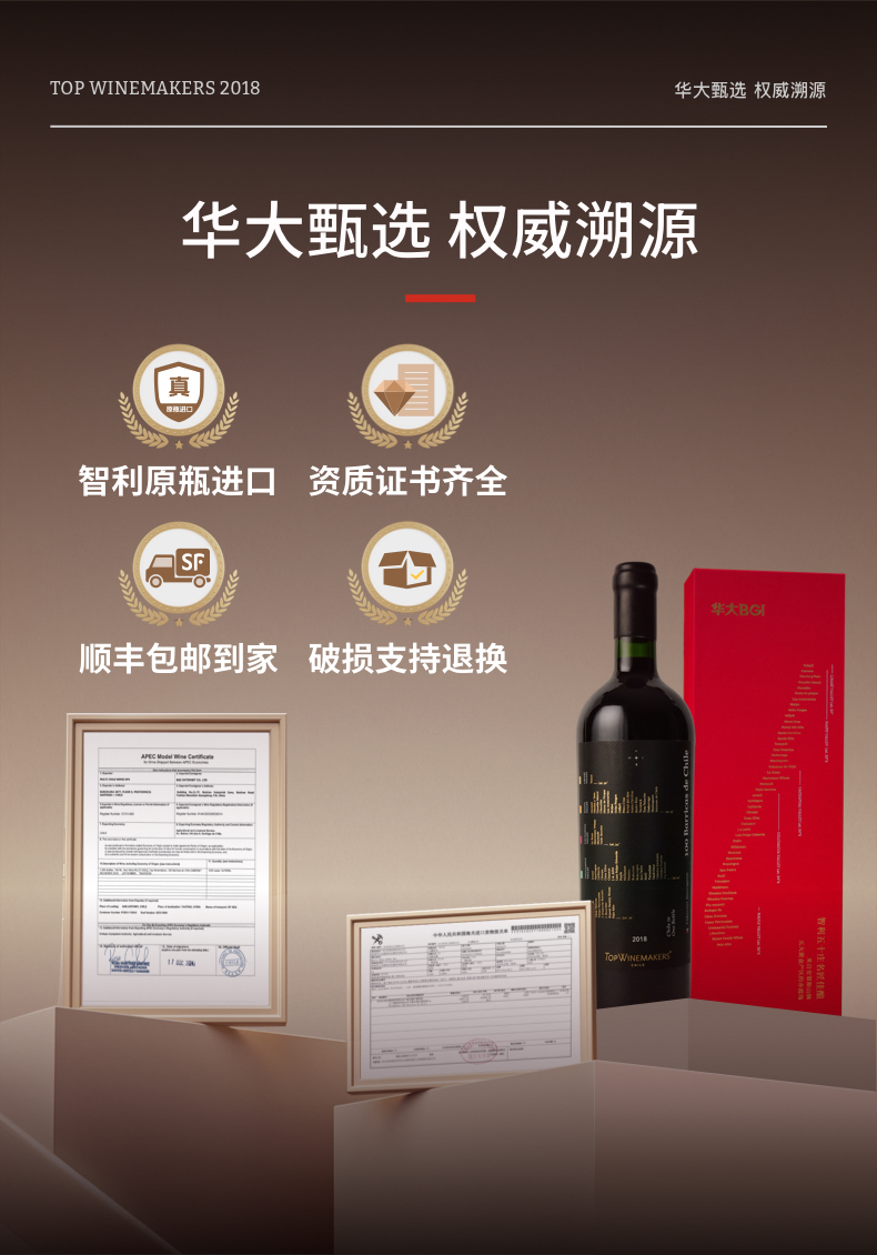 【智利红酒】华大原瓶进口TOPWINEMAKERS赤霞珠葡萄酒2018年750ml五年熟化14度干型含礼盒红酒送礼