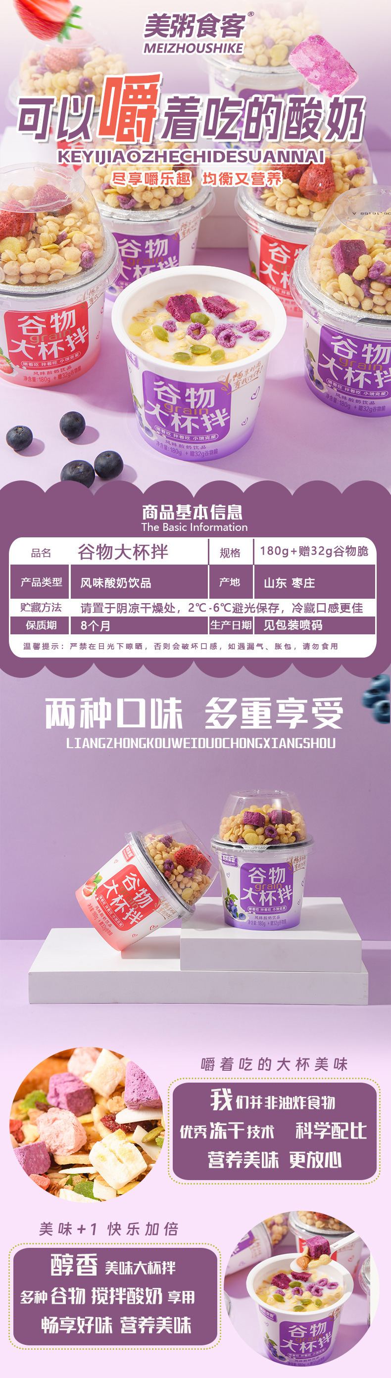 【尽享嚼乐趣,均衡又营养】搅拌酸奶谷物酸奶杯 6杯/箱 嚼着吃的酸奶 大杯装燕麦酸奶 两种口味 多重享受-QQ