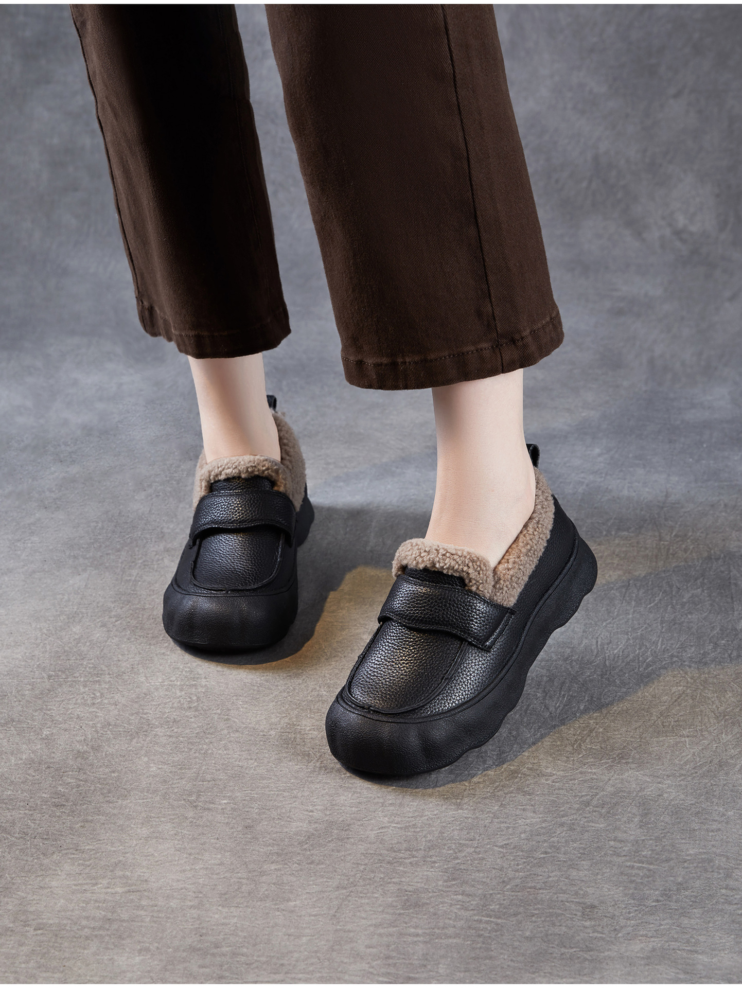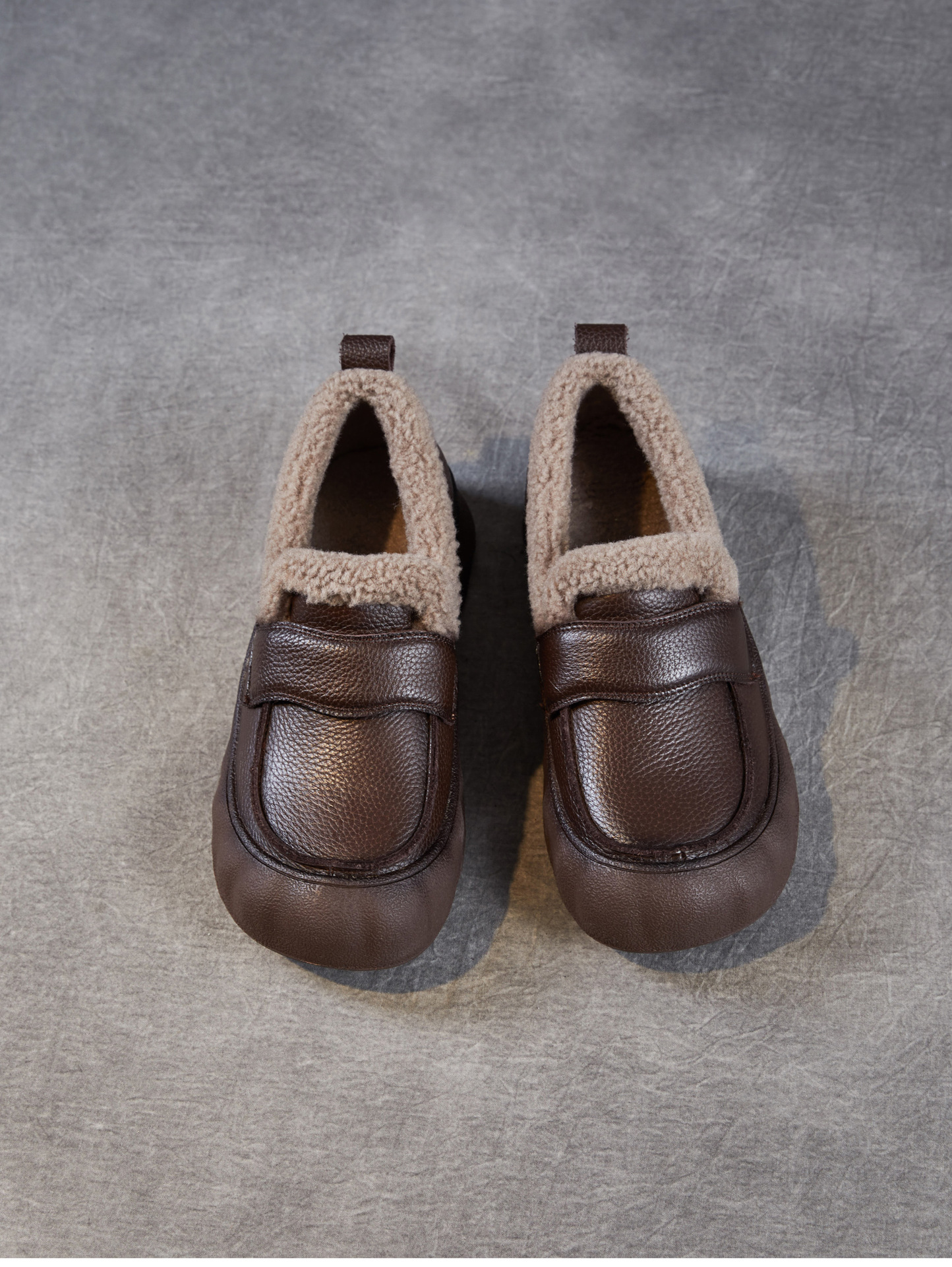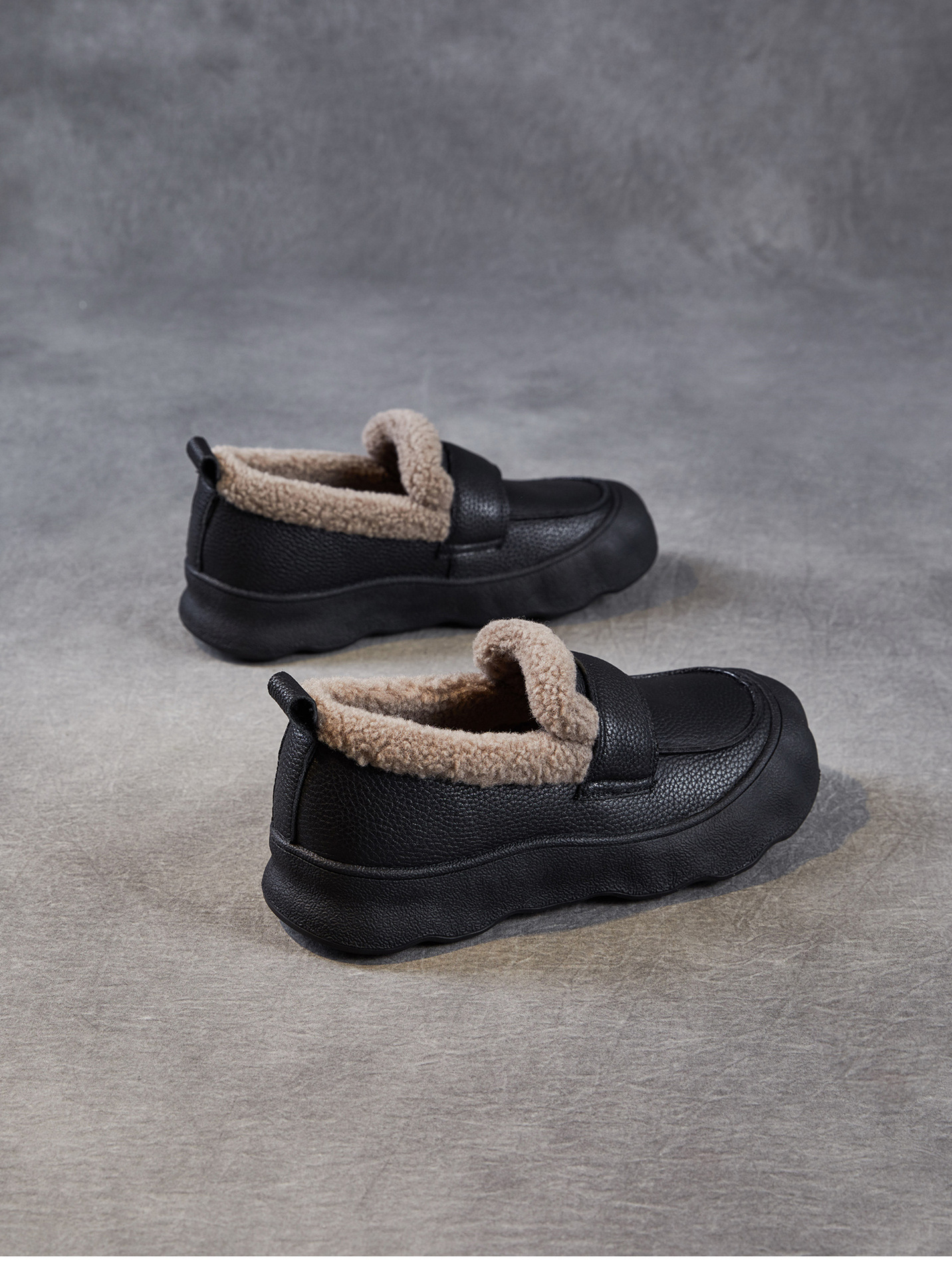 头层牛皮一脚蹬毛毛口鞋,平底休闲棉鞋软底加绒保暖皮鞋ZM258719