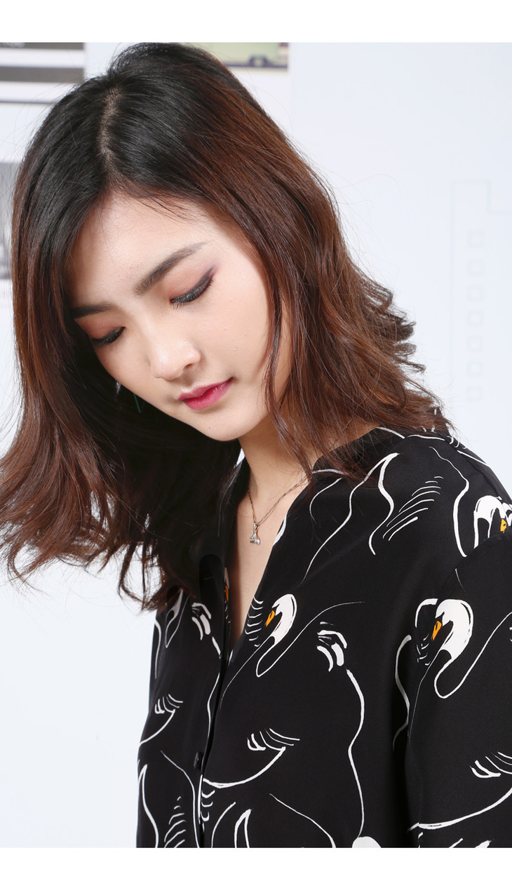 丁摩 白天鹅印花真丝衬衫长袖桑蚕丝碎花上衣19-021-DS399