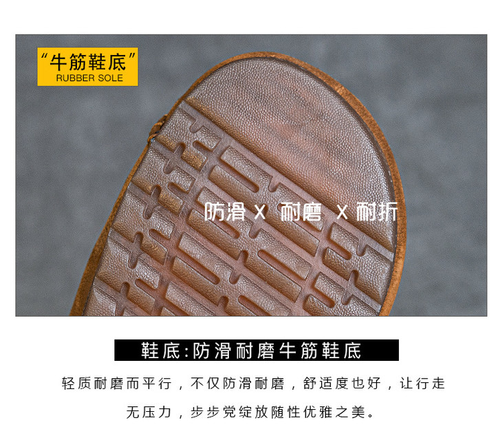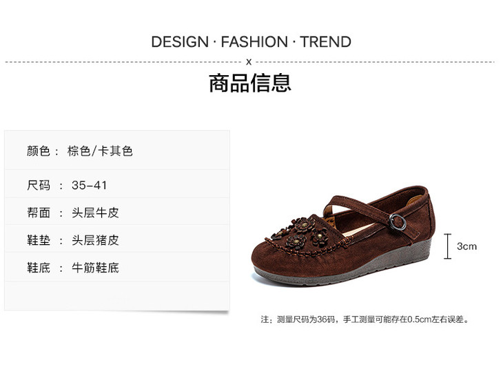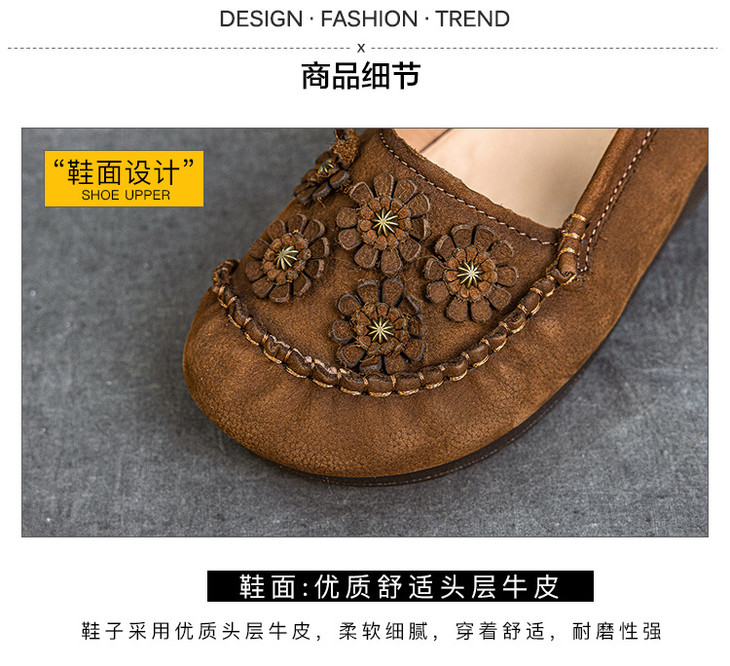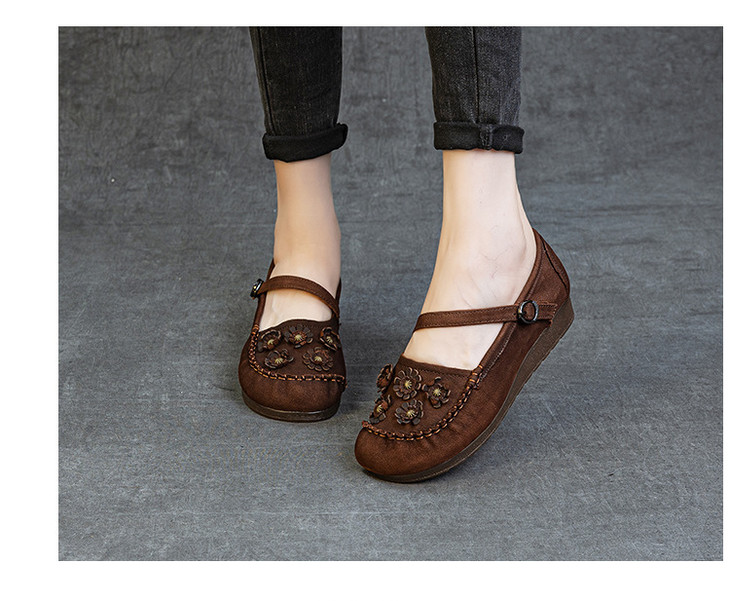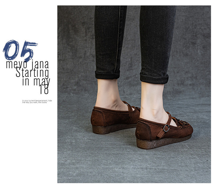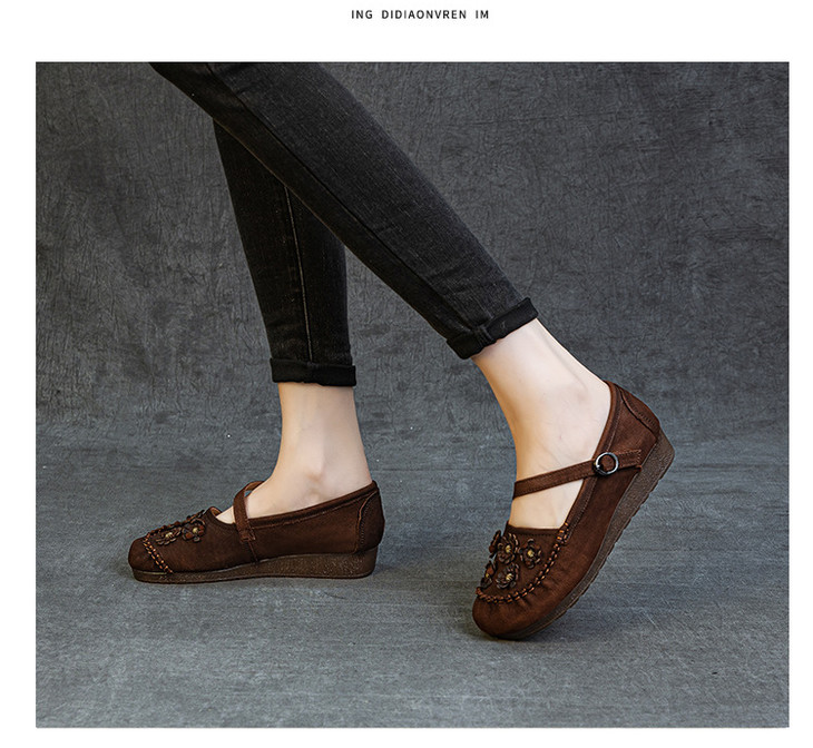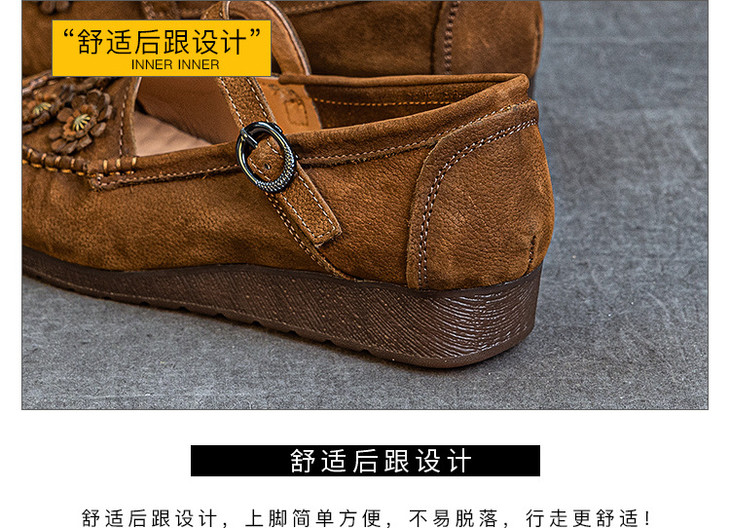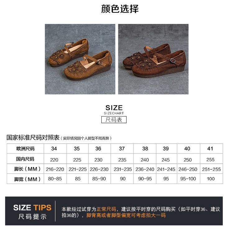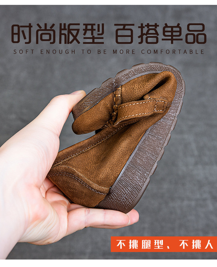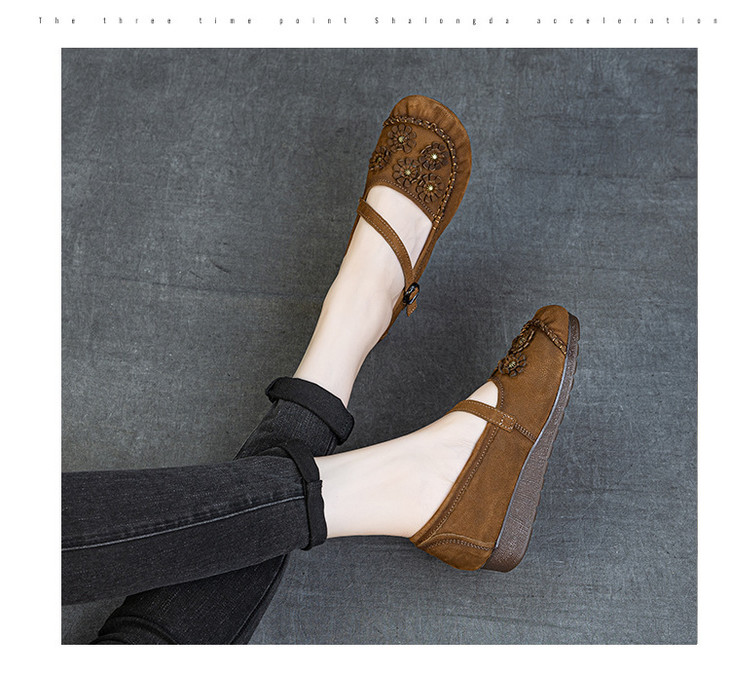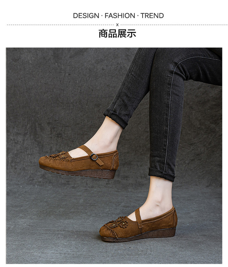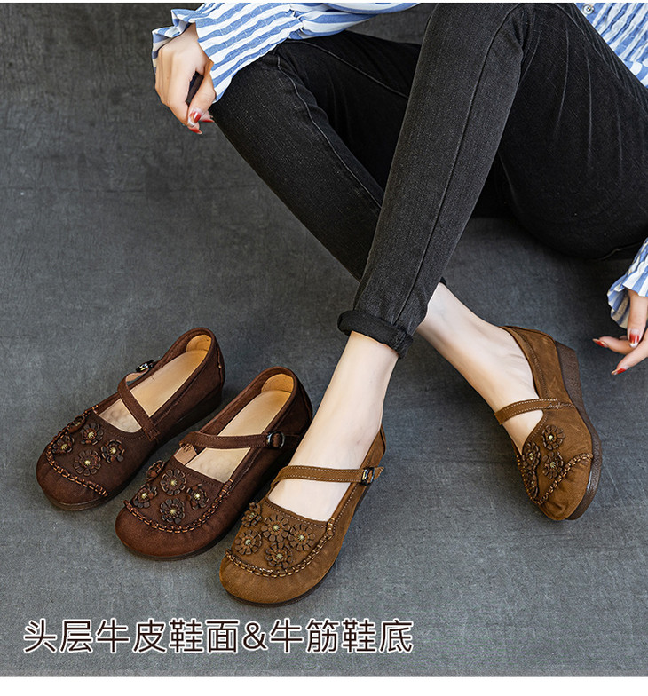 民族风复古手工女单鞋,头层牛皮厚底防滑一字带浅口软皮鞋ZM6158