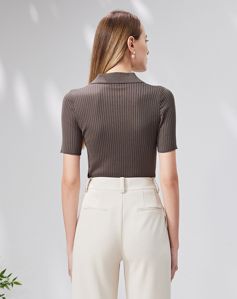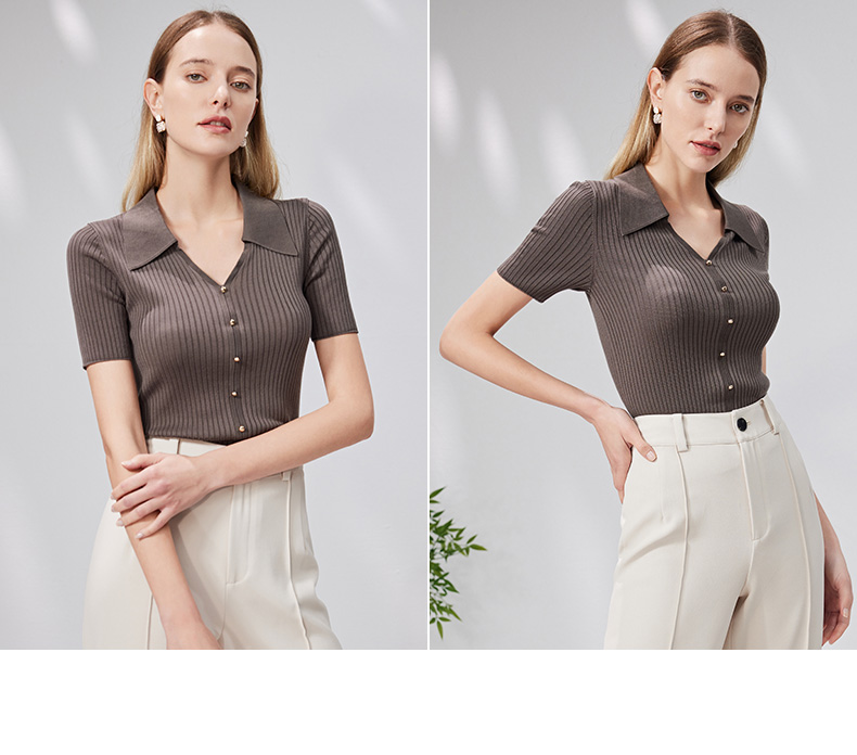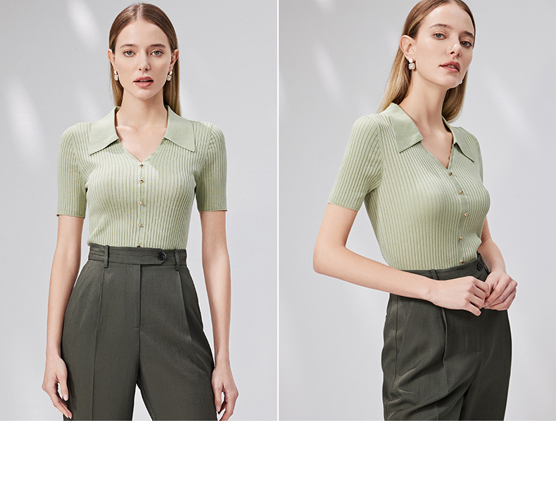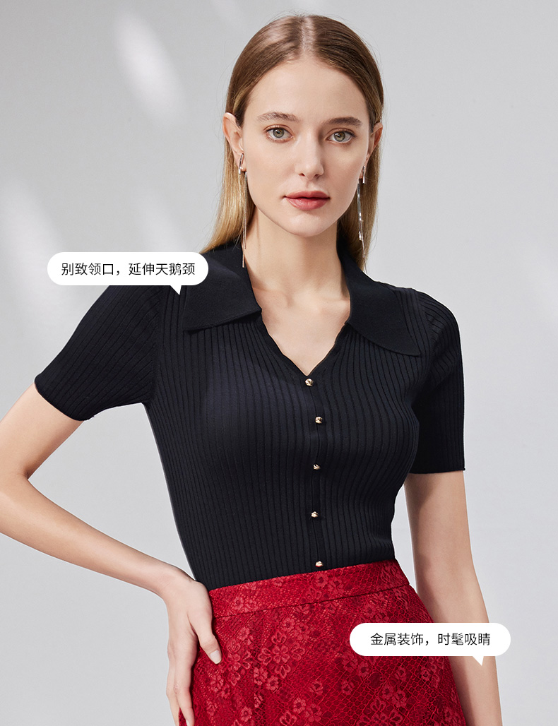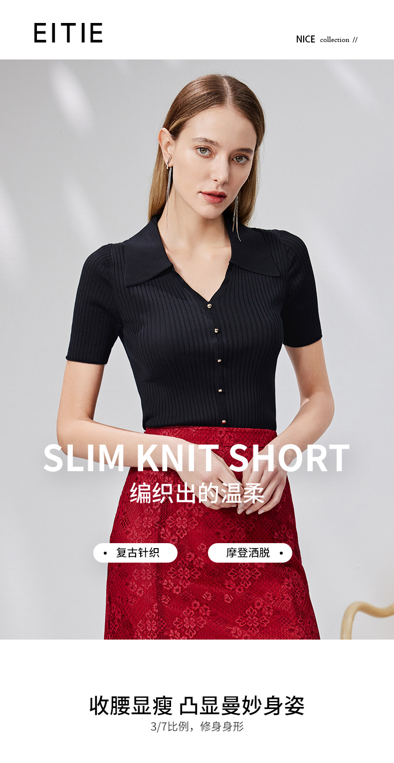 EITIE爱特爱简约基础款舒适弹力修身半袖针织衫通勤百搭夏新款B2301120