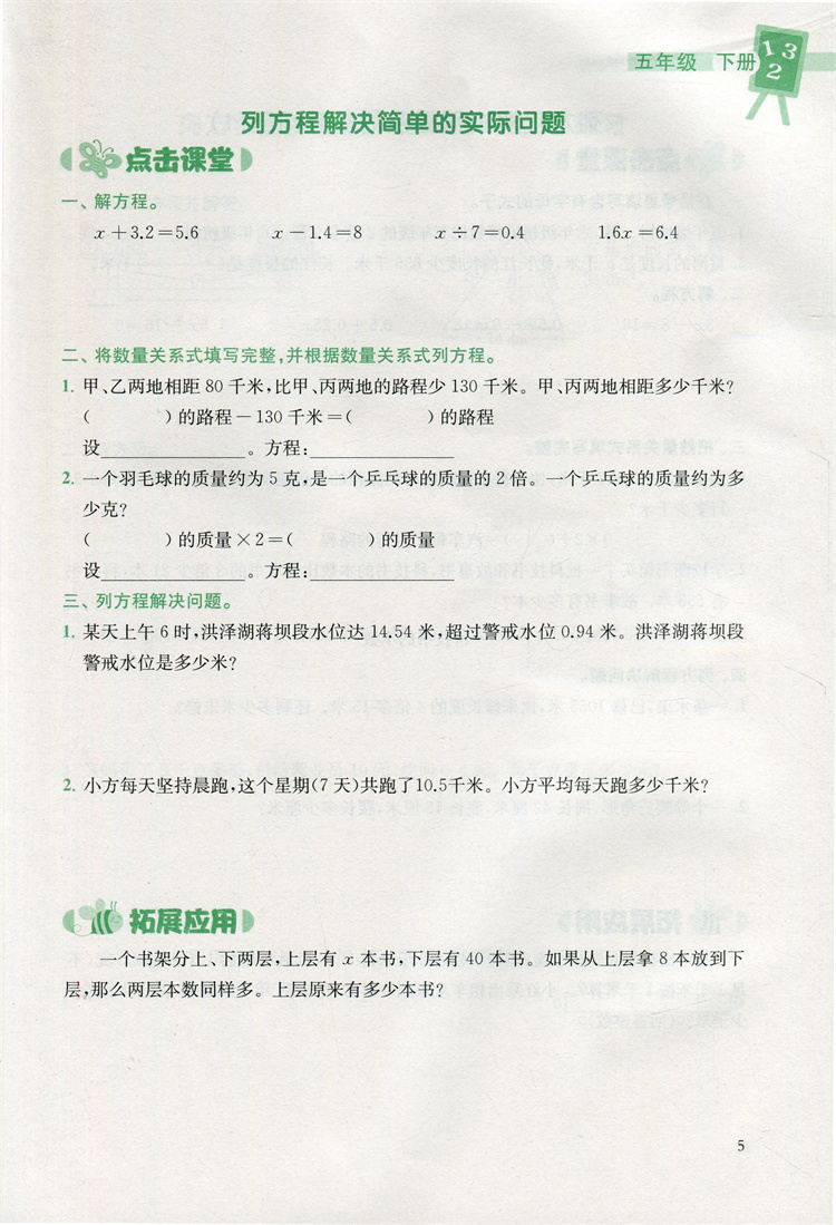 2026春 课课练 小学数学五年级下册5下 苏教版配苏教版 小学数学教材同步教辅练习 不含试卷
