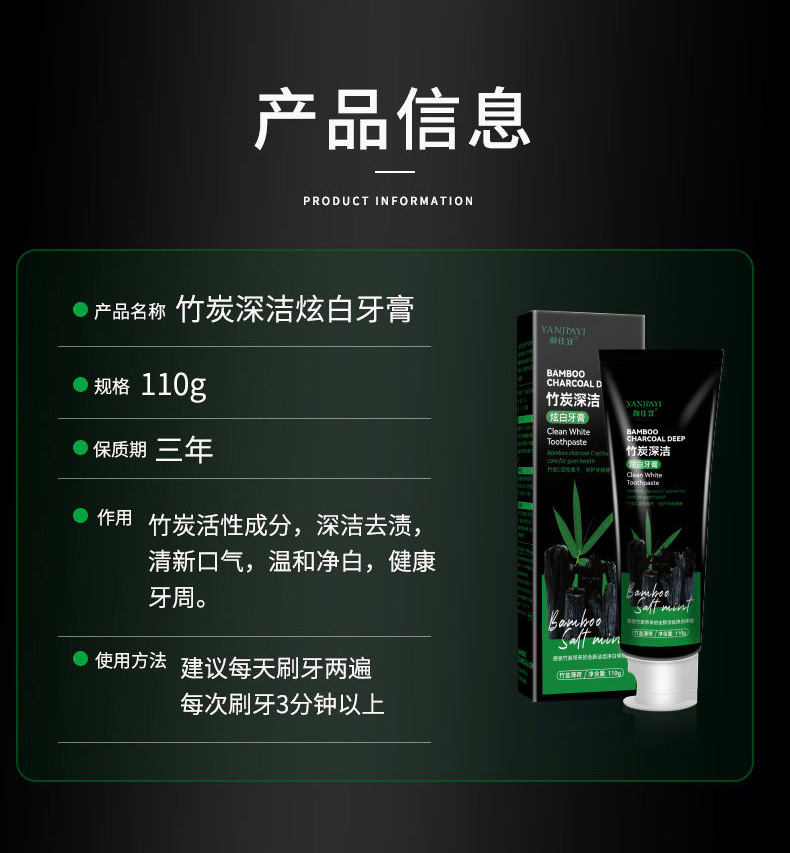 (三支装)颜佳宜竹炭牙膏活性木炭牙膏110g-A仓