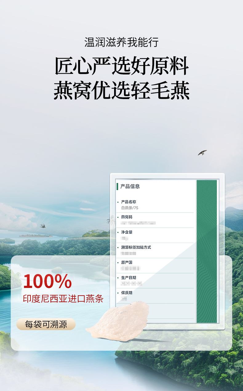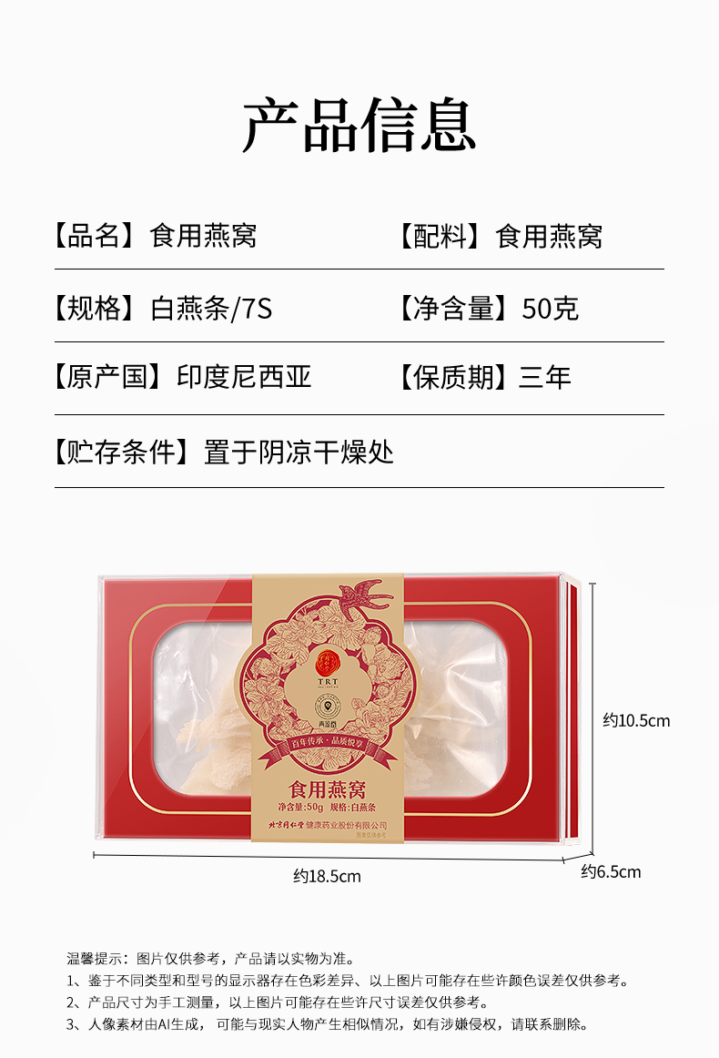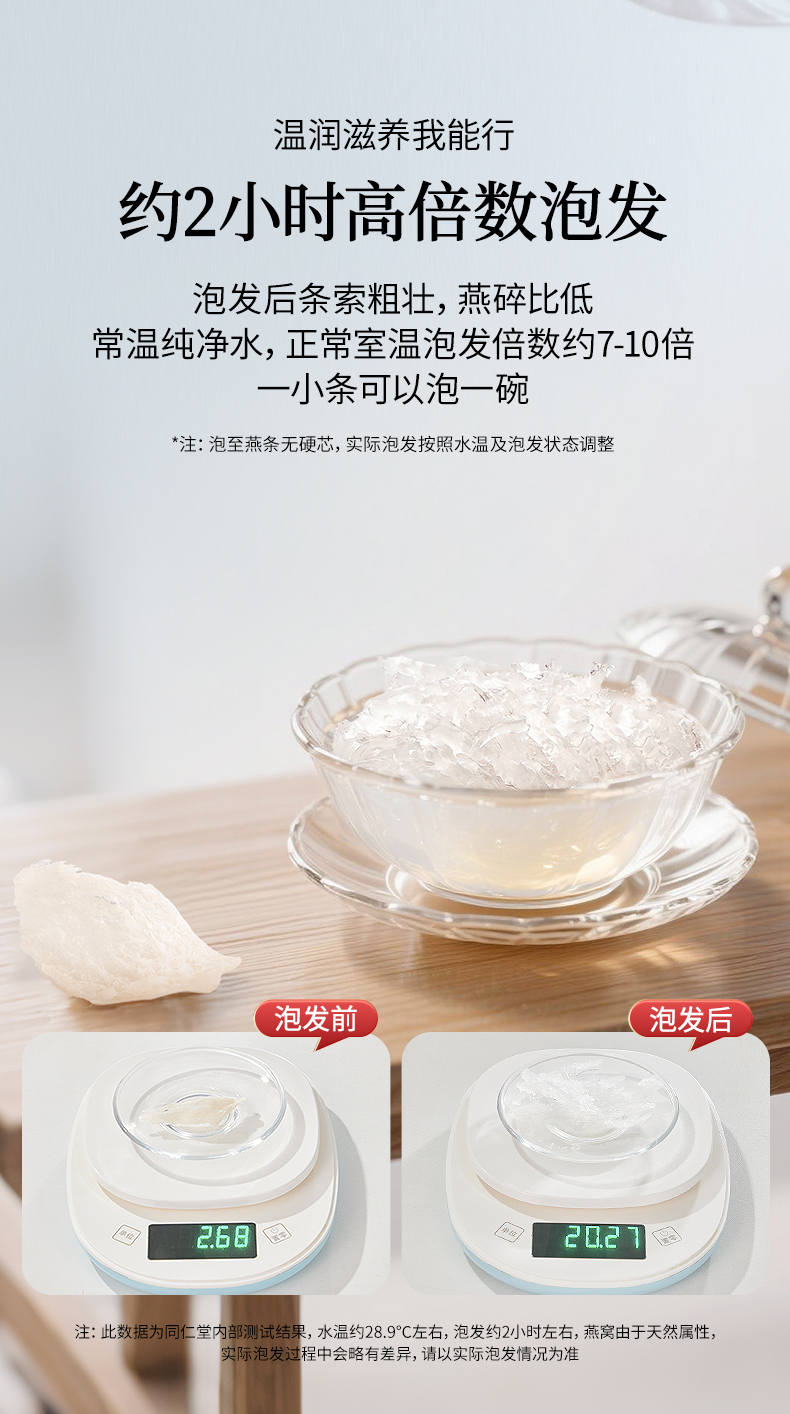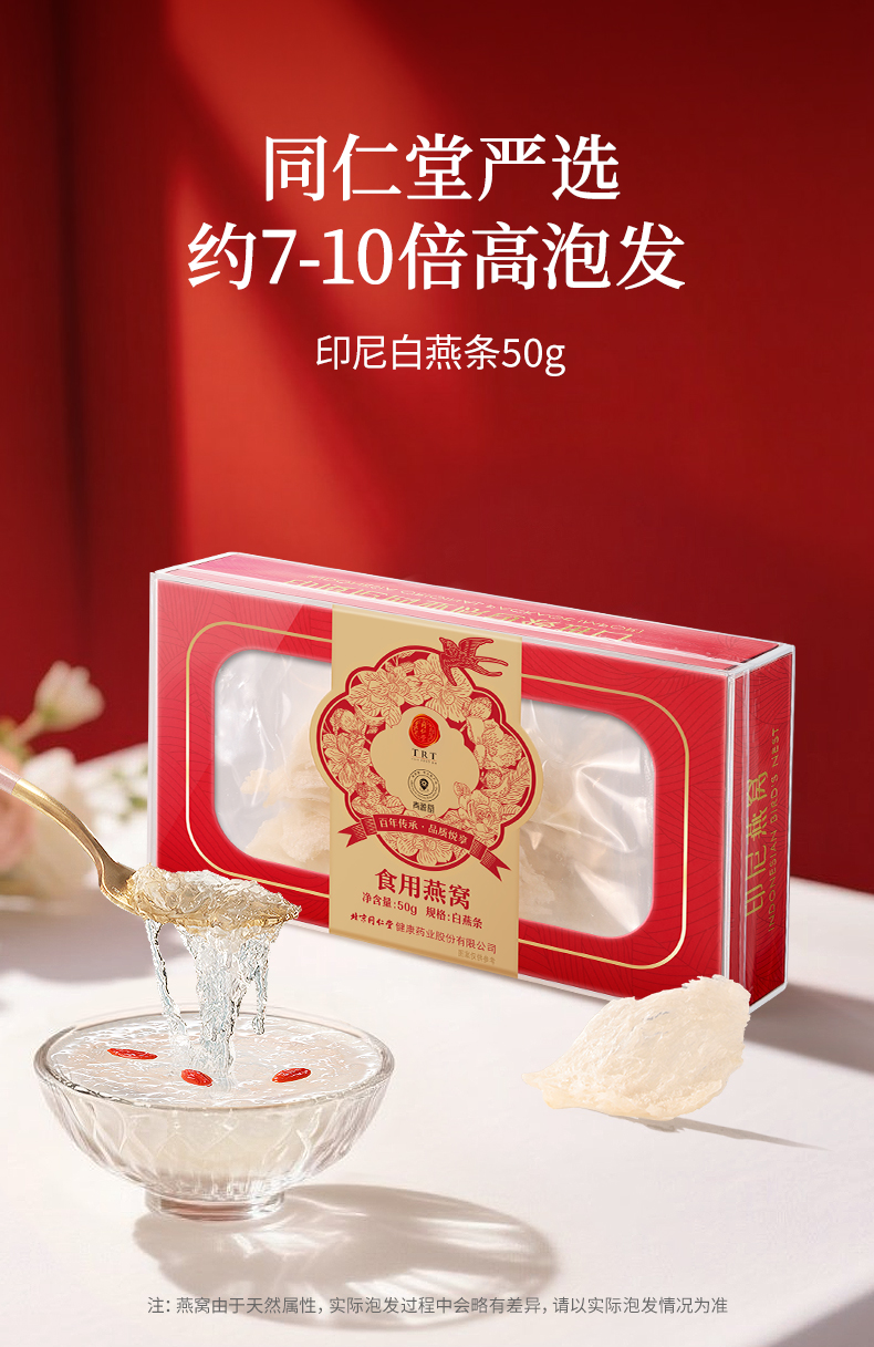 【正宗同仁堂品牌】北京同仁堂 青源堂 白燕条/印尼7S/50g 手工挑毛 自然燕条 自然色泽SY
