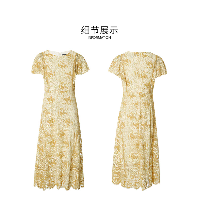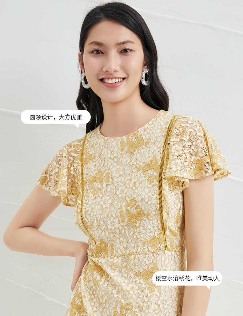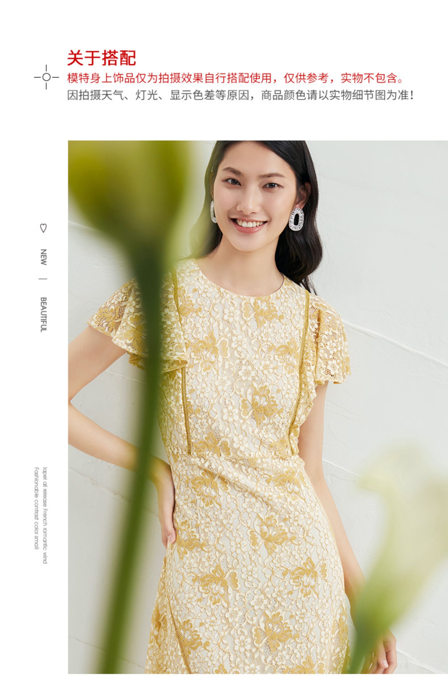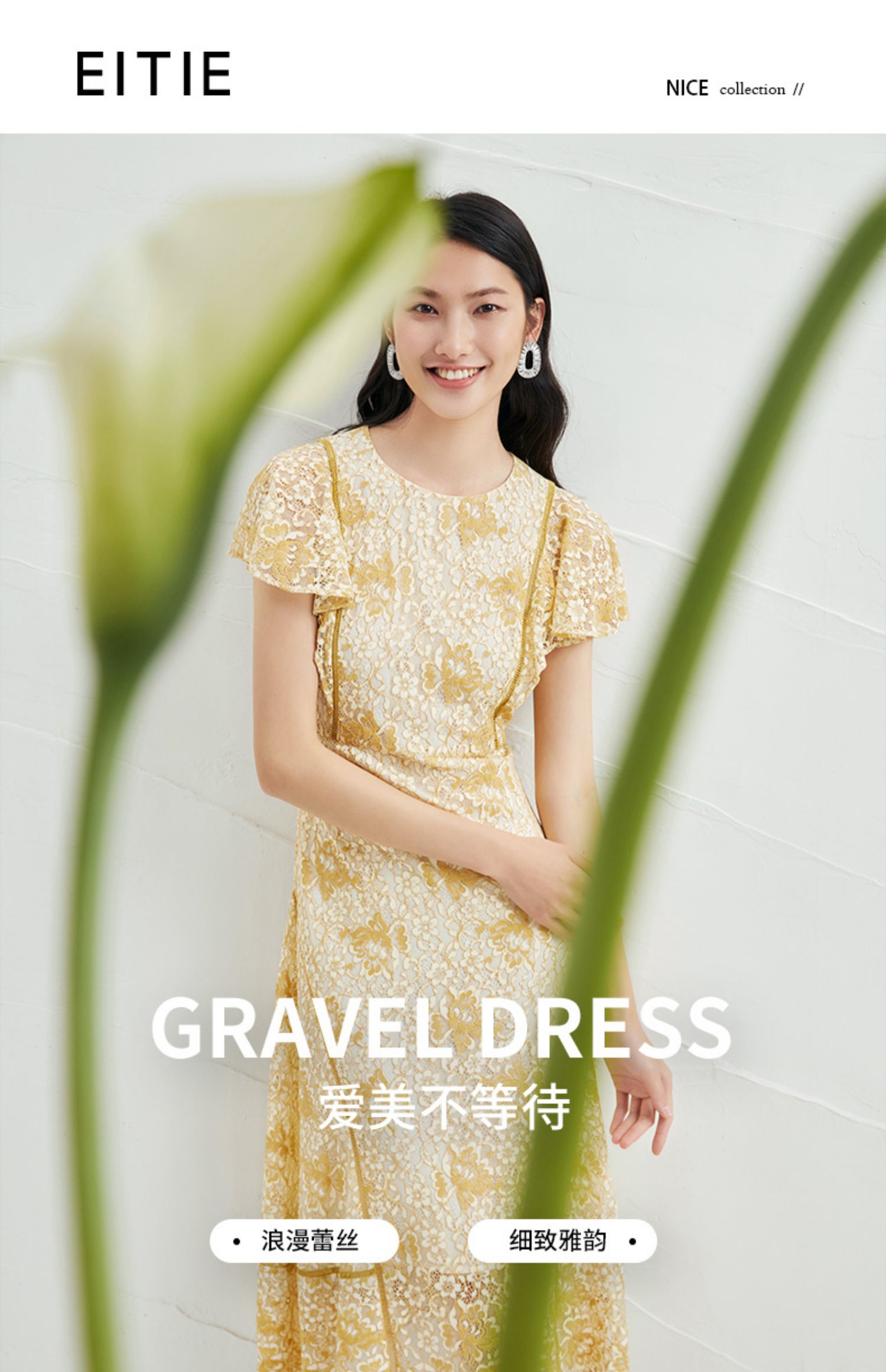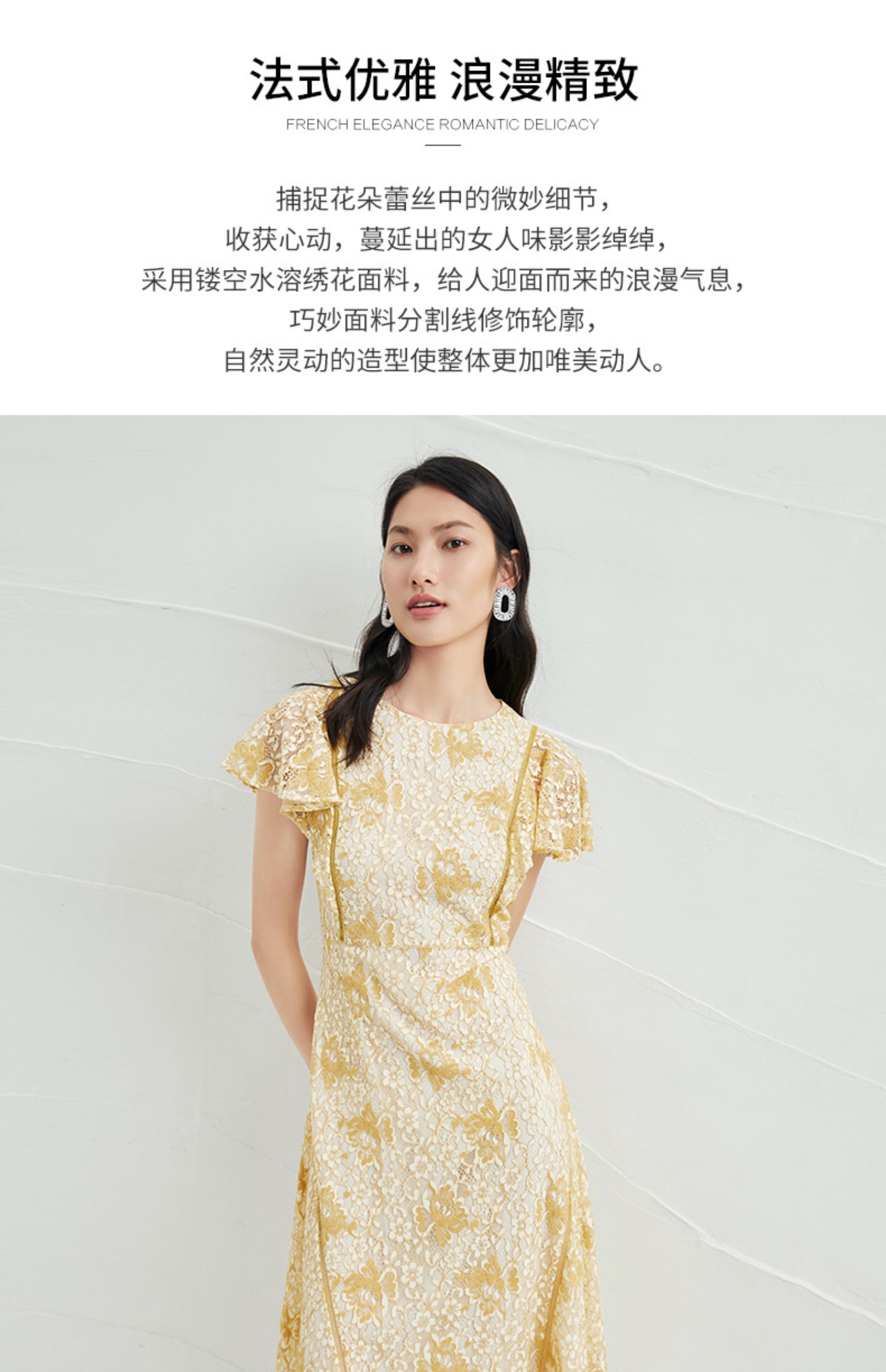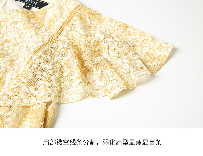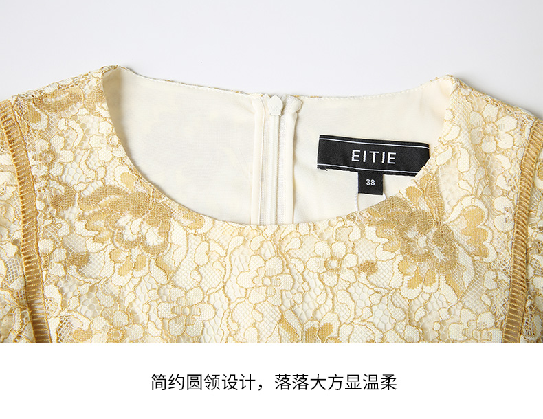 EITIE爱特爱夏季新款飞飞袖显瘦通勤百搭收腰a字蕾丝连衣裙B2207940