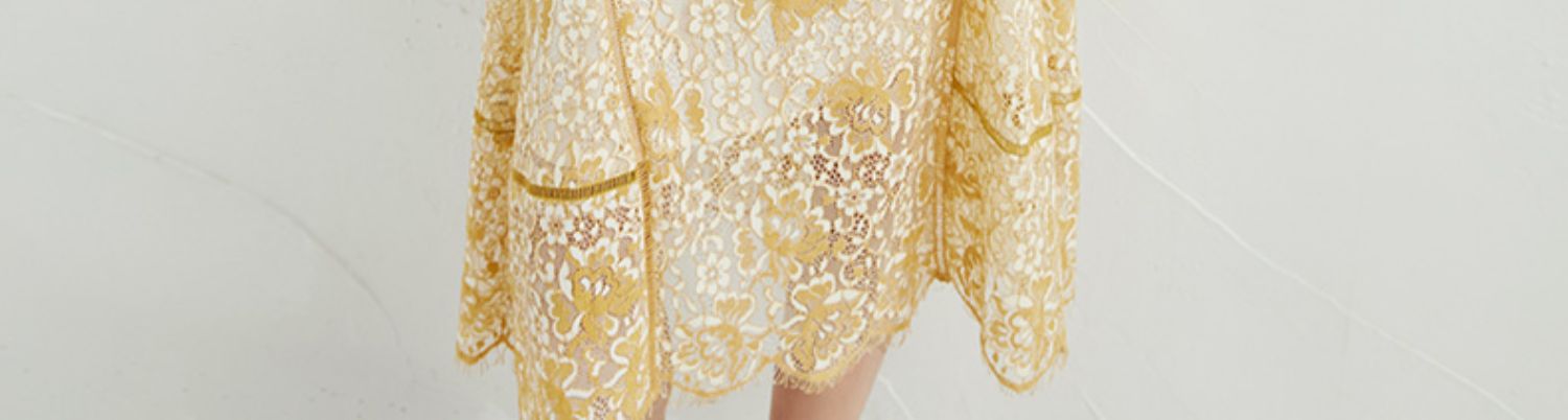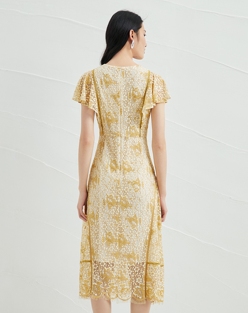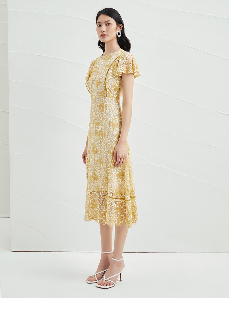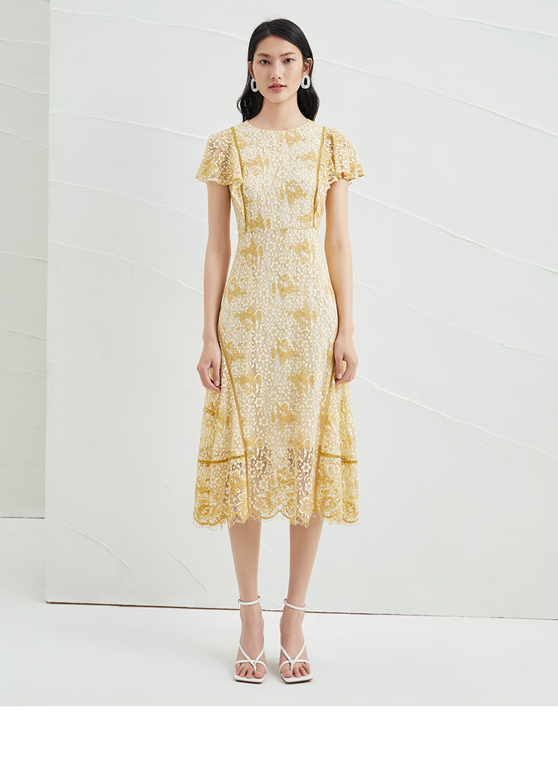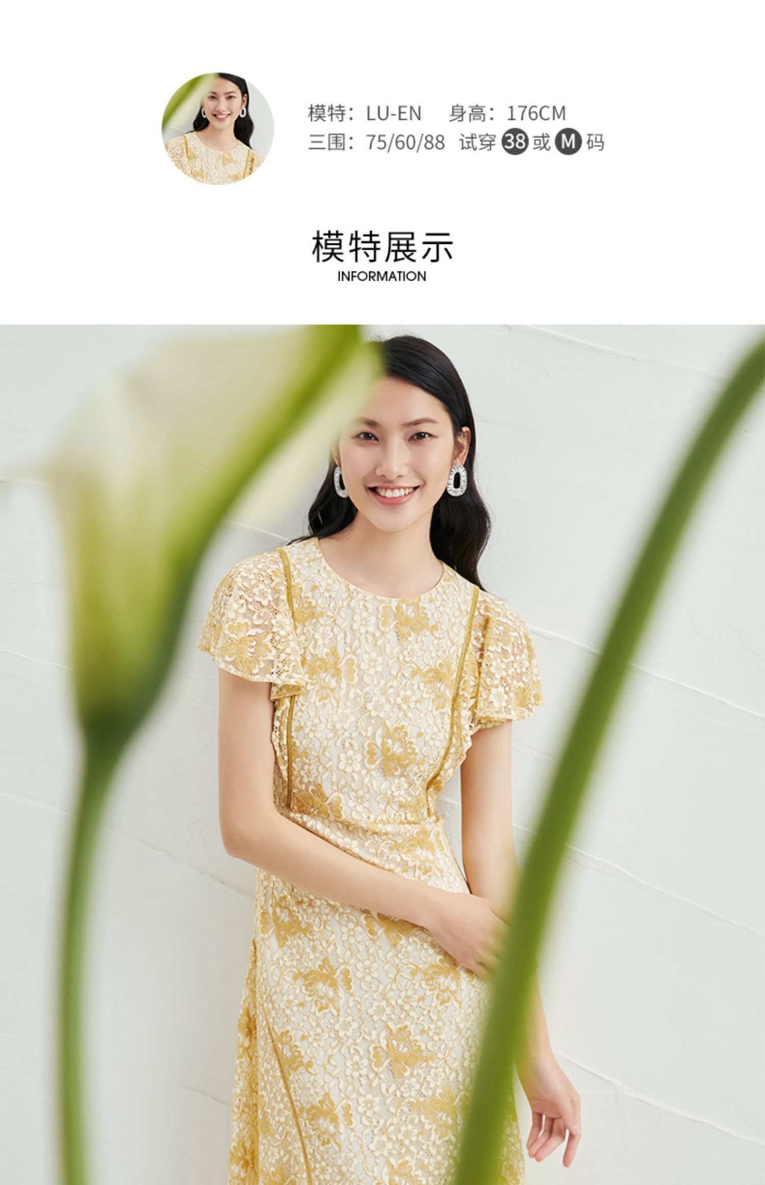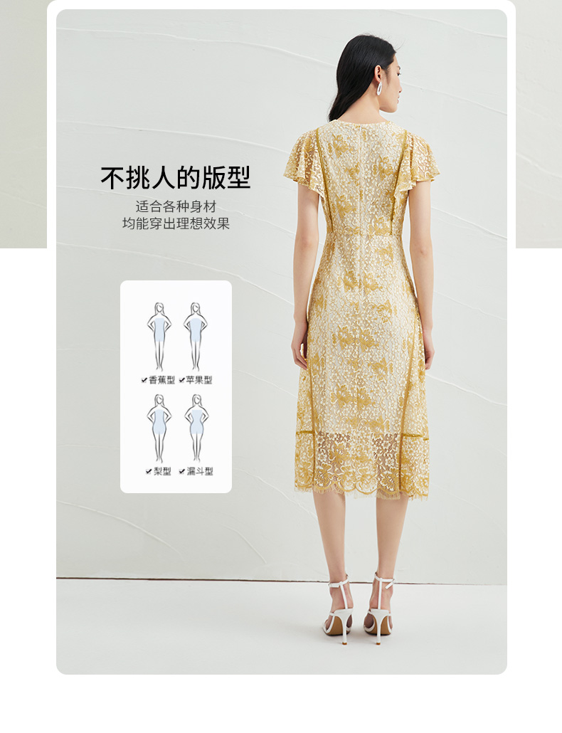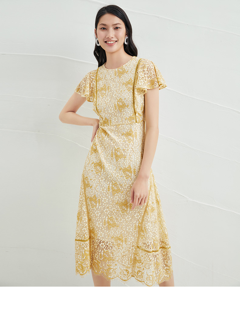 EITIE爱特爱夏季新款飞飞袖显瘦通勤百搭收腰a字蕾丝连衣裙B2207940