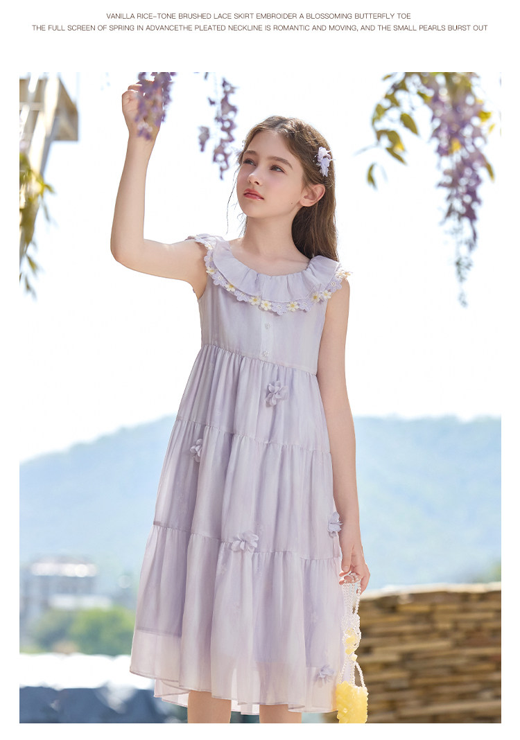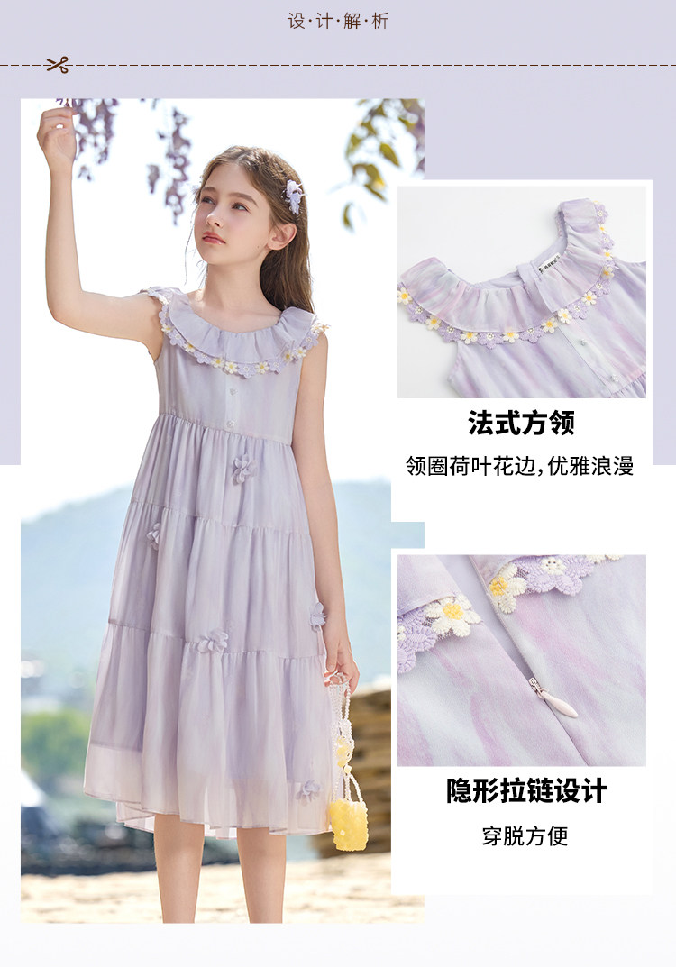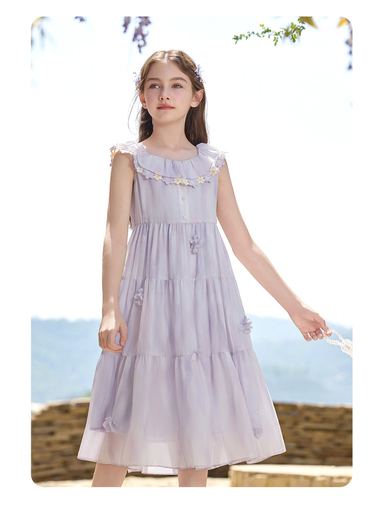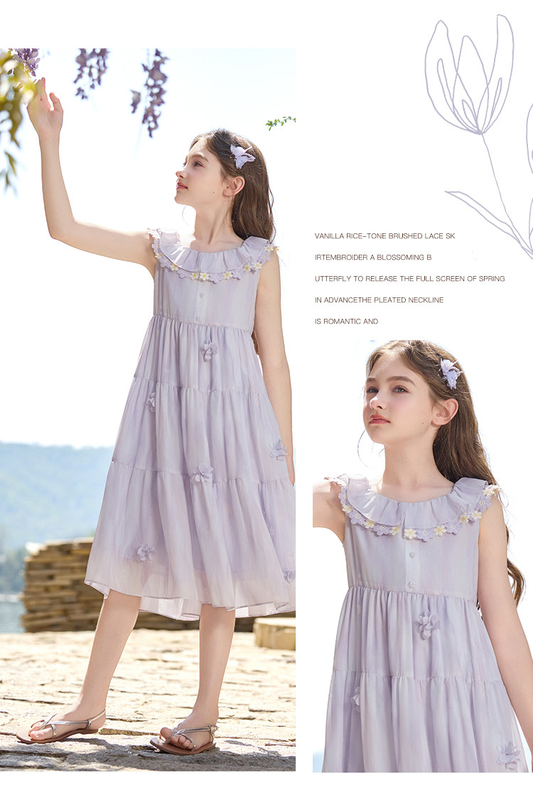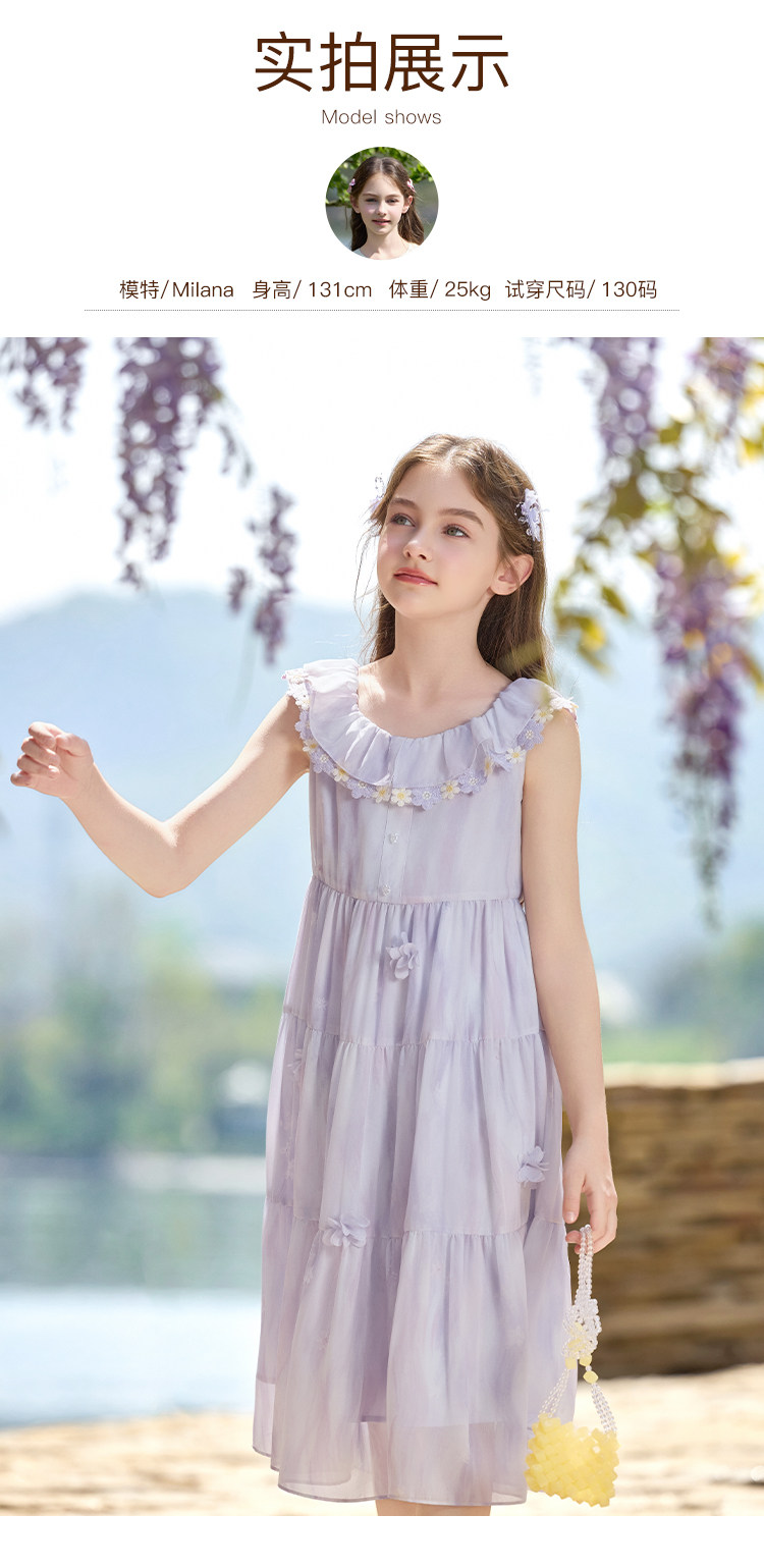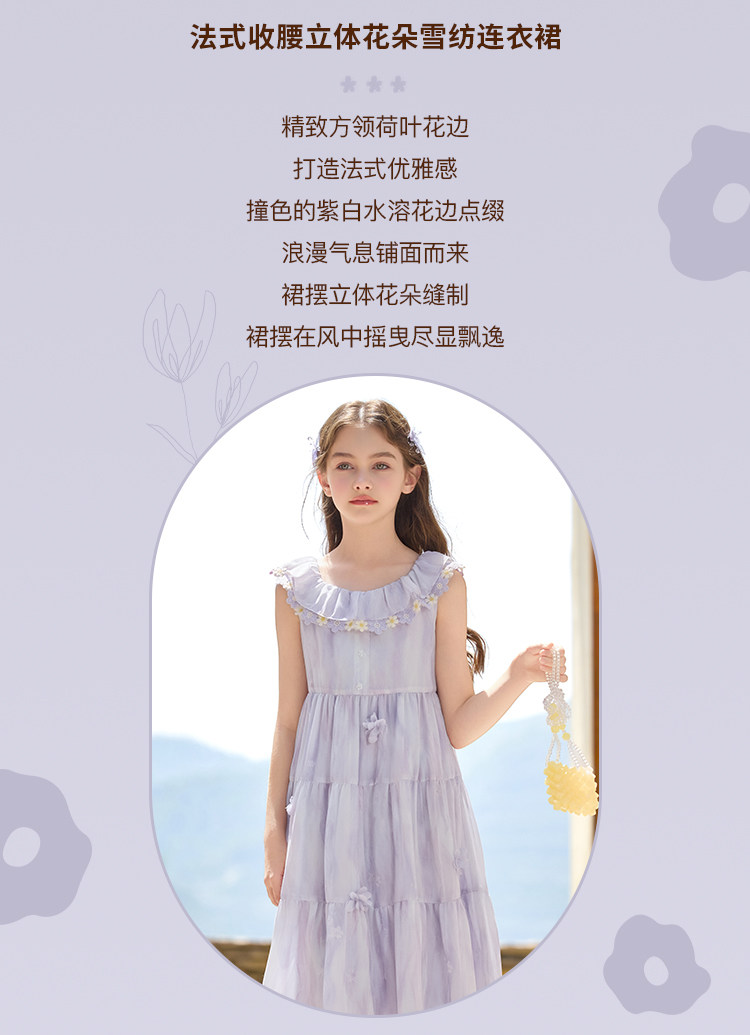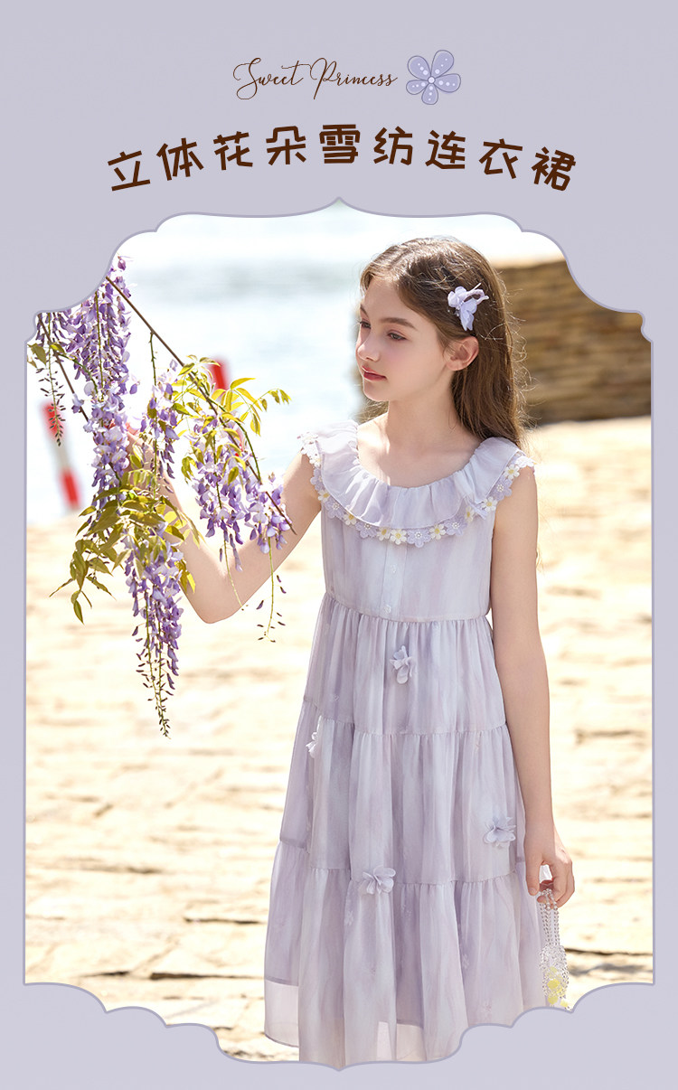 【孩提精灵】1097 紫色清新花朵童连衣裙-喜出