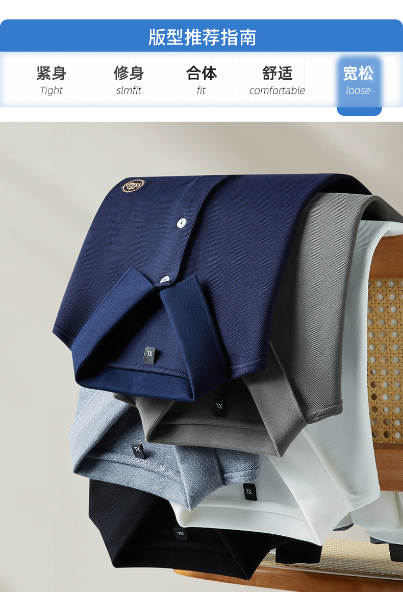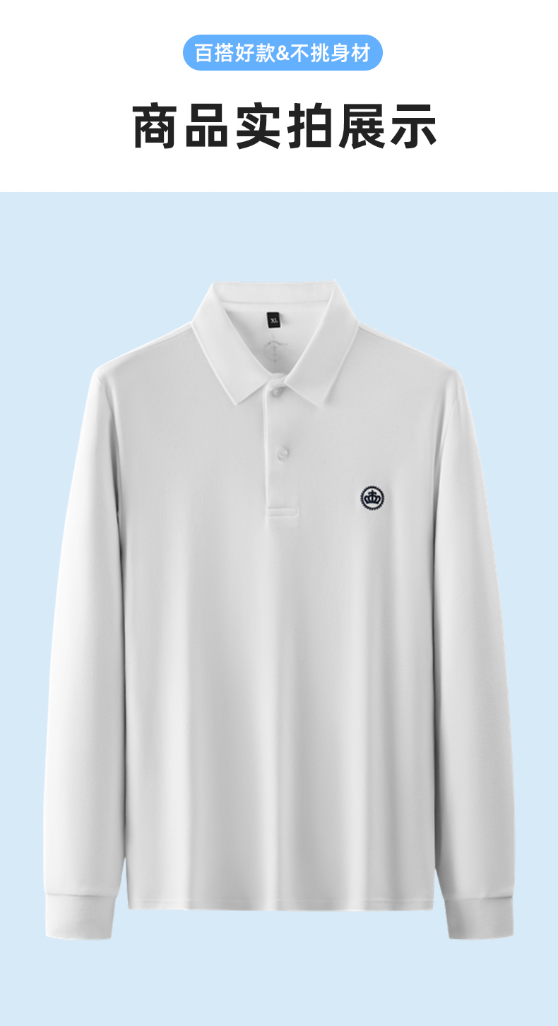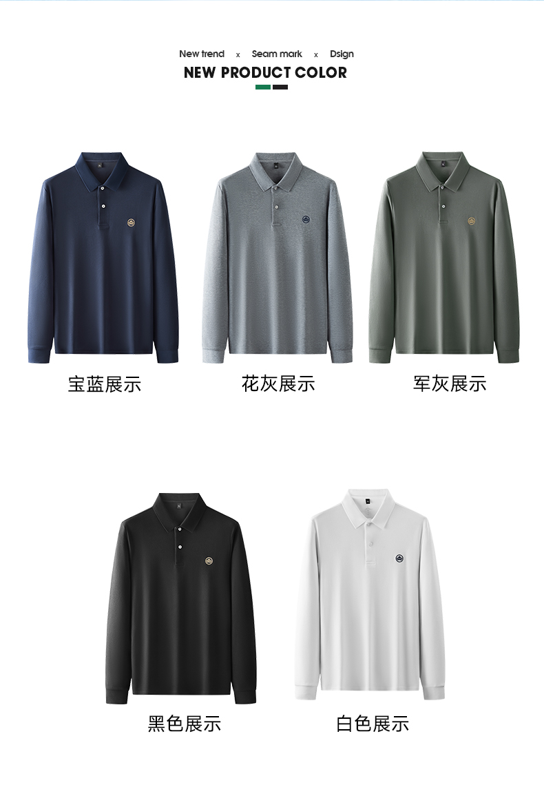 一口价【新款DK】 大依优型春秋长袖POLO衫翻领丝光棉免烫大号大码上衣男士系显商务加肥加大男装