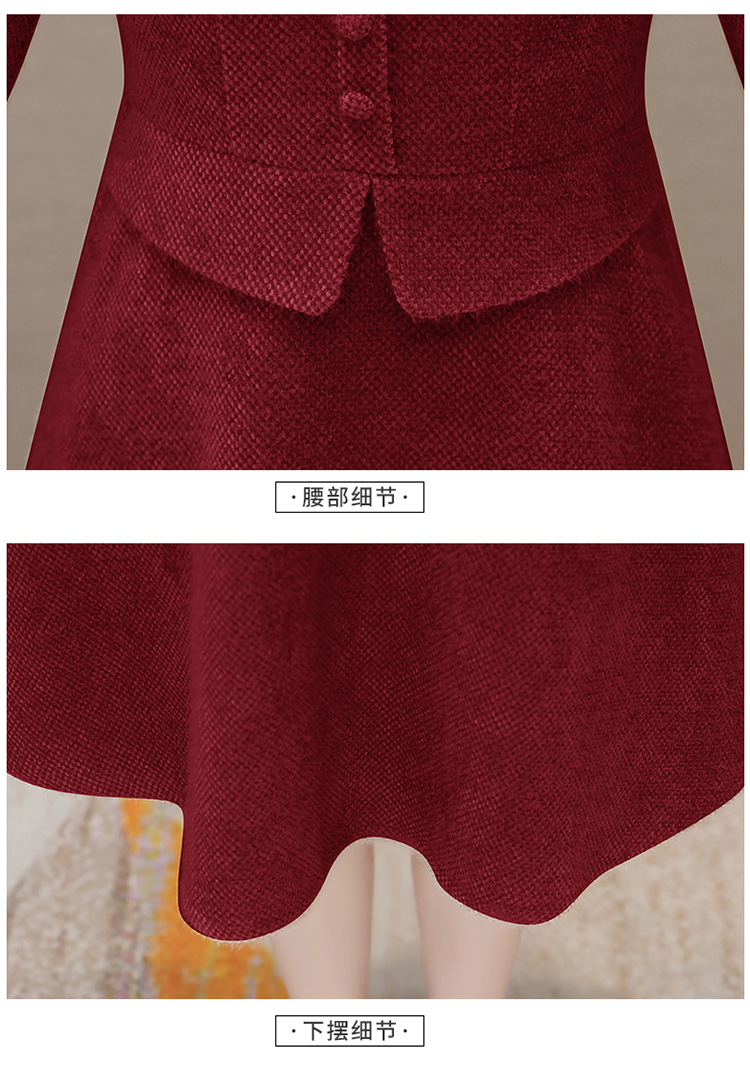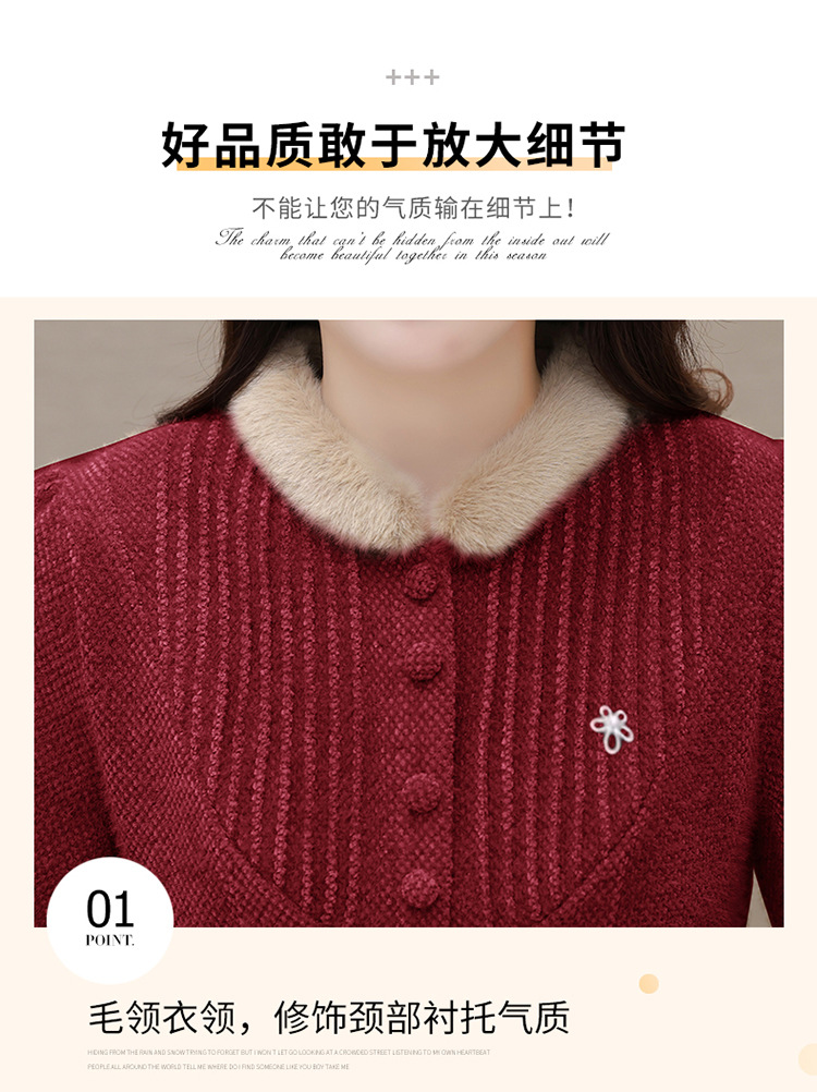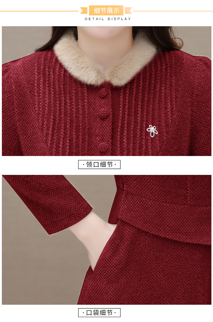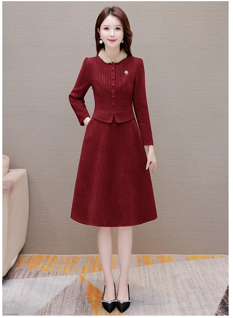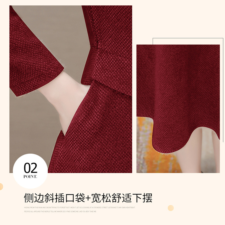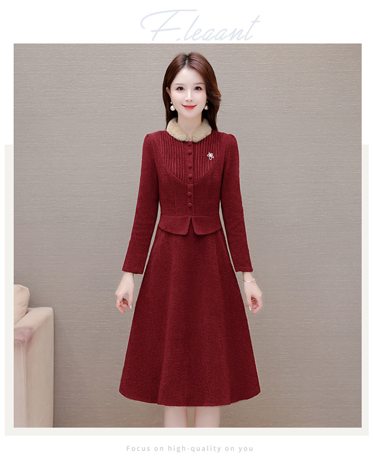 时尚气质,女装假两件连衣裙长袖中长款A字裙毛领厚款连衣裙QYM-HL-23F097-1-Y