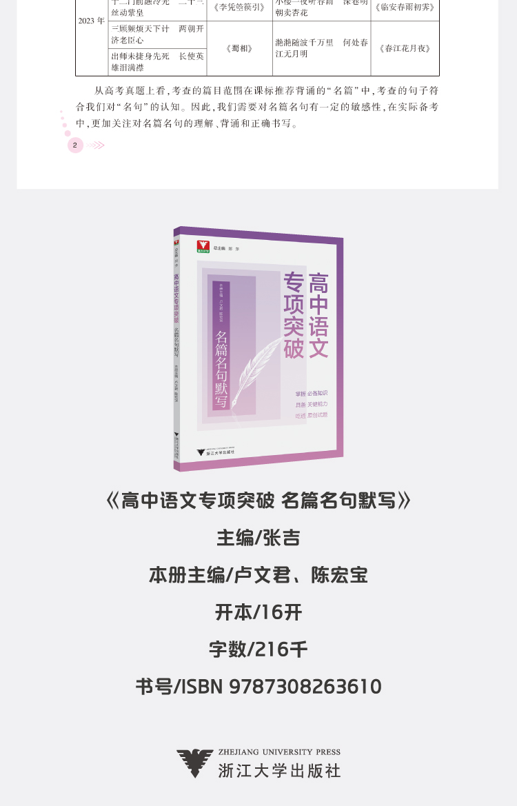 高中语文专项突破 名篇名句默写/浙大优学/立足高考语文/突破传统“双基”局限/直指语文学科核心素养/郑萍 主编/浙江大学出版社